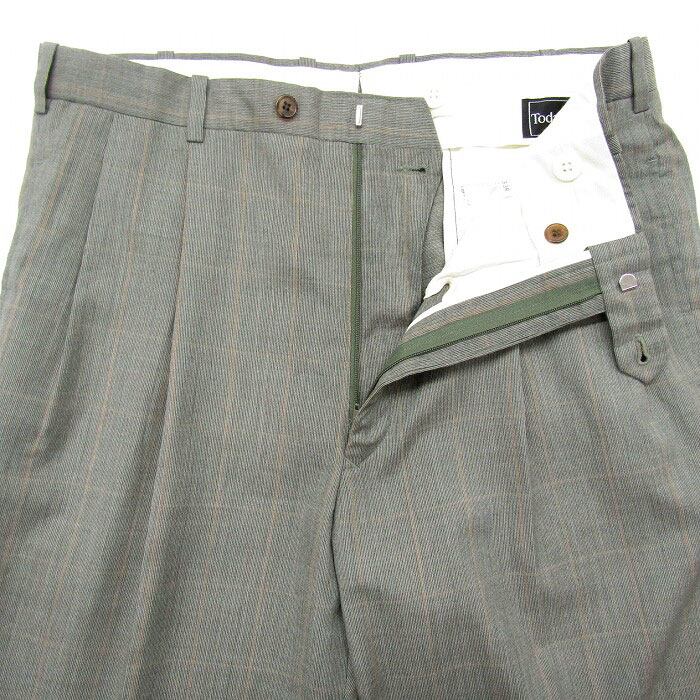 古着 スラックス パンツ ツータック チェック グリーンベース ビンテージ サイズ表記:33R gd76184
