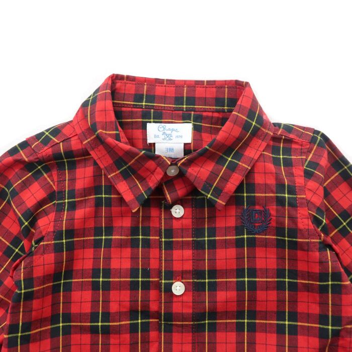 古着 キッズ チャップス CHAPS ボタンダウンシャツ チェック 長袖 レッドベース サイズ表記:3M gd82239 OK03 | 古着屋SLAT オンラインショップ 【古着通販】|東京 高円寺 レギュラー・ヴィンテージ古着