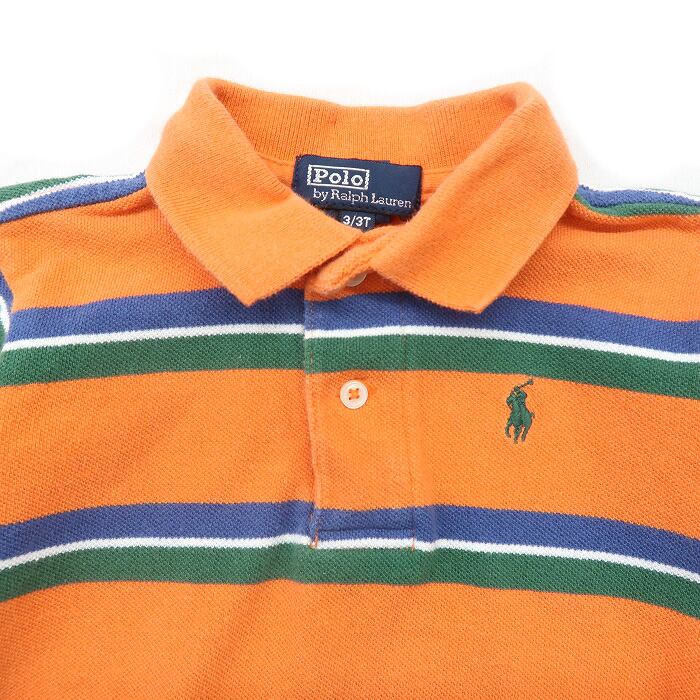 古着 キッズ ラルフローレン Polo Ralph Lauren ポロシャツ ボーダー ワンポイント オレンジベース サイズ表記:3T gd76063