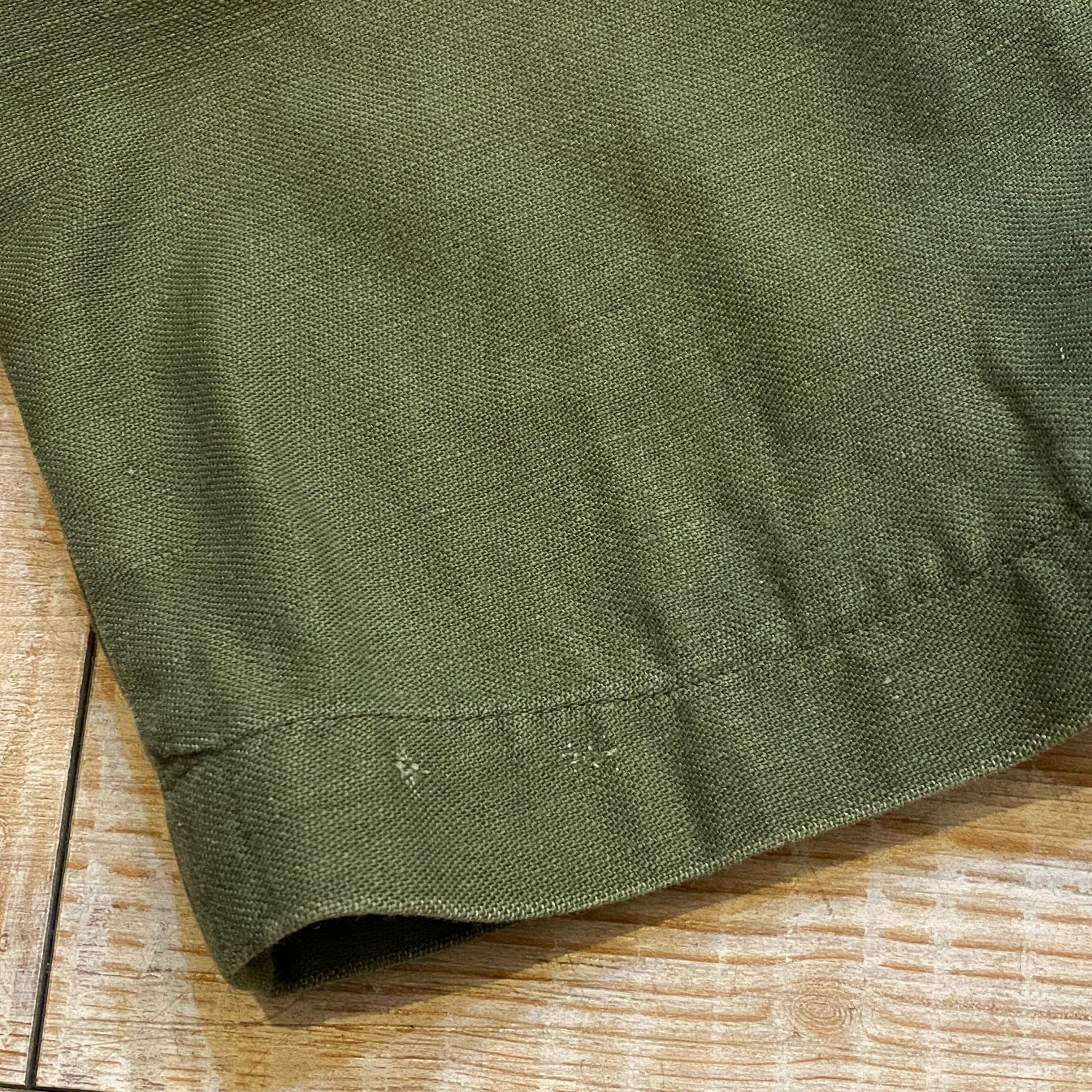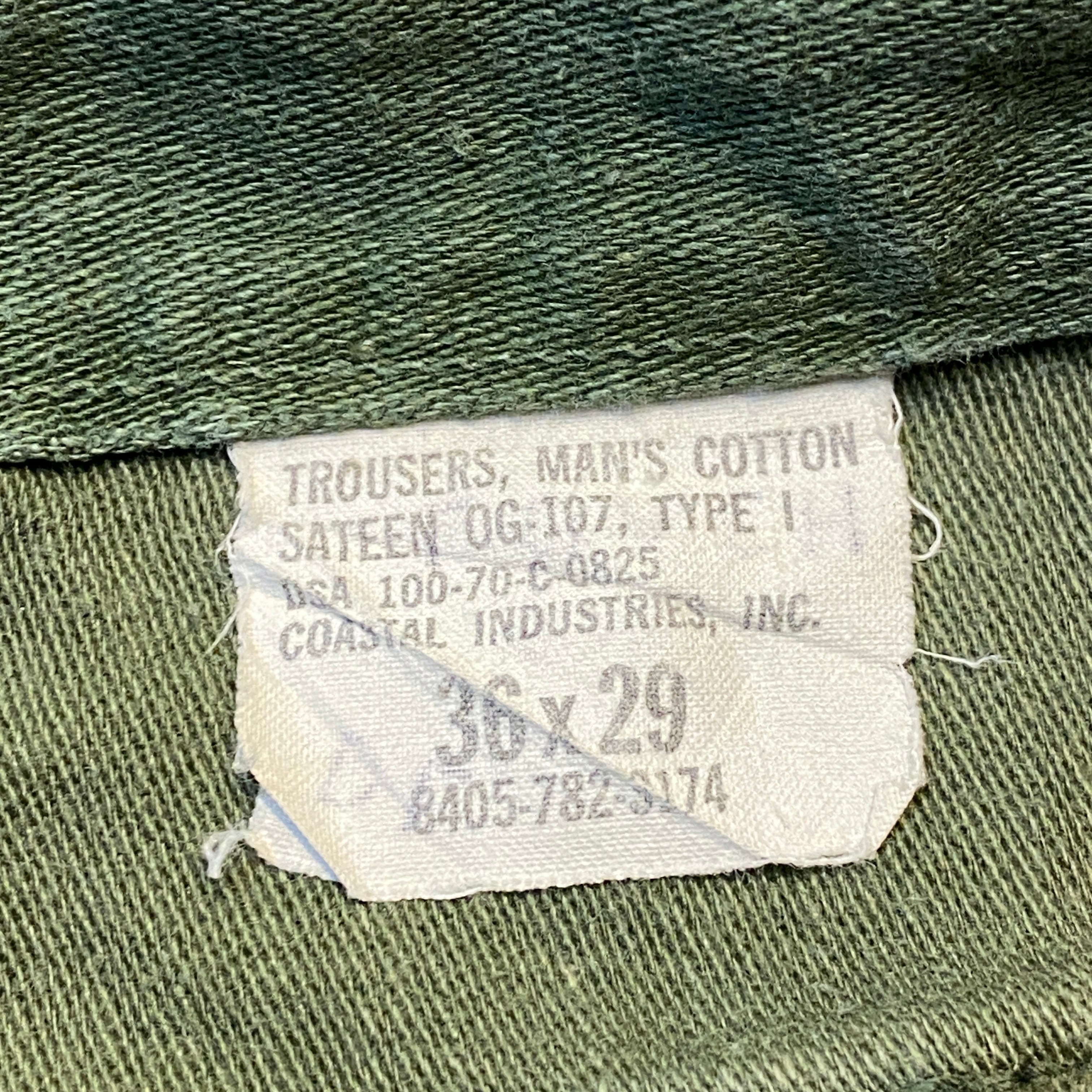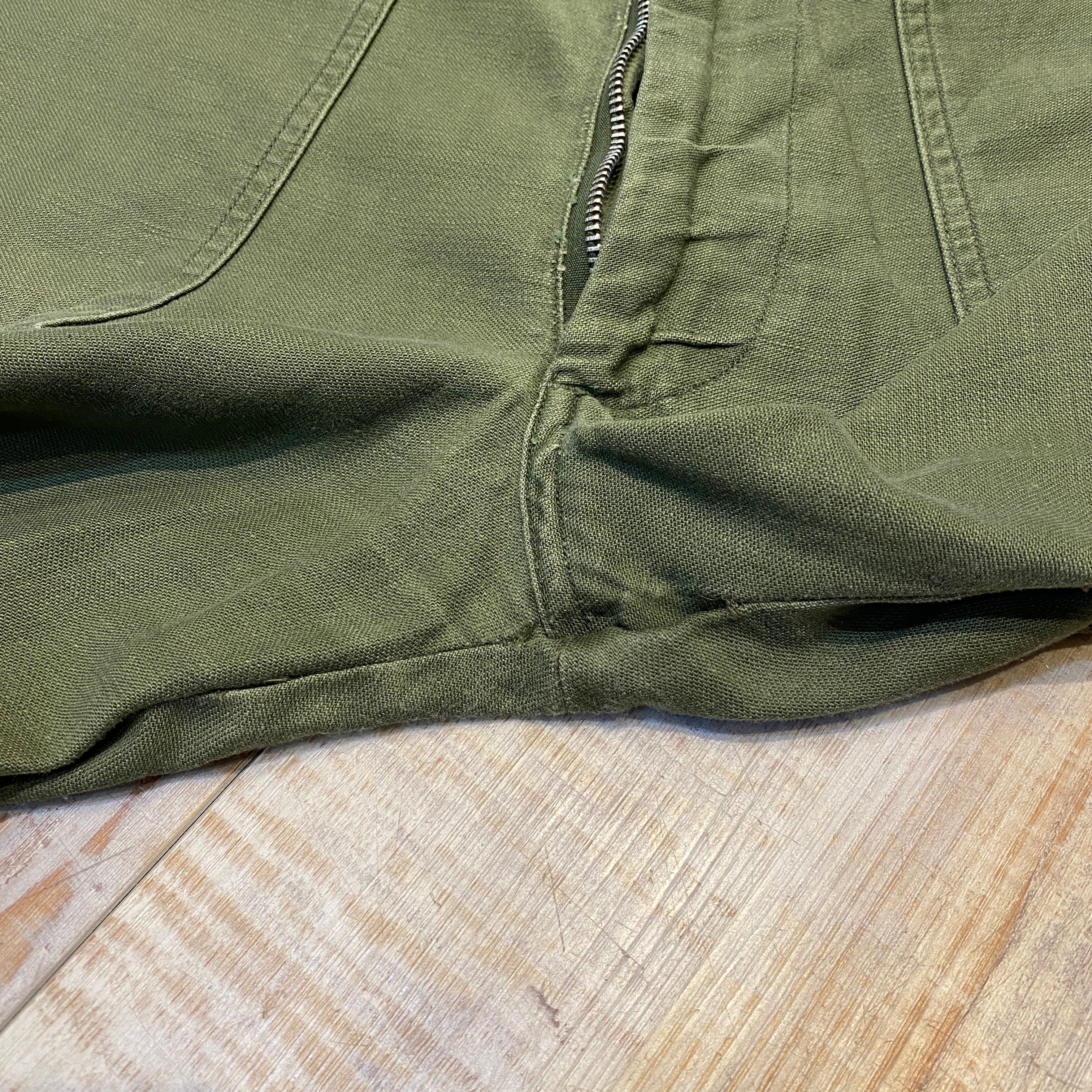 商品説明 :70年会計米軍のベイカーパンツになります。コットンサテン地にUFOボタン、ジッパーフライの個体になります。表記36×29、実寸34×27になります。