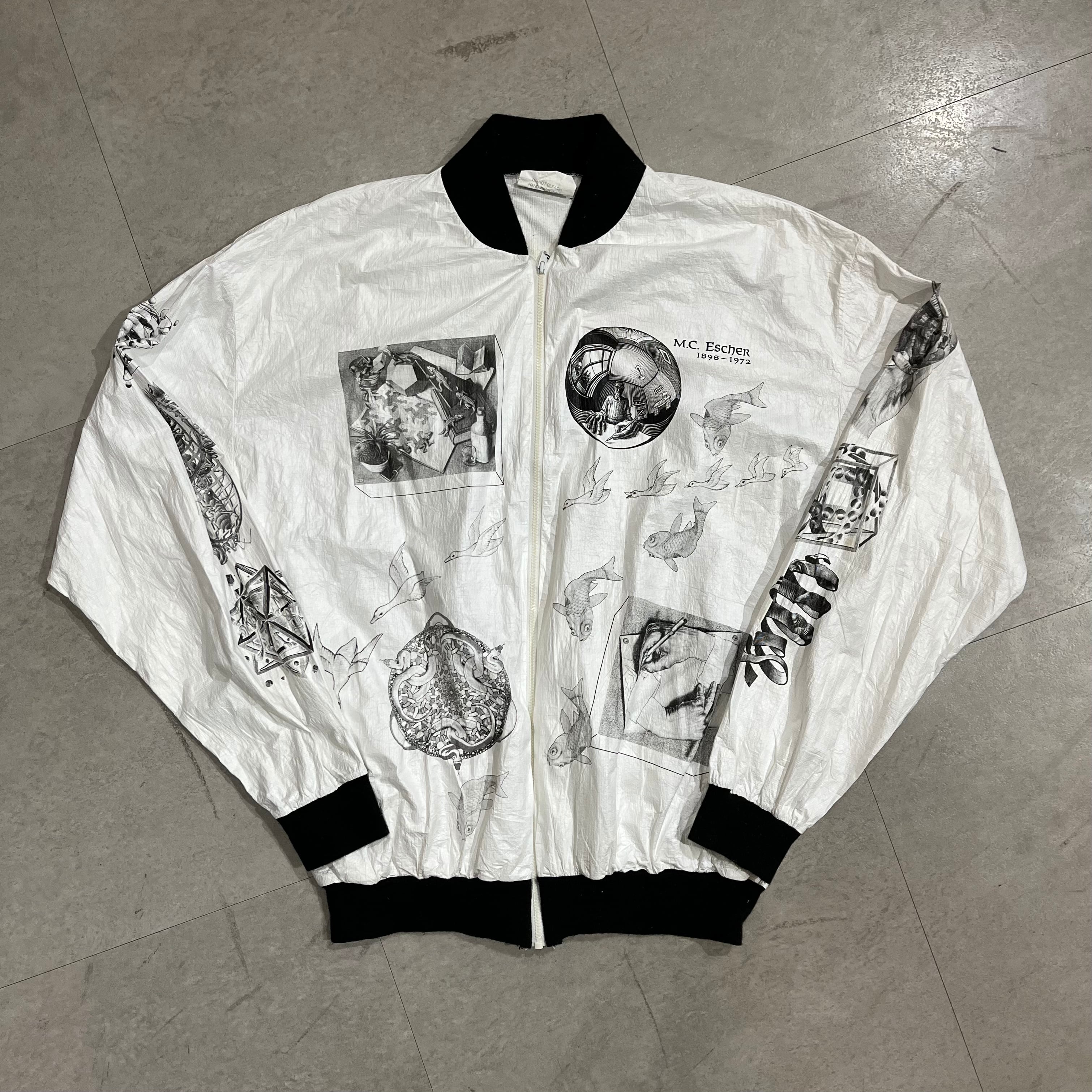 90年代〜 size : L【 M.C.Escher 】エッシャー マルチプリント ペーパージャケット ジャケット 白 黒 古着 古着屋 高円寺 ビンテージ