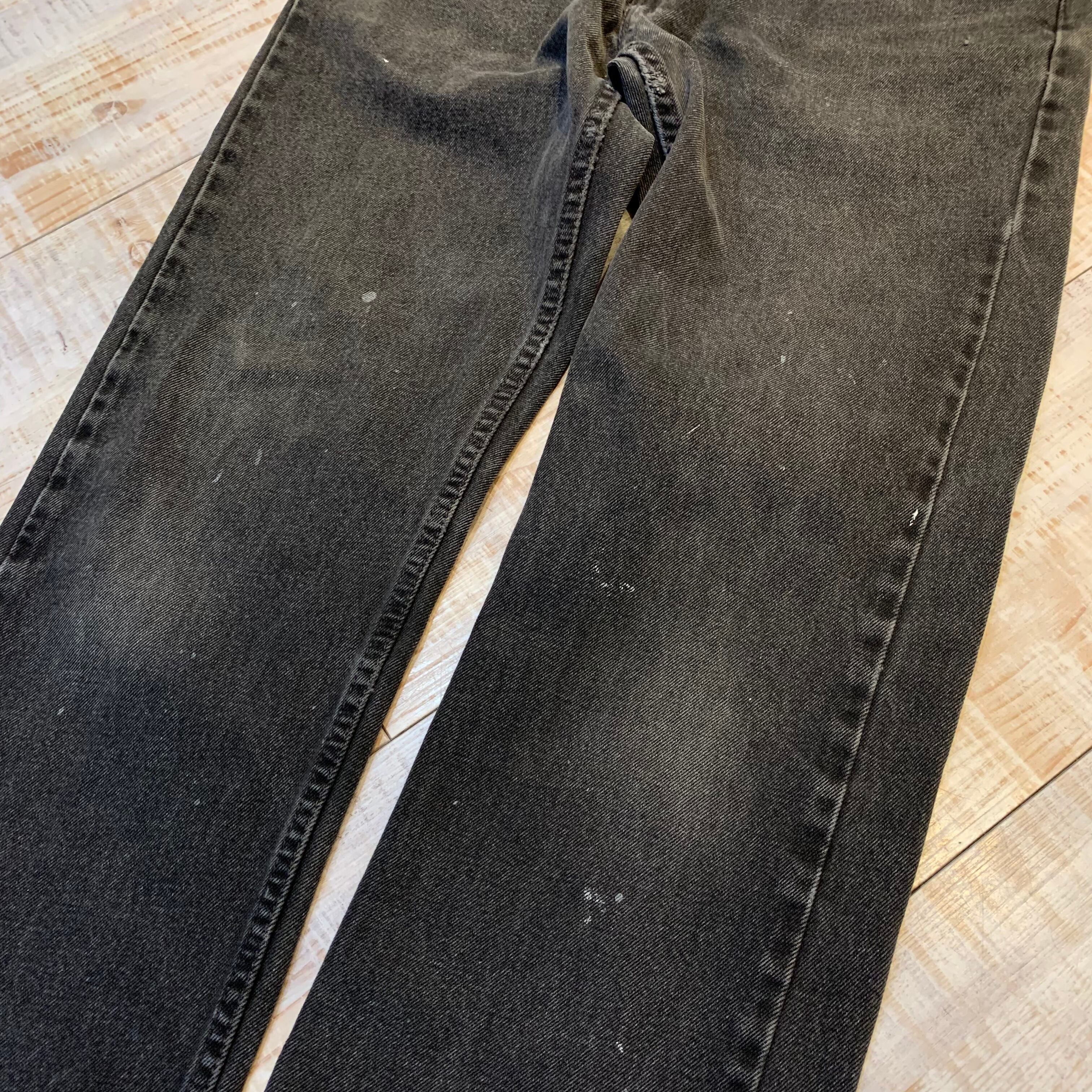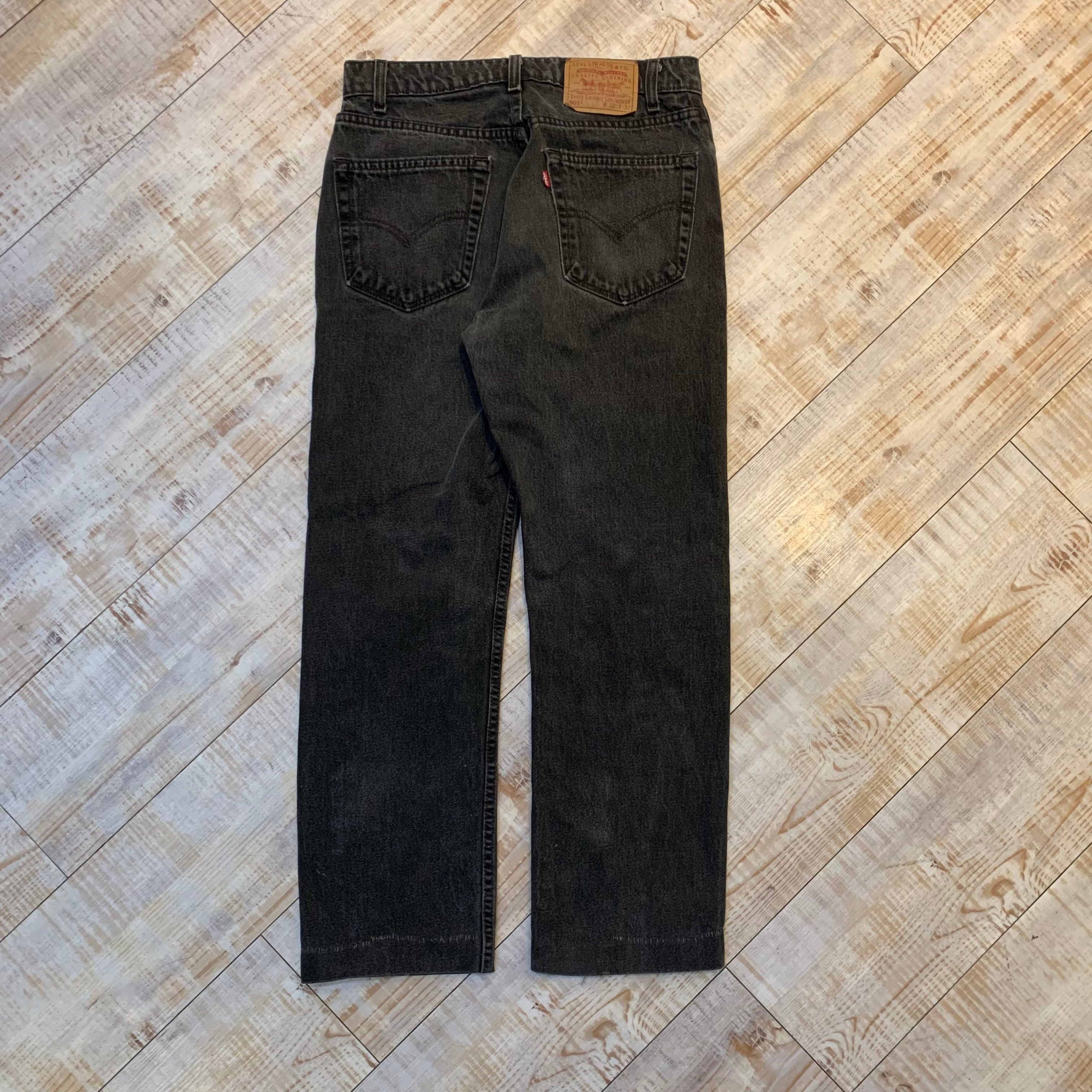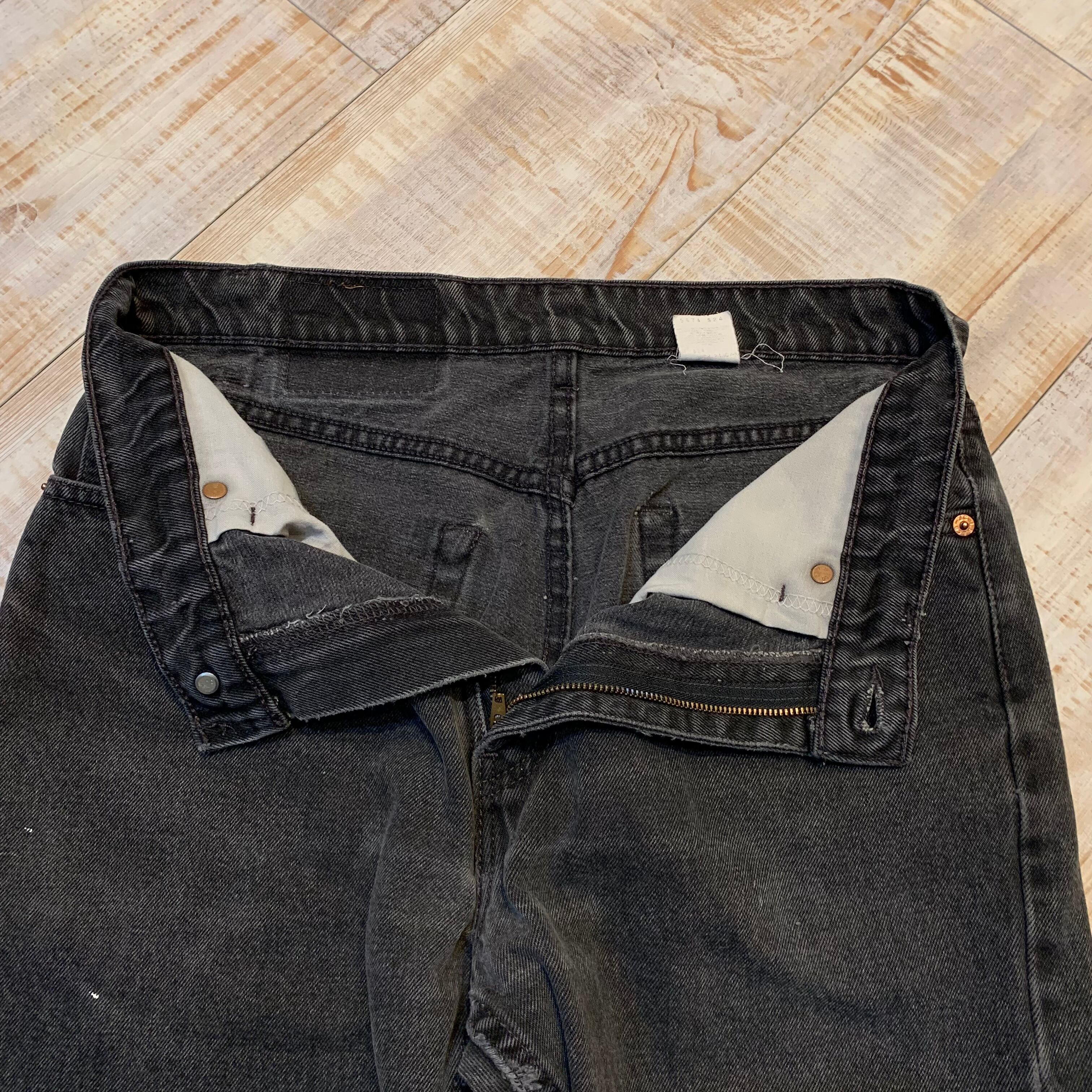 商品説明 :米国製90年代Levi's 505の後染めブラックデニムパンツになります。程良く色落ちし、グレーの綺麗な一本に仕上がっております。表記はW32 L32ですが、実寸は縮みや裾上げによりW31 L28、レングスの着用感はL29程度になります。