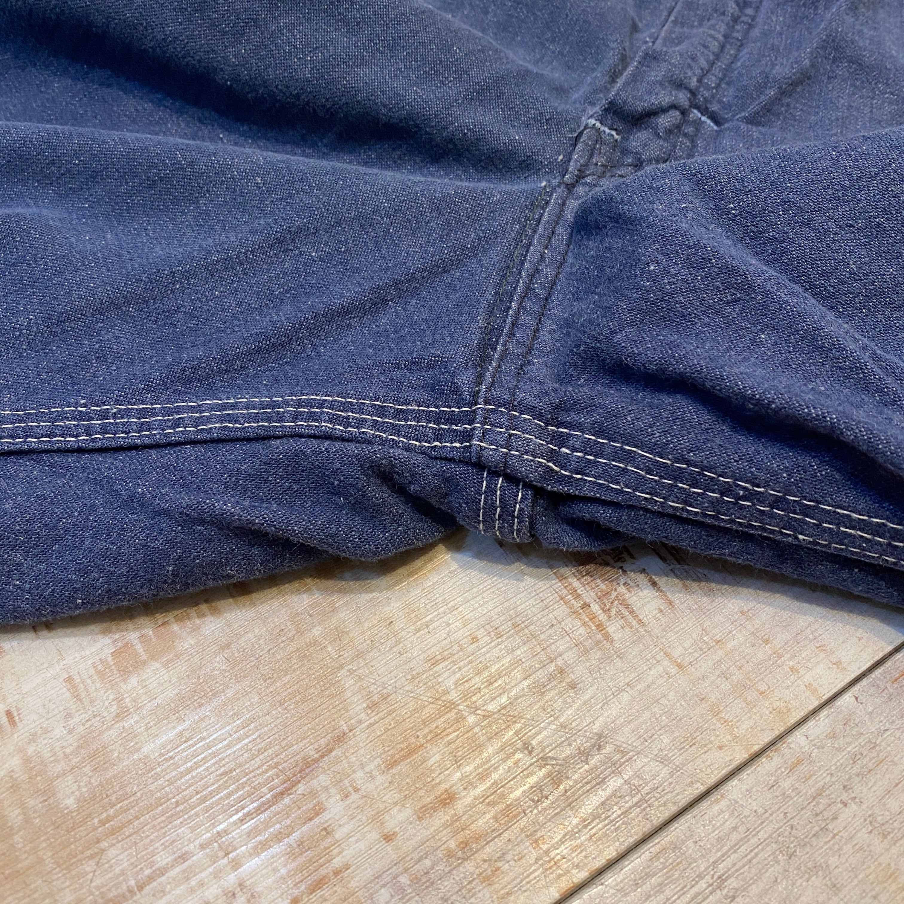 商品説明 :70年代Searsのデニムペインターパンツになります。ジッパーはSCOVILLを使用しております。ブルー味の強いインディゴデニムで、まだまだ色濃く残り使用感の見受けられない逸品です。