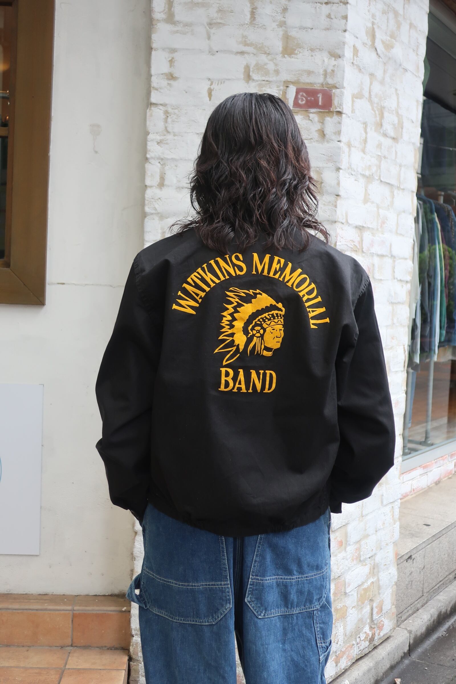 50~60年代頃のハリントンジャケット。形はドラズラーです。古着好きには堪らない老舗ファブリックメーカーの”DAN RIVER”が生地から自社で製作している1枚です。更にブラックボディで胸にはインディアンヘッドのフロッキープリント、バックにも大きく三段でフロッキープリントが入り、言う事無しです。サイズの合う方は是非お早めに。