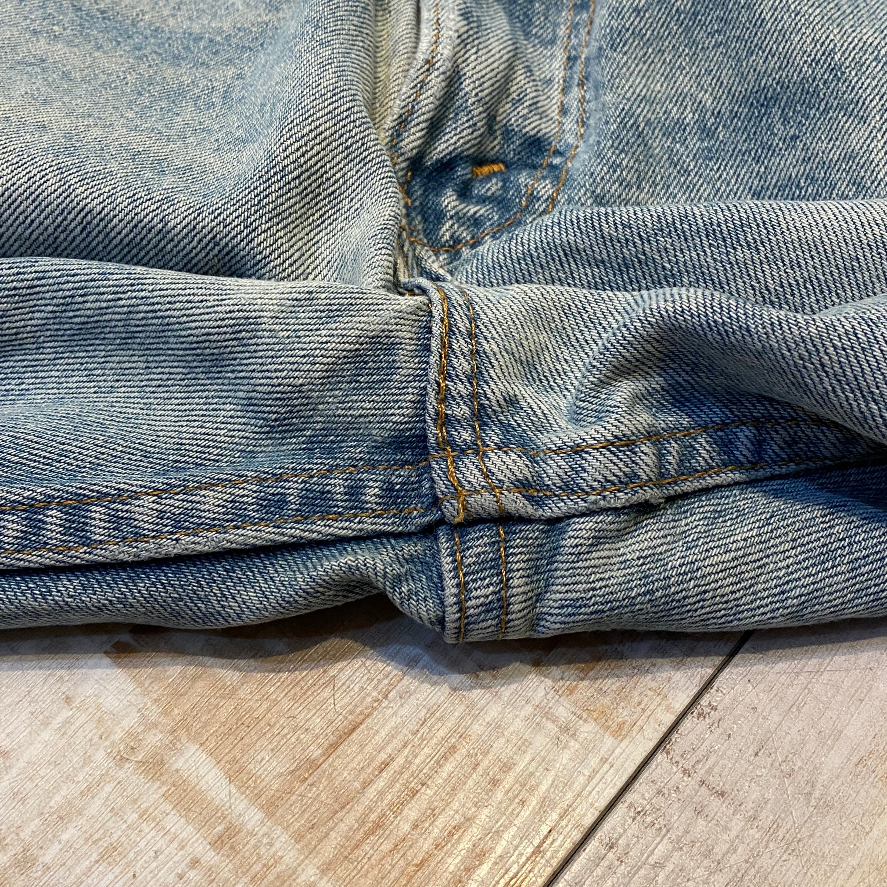 商品説明 :97年製Levi's517 オレンジタブのつくブーツカットデニムパンツになります。表記33×30のグッドサイズ。リペアは御座いますがその他ダメージや汚れは少なく、春夏にぴったりの一本です。