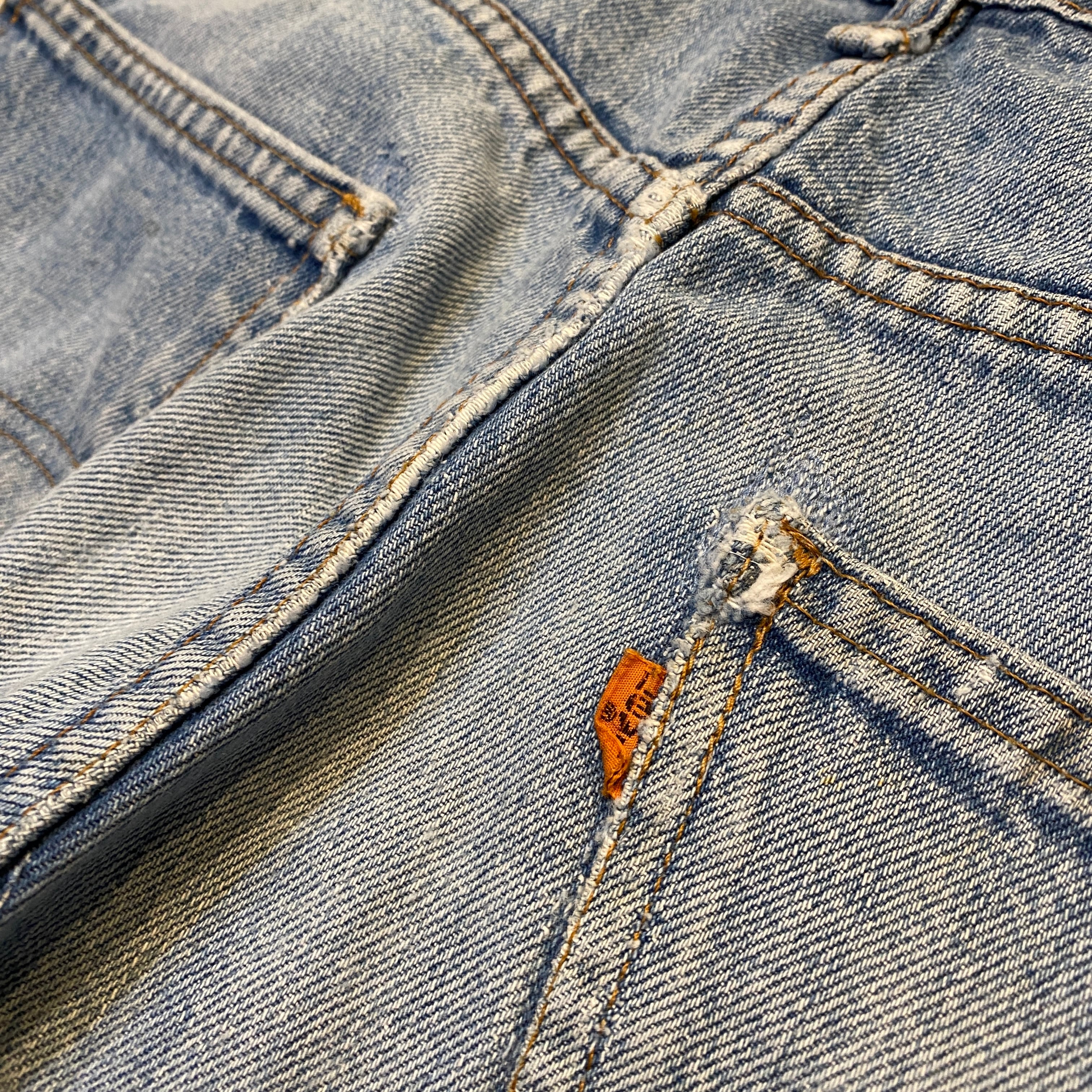 商品説明 :80年代Levi's517オレンジタブのつくブーツカットデニムパンツになります。実寸で30×31程度のグッドサイズにダメージの入る雰囲気系の一本になります。
