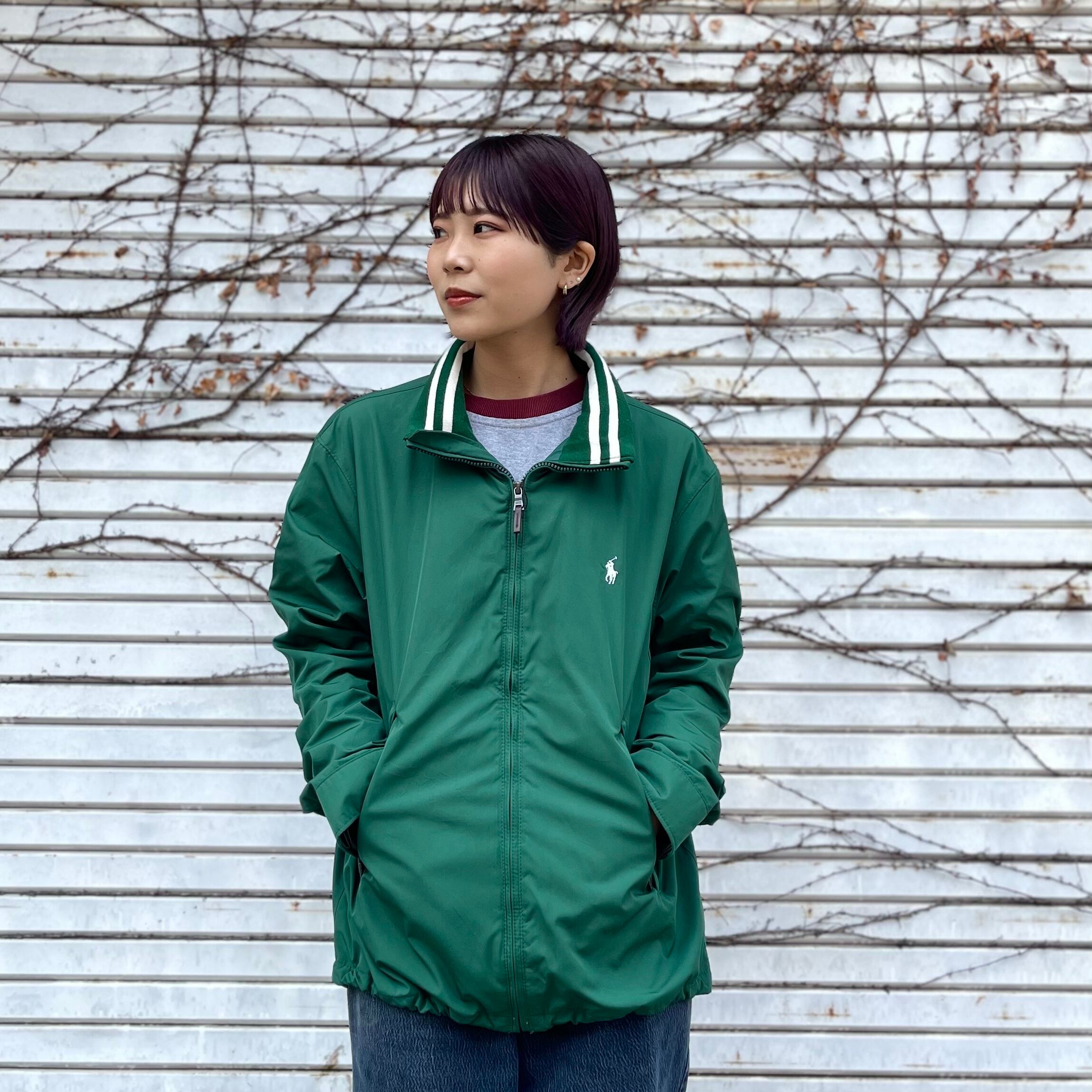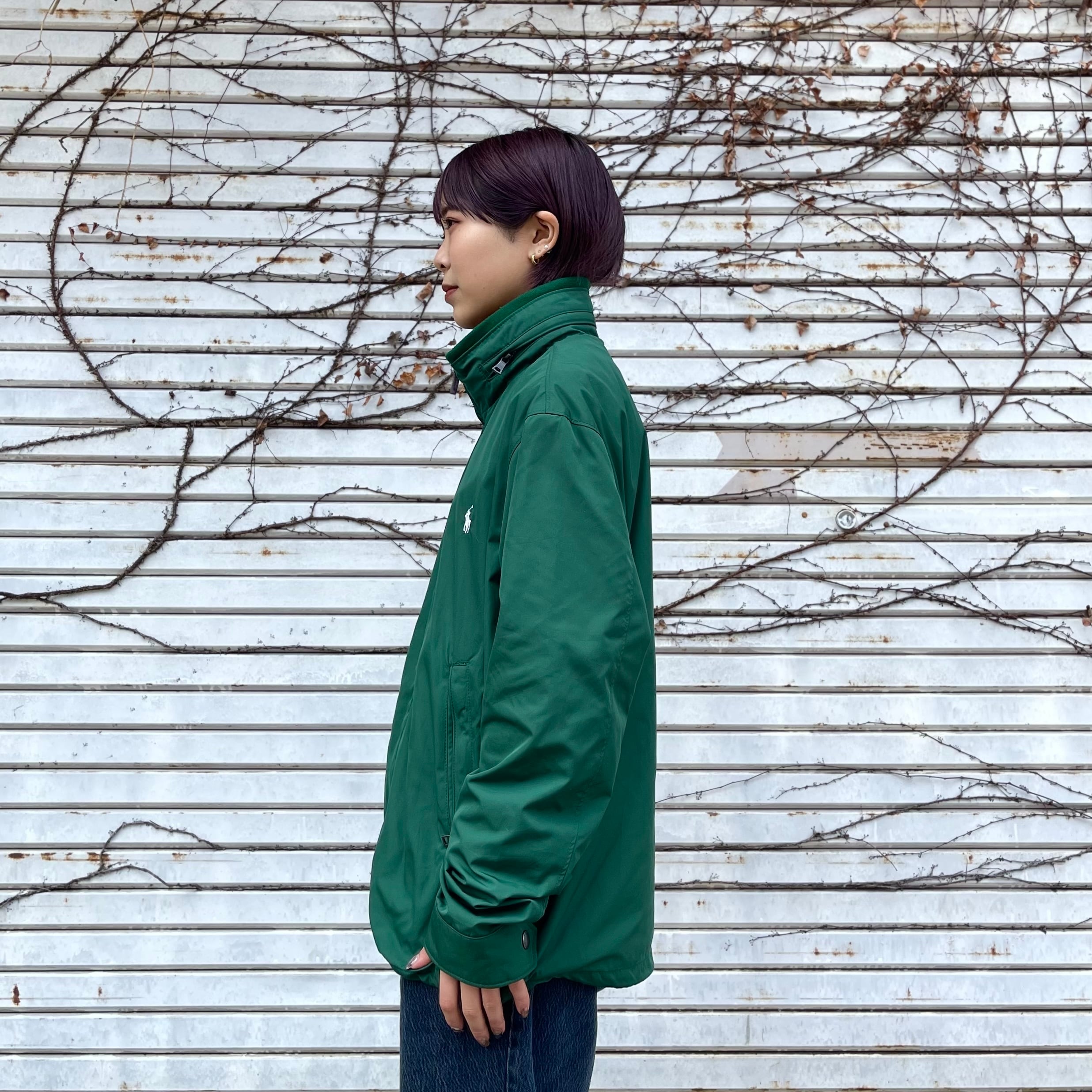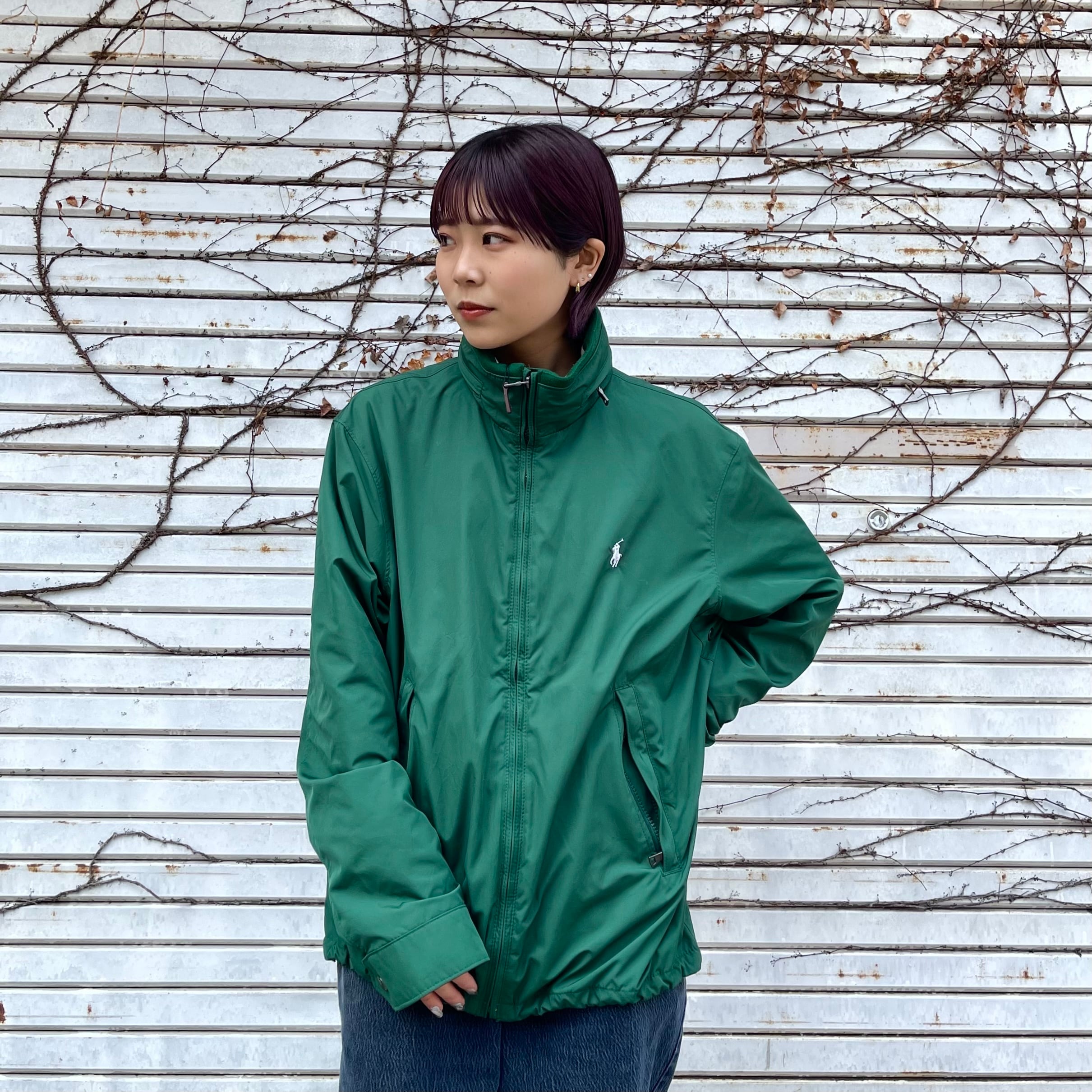 size:M【 Polo by Ralph Lauren 】ポロバイラルフローレン ラルフローレン スウィングトップ スイングトップ ドローコード フルジップ 立ち襟 ハイネック グリーン 緑 古着 古着屋 高円寺 ビンテージ