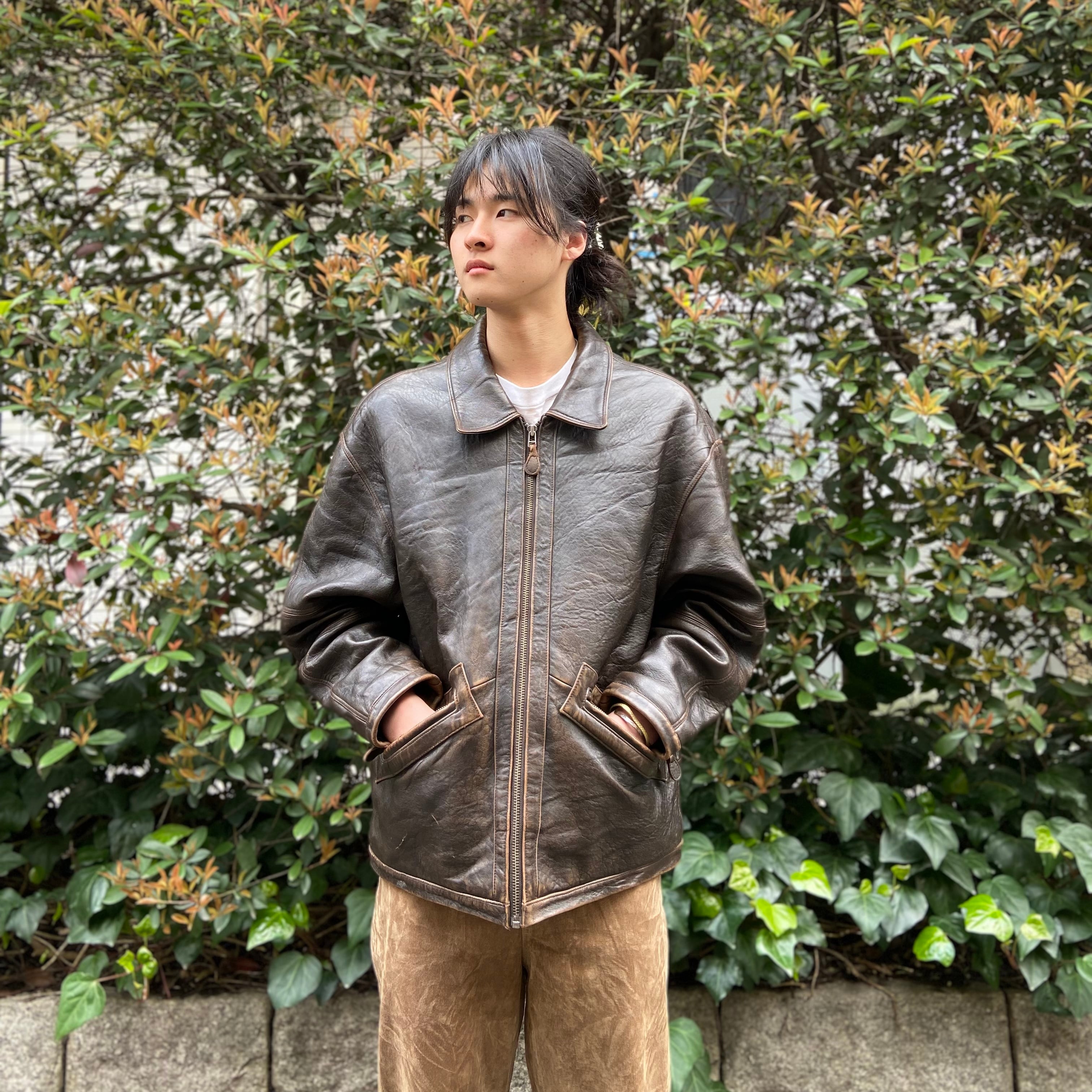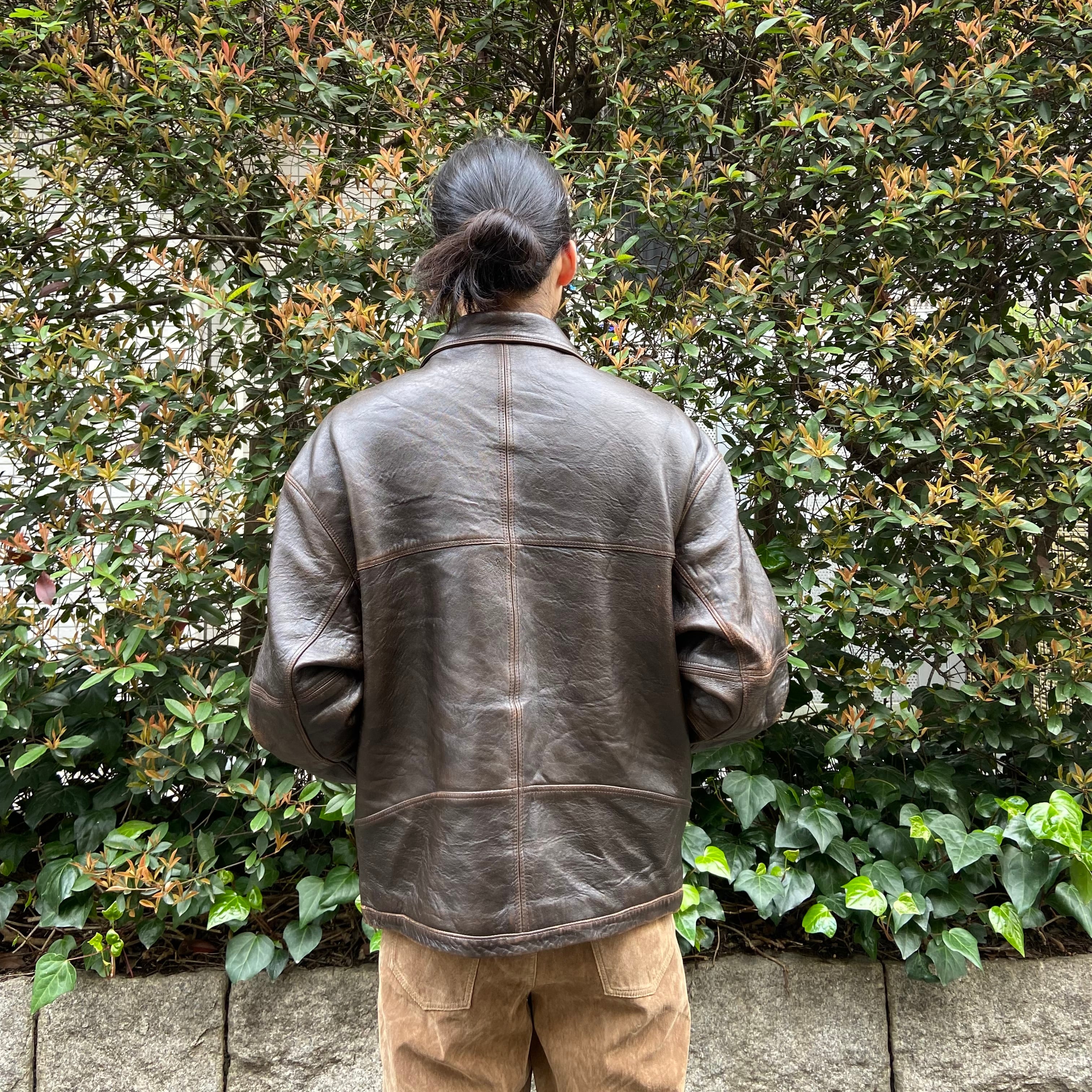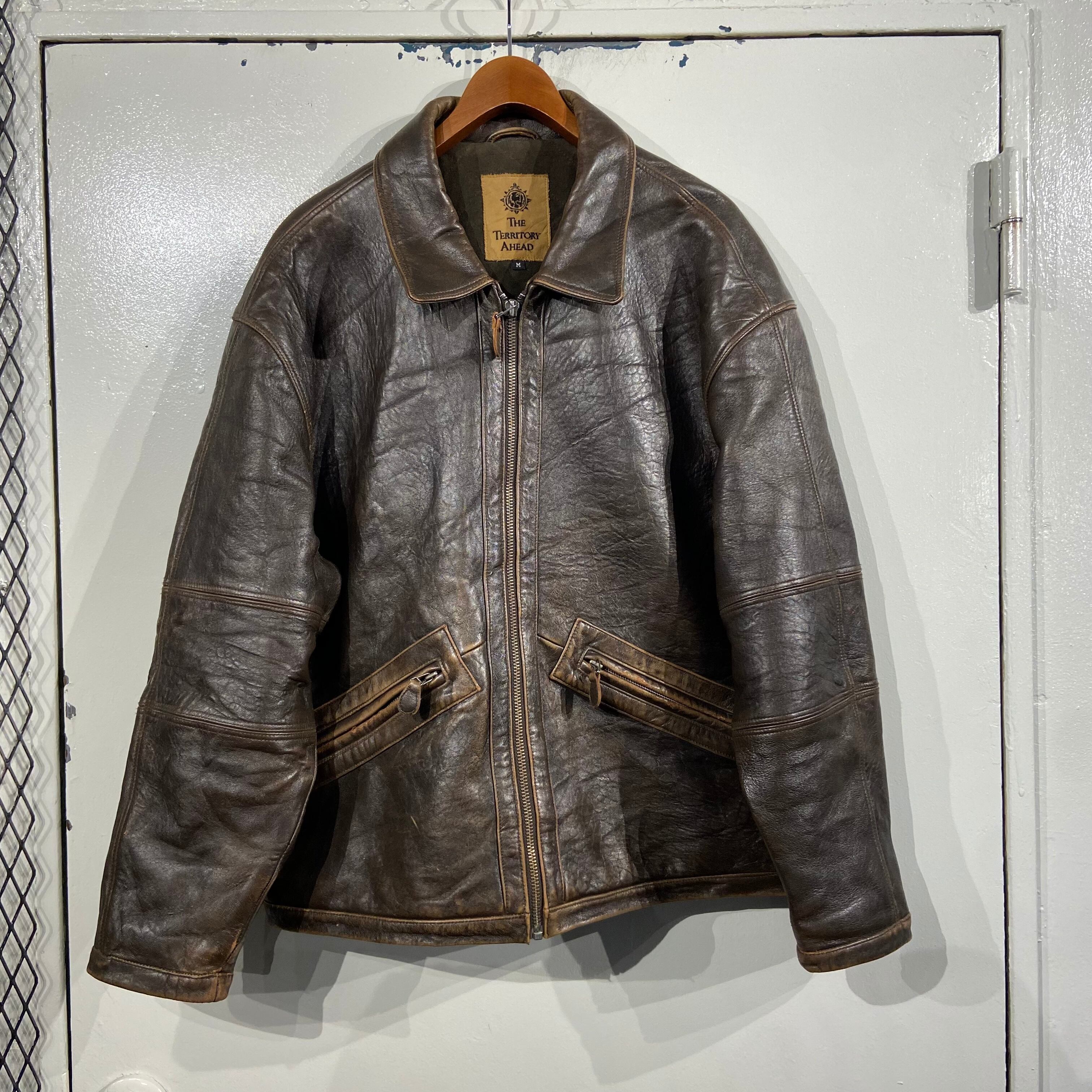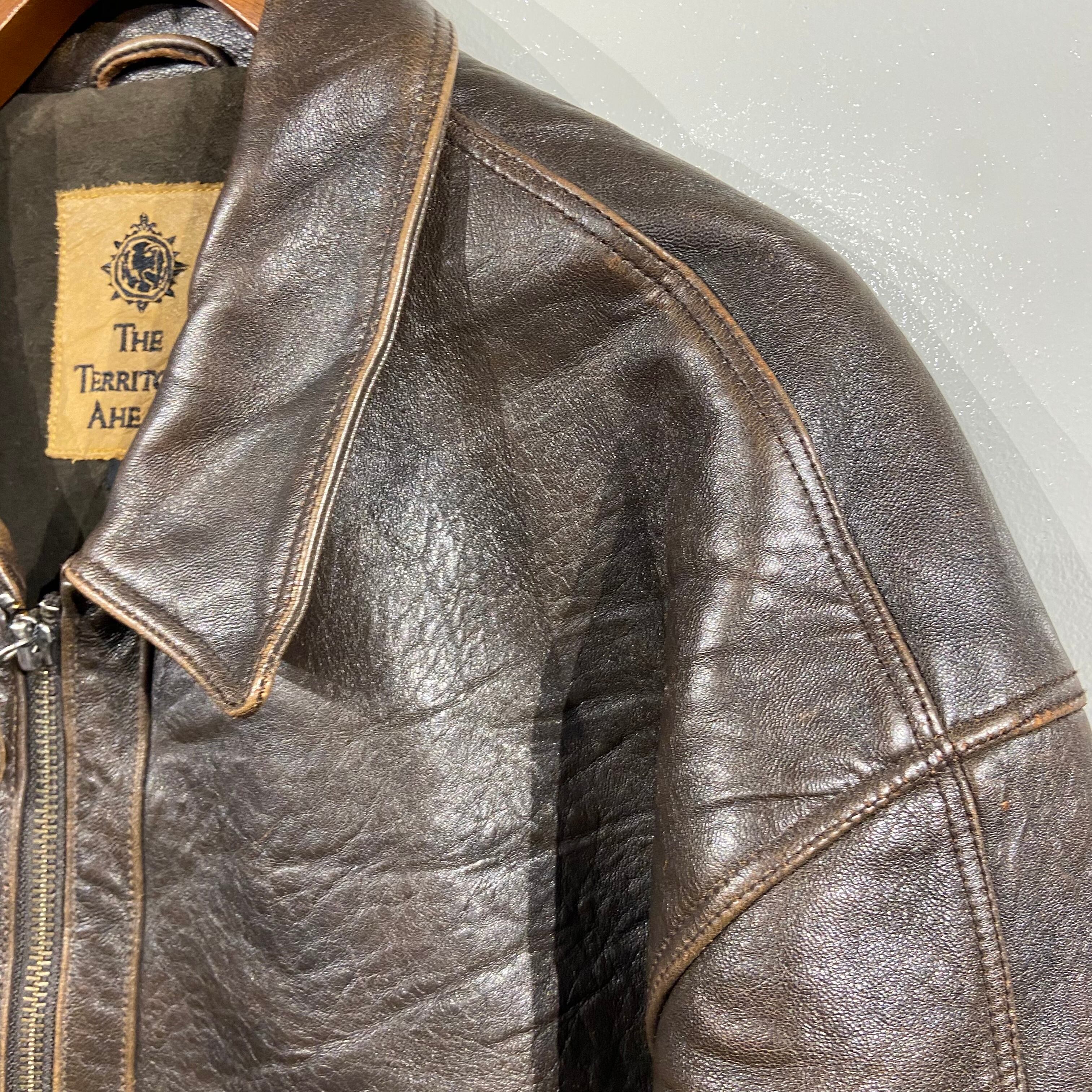 『M』 THE TERRITORY AHEAD レザー レザージャケット アウター アメカジ 茶 ブラウン 古着 古着屋 高円寺 ヴィンテージ