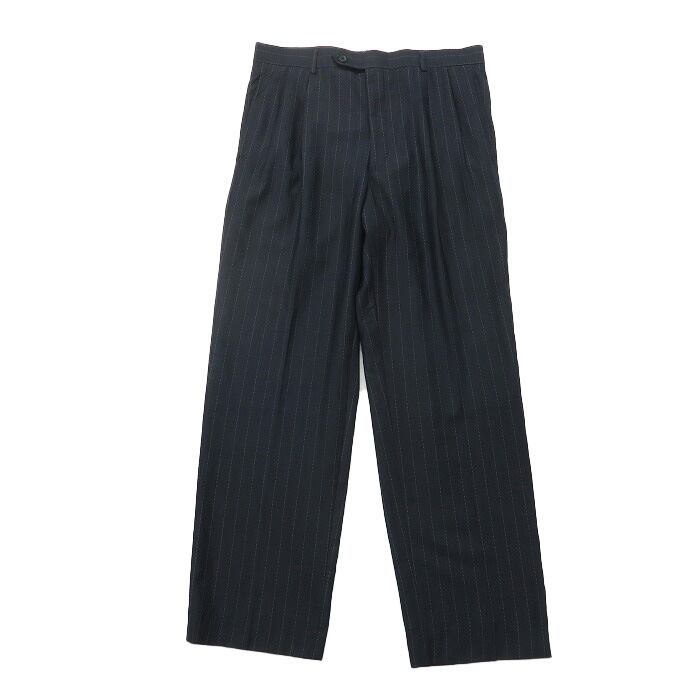 古着 スラックス パンツ ストライプツータック ブラックベース サイズ表記:34/40R gd67640