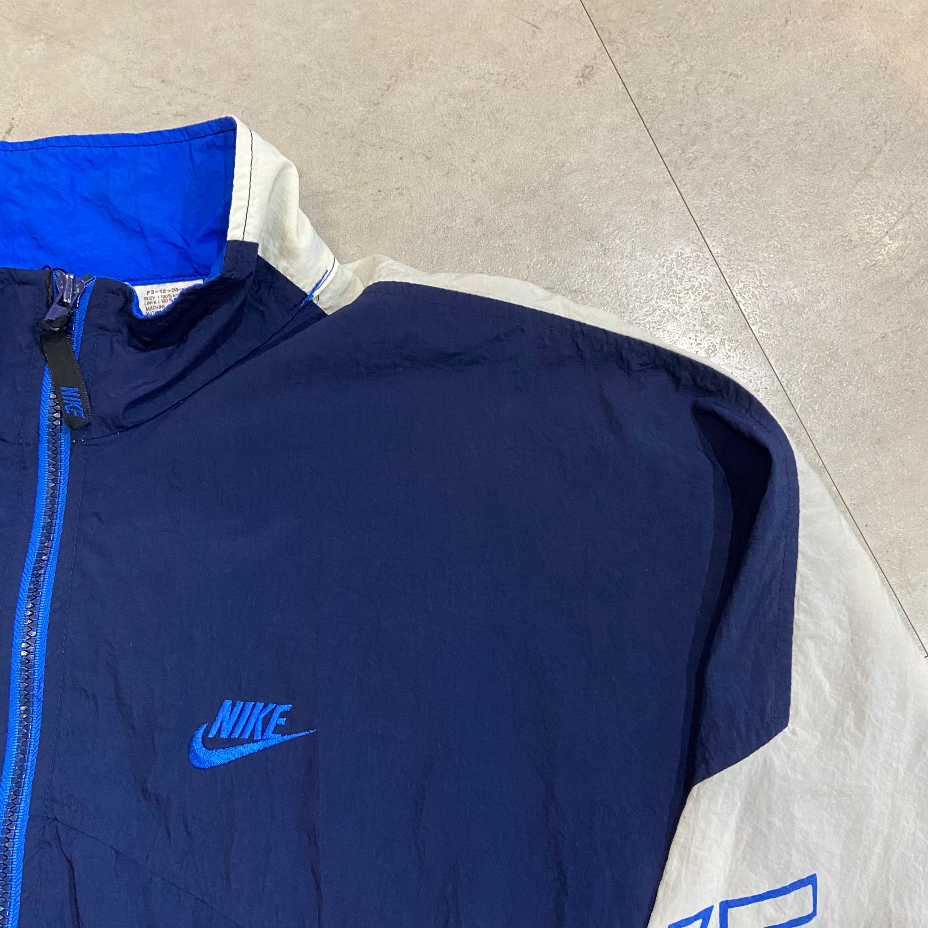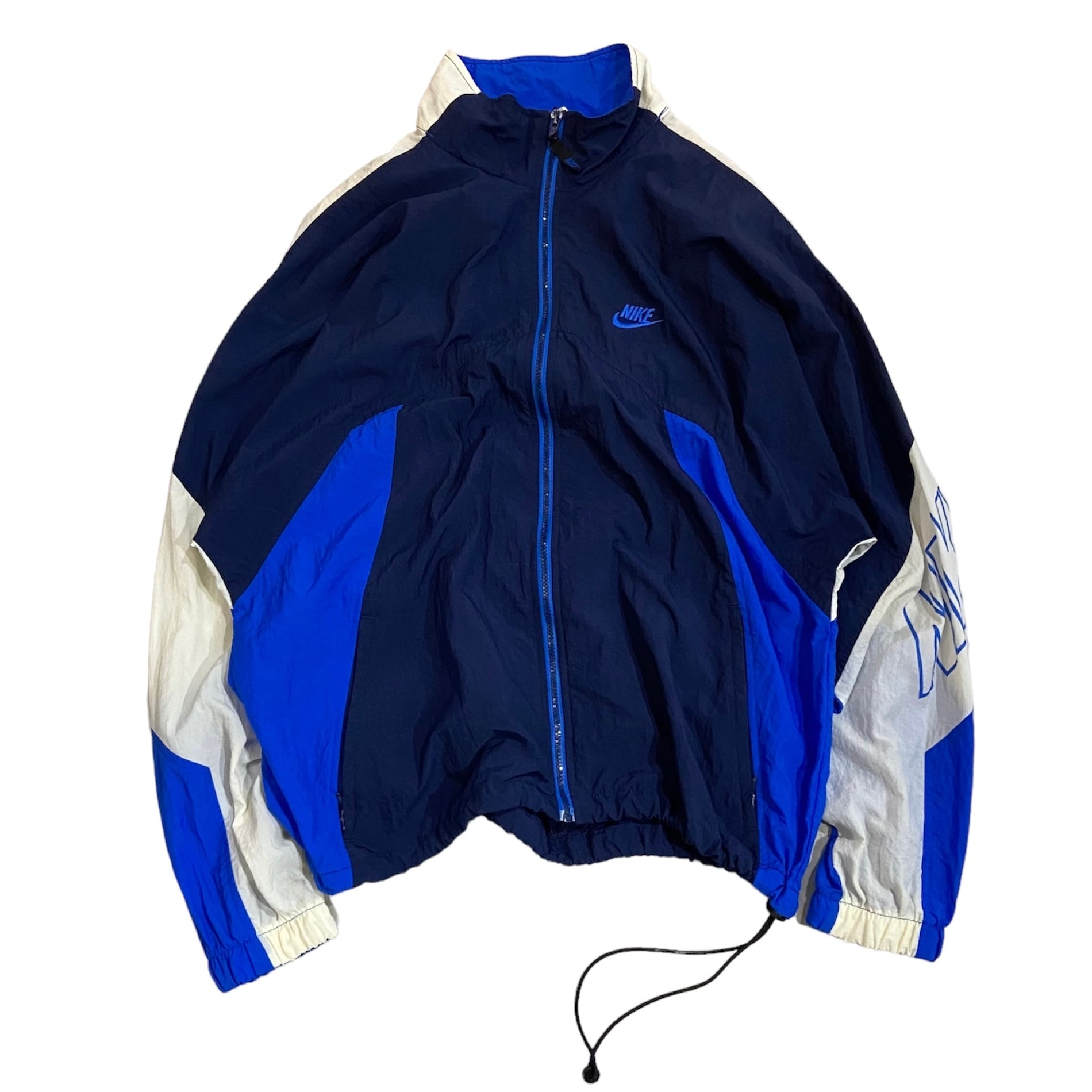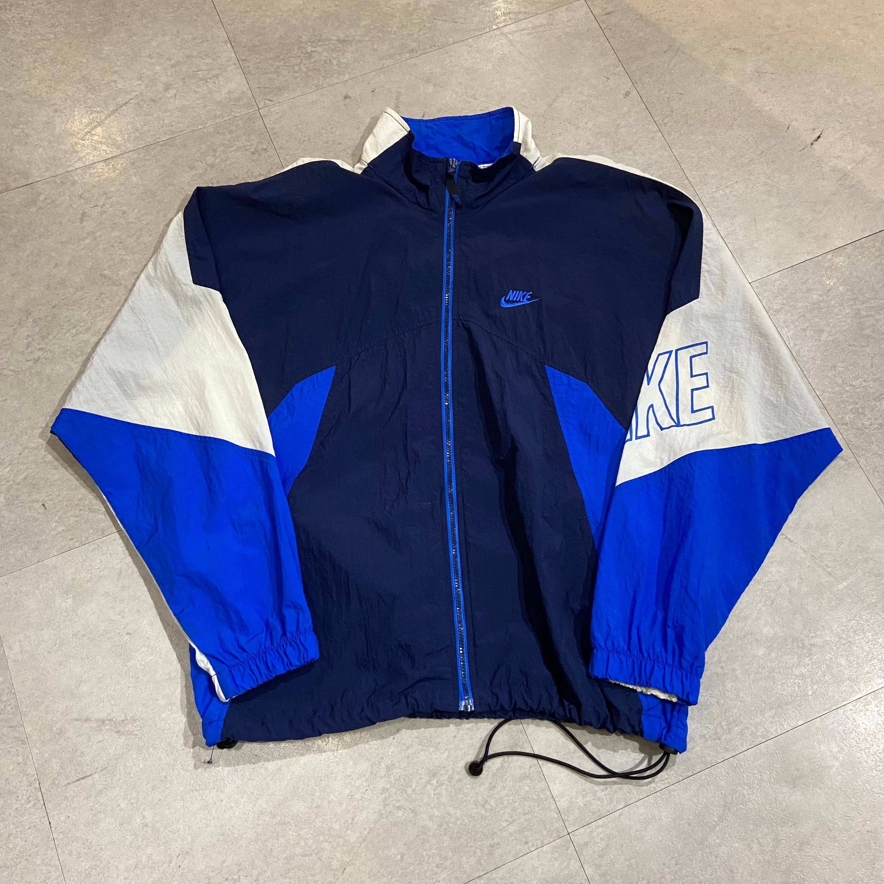 90年代 size:L【 NIKE 】ナイキ ナイロンジャケット ブルゾンタイプ フルジップ ハイネック ドローコード ネイビー ブルー 紺 青 古着 古着屋 高円寺 ビンテージ