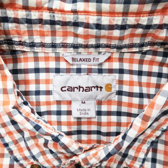 古着 カーハート ワンポイントロゴ ボタンダウン コットン 半袖 チェックシャツ サイズ表記:M gd82085