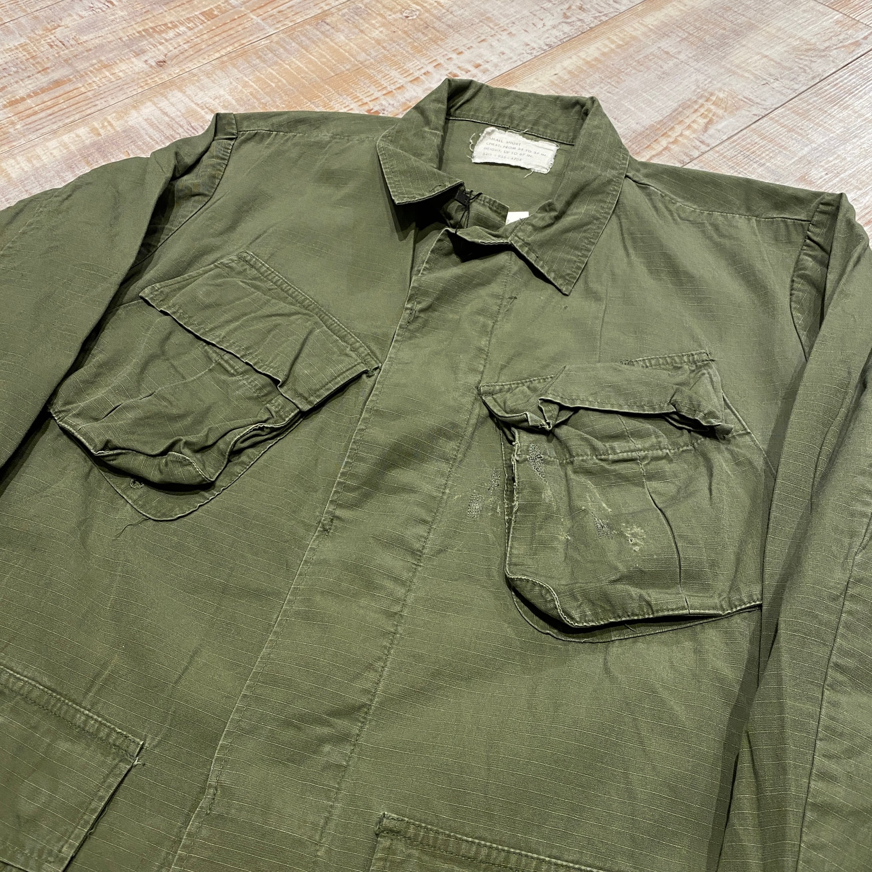 商品説明 :71年会計米軍ジャングルファティーグJKT 4thになります。サイズはS-Short。ダメージや汚れは少なく、色濃く張りのある逸品。長く重宝して頂けること間違いなしの個体です。是非。