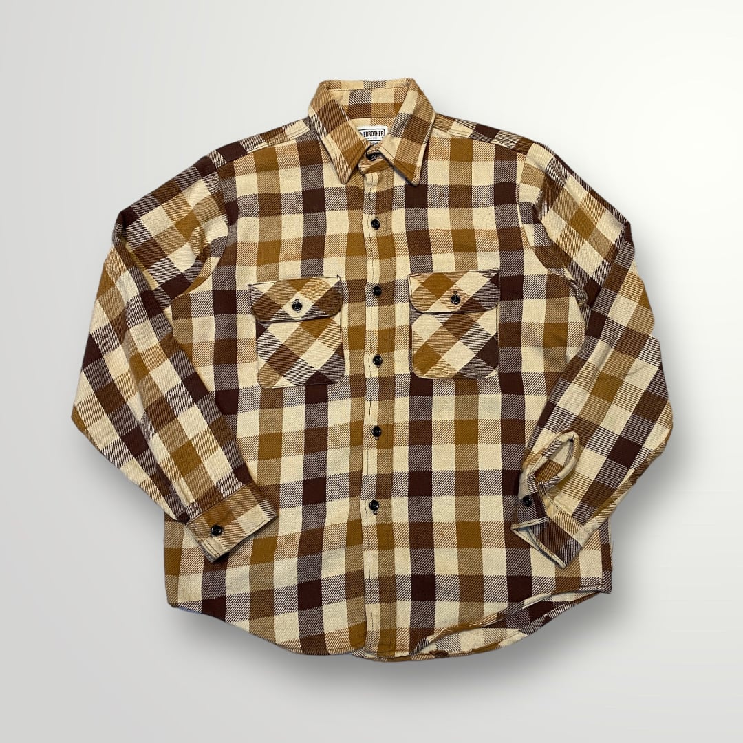 商品説明 : ~80年代のファイブブラザーのヘビーネルシャツになります。ベージュやブラウンを基調としたブラックチェックが非常に好配色の1着。