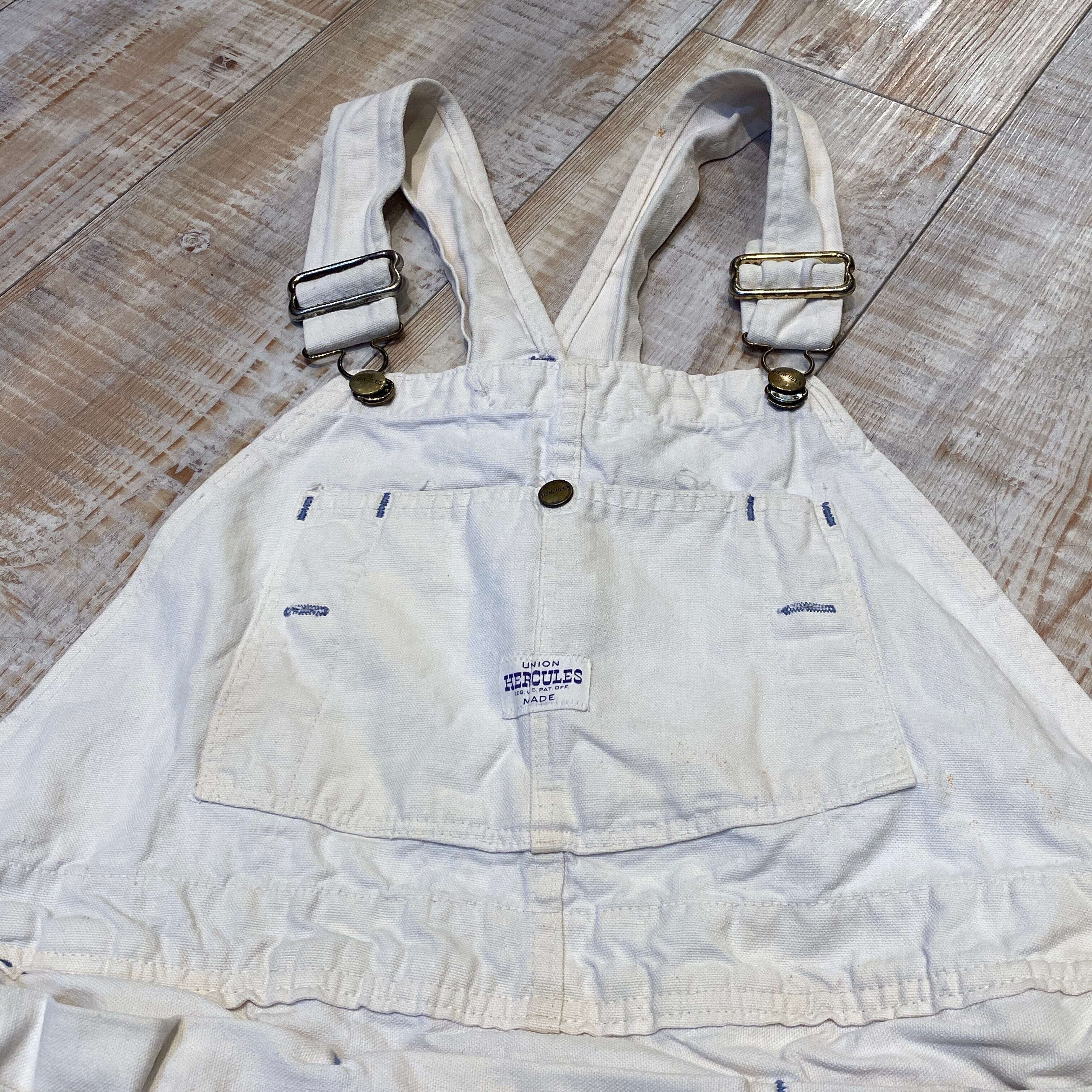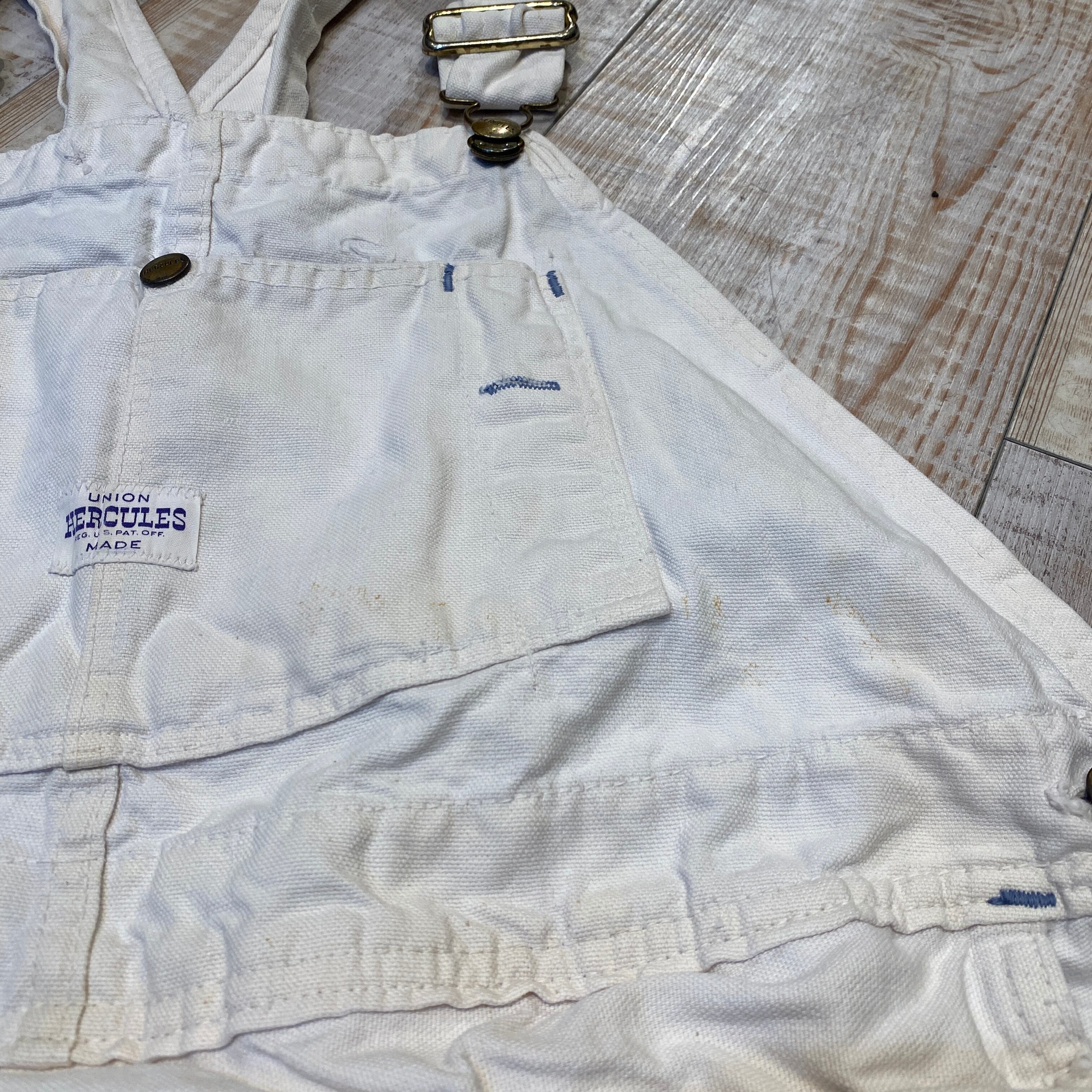 50年代 "39×29位" HERCULES ヘラクレス コットン オーバーオール ダブルニー エプロン付 白 ホワイト 古着 古着屋 高円寺 ビンテージ
