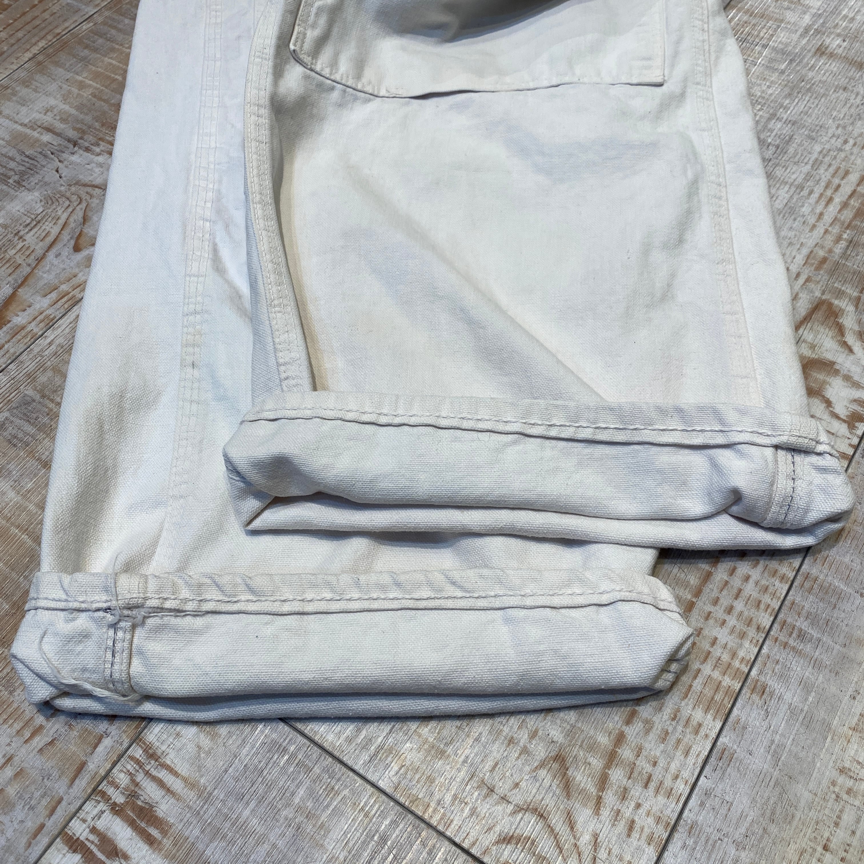 商品説明 :40年代後半から50年代に見られる青タグの付くHERCULESのコットンオーバーオールになります。こちらはプリントタグになるので50年代になります。タグはしっかり残り、ボタンは刻印入りになります。清涼感のあるホワイトカラーにブルーのステッチがこの時期にぴったりな個体。エプロン付きに加え、ダブルニー仕様で魅力の詰まった一本。素材はザラッとした薄手のコットン地で軽い着用感もポイントです。汚れやダメージの少ない逸品。