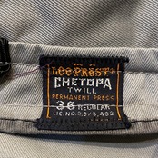 商品説明 :60年代Lee PRest CHETOPA(チェトパ)のツイルワークジャケットになります。ジッパーは棒TALONを使用。フロントには特徴的なフラップ付きポケットが付き、バック裾にはアジャスターが付きます。通称【ガスジャケ】と呼ばれるこちらはガスステーション(ガソリンスタンド)のスタッフ用ワークジャケットになります。短丈のシンプルなディテールにツイル仕様です。ライナーは欠損していますがライトアウターとしては万能な逸品。ワッペンが付いている個体を見かけますが、こちらはプレーンな個体の為ご自身でワッペンの装飾やピンズ、バッヂ等のカスタムもお楽しみ頂けます。