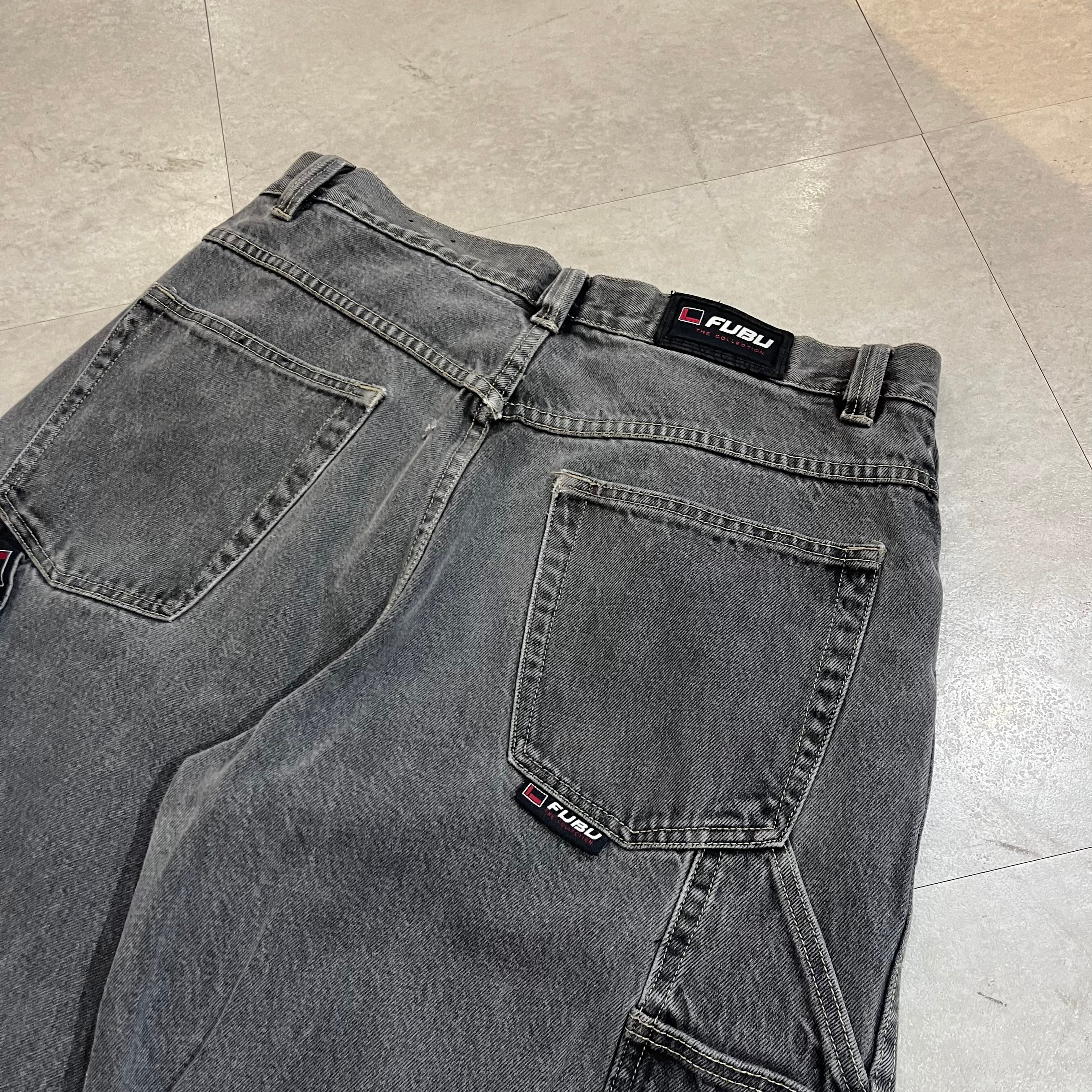 size : W40×L14【 FUBU 】フブ ショートパンツ デニムショーツ ペインタータイプ 黒 古着 古着屋 高円寺 ビンテージ