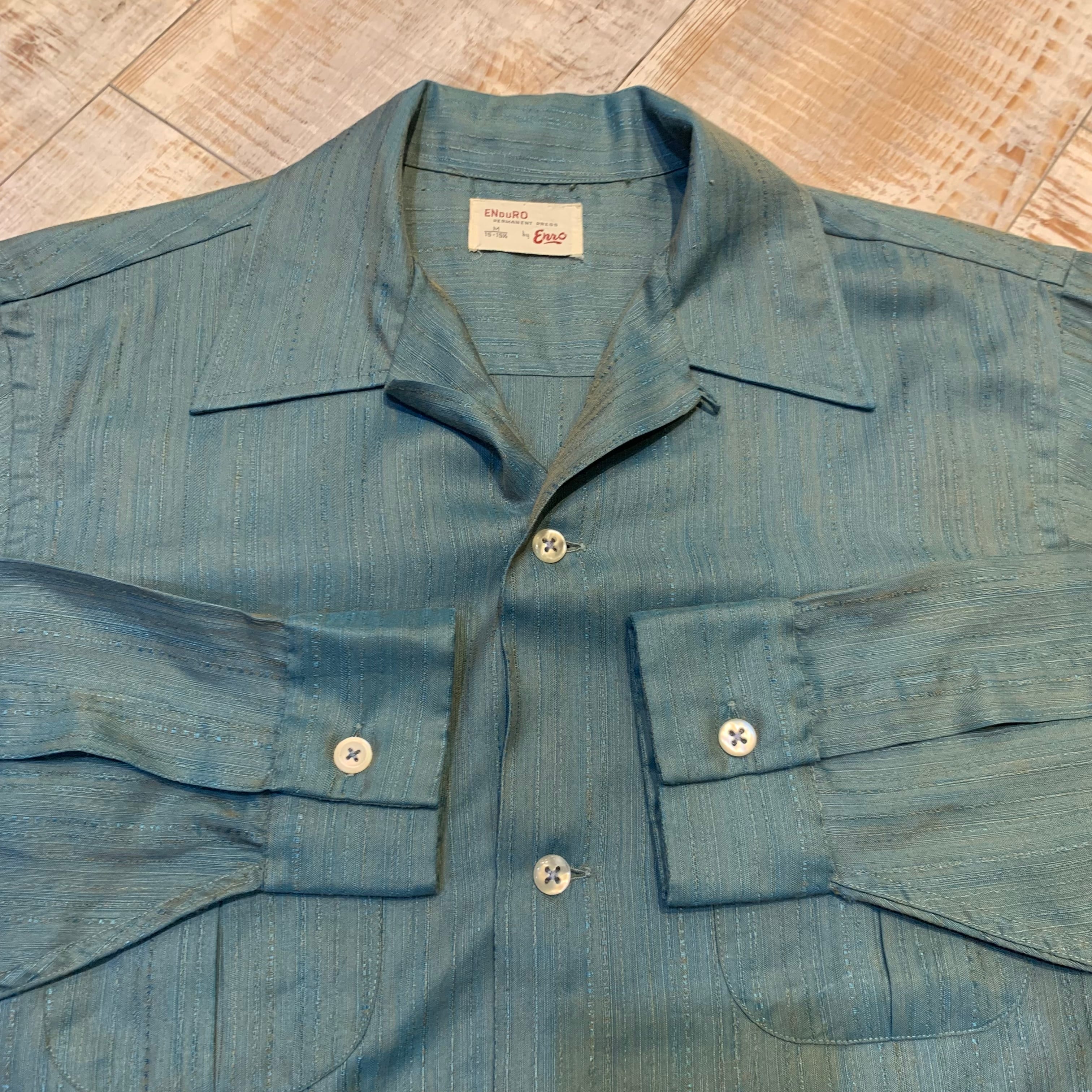 60年代~ “M(15-15 1/2)” ENDURO L/S開襟シャツ 青系 古着 古着屋 高円寺 ビンテージ