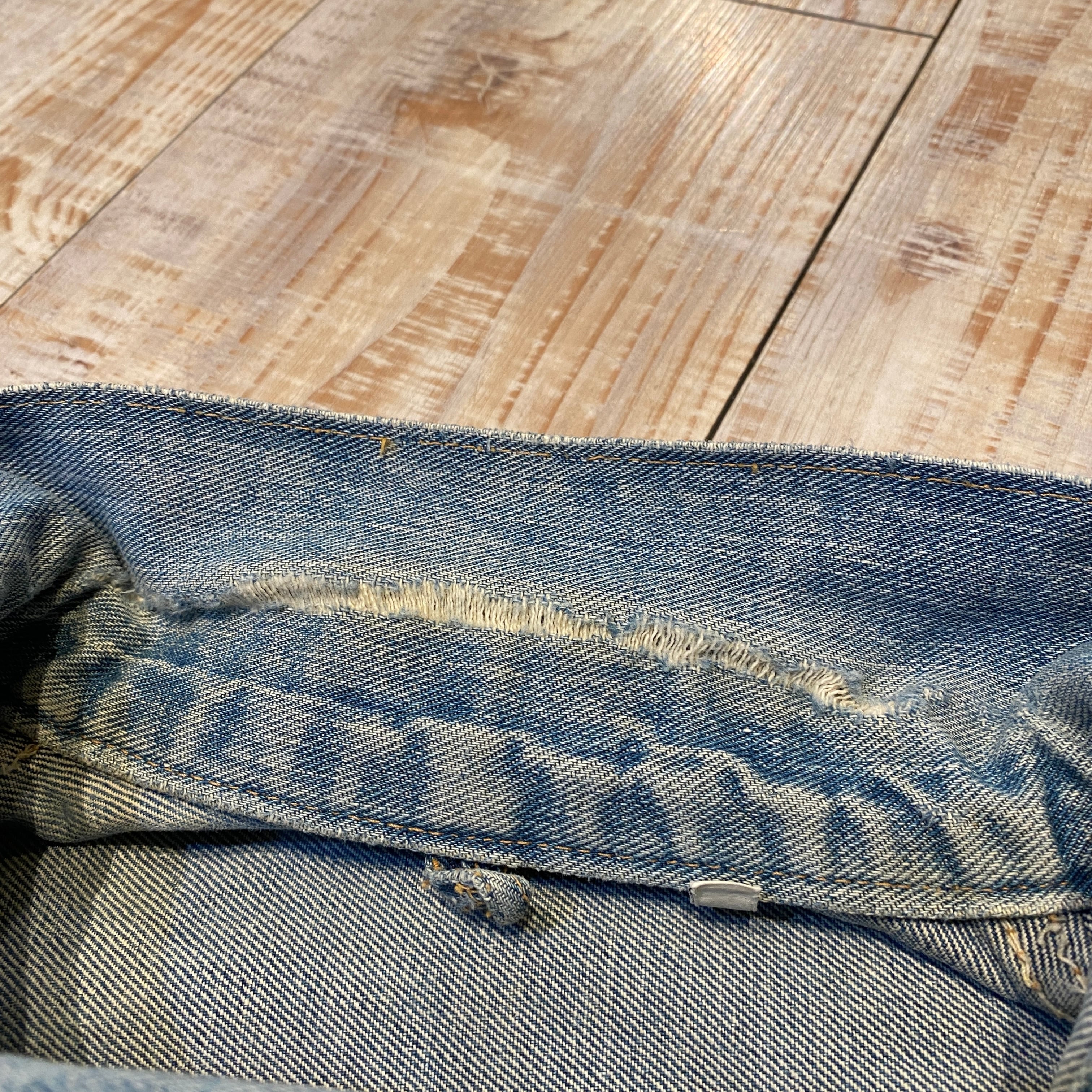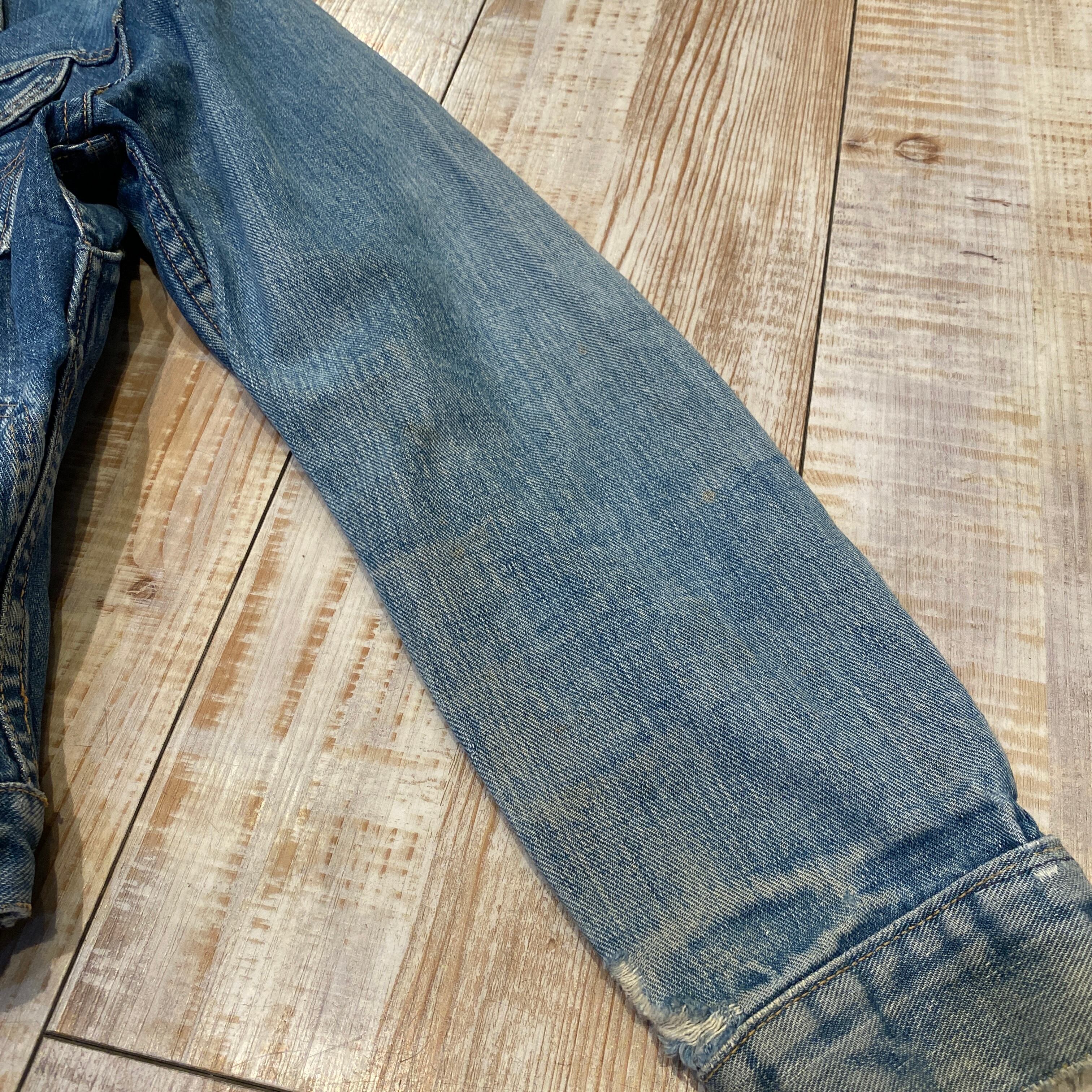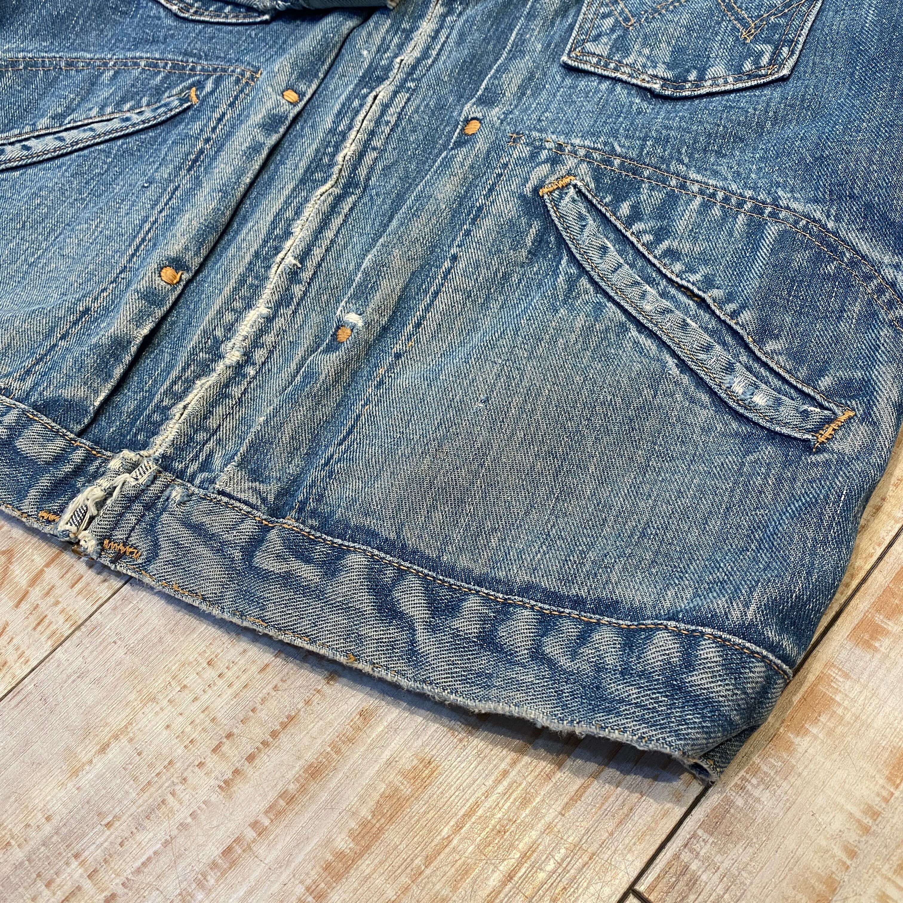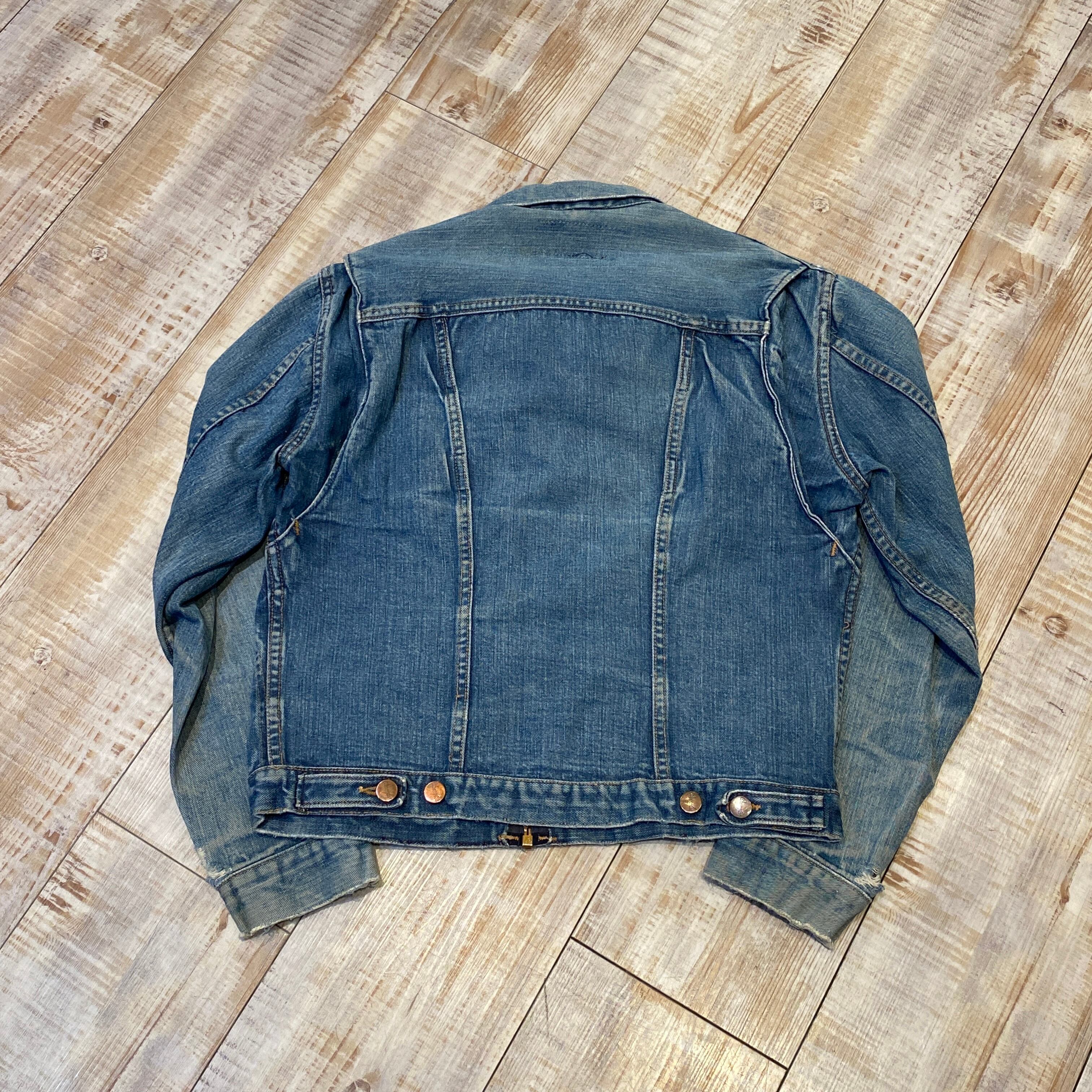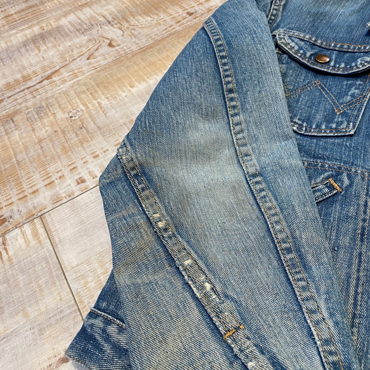 商品説明 :70年代Wranglerの24MJZデニムジャケットになります。60年代半ばから80年代半ばまで生産されていた【24MJZ】モデル。フラップに黒いピスネームがつく為70年代以降になります。