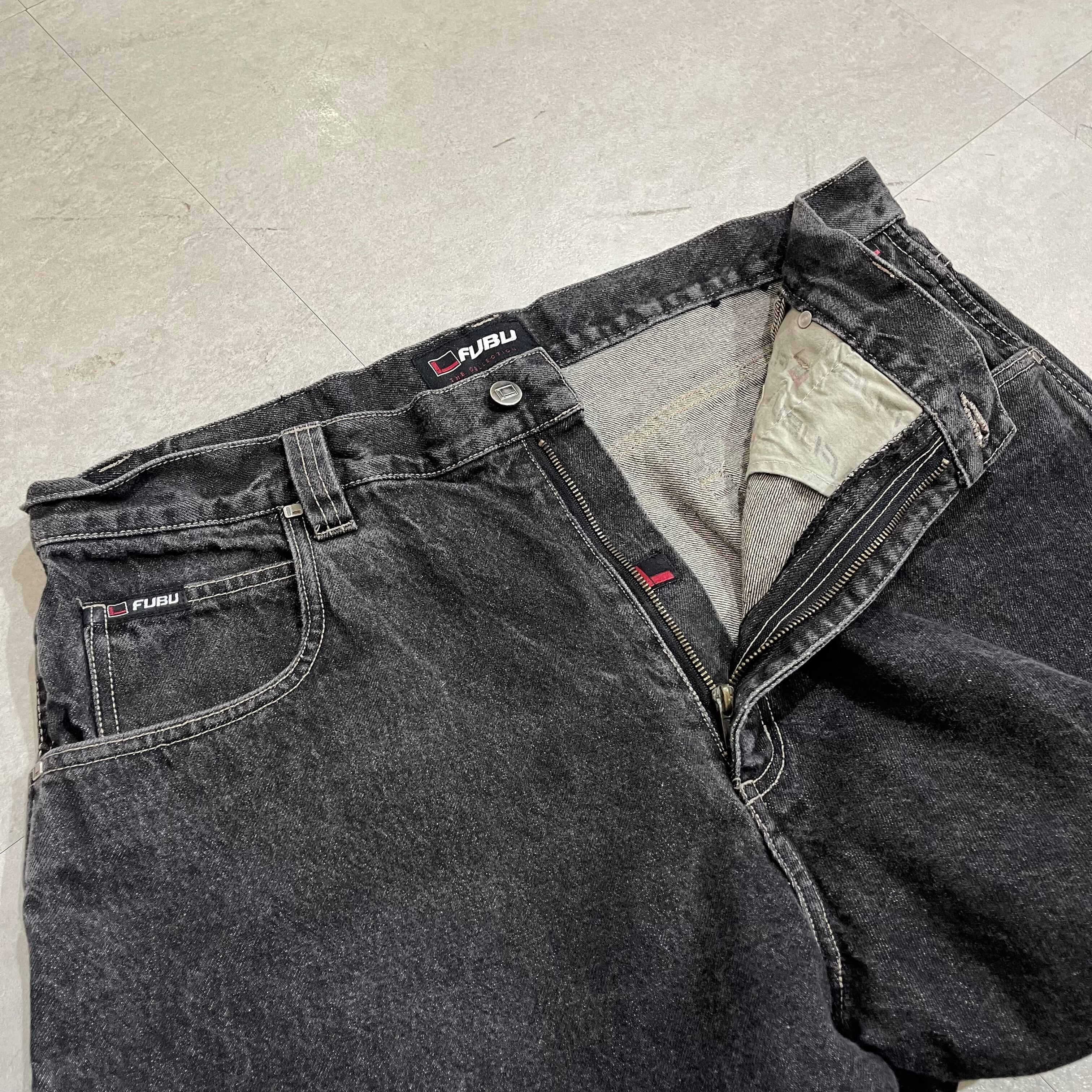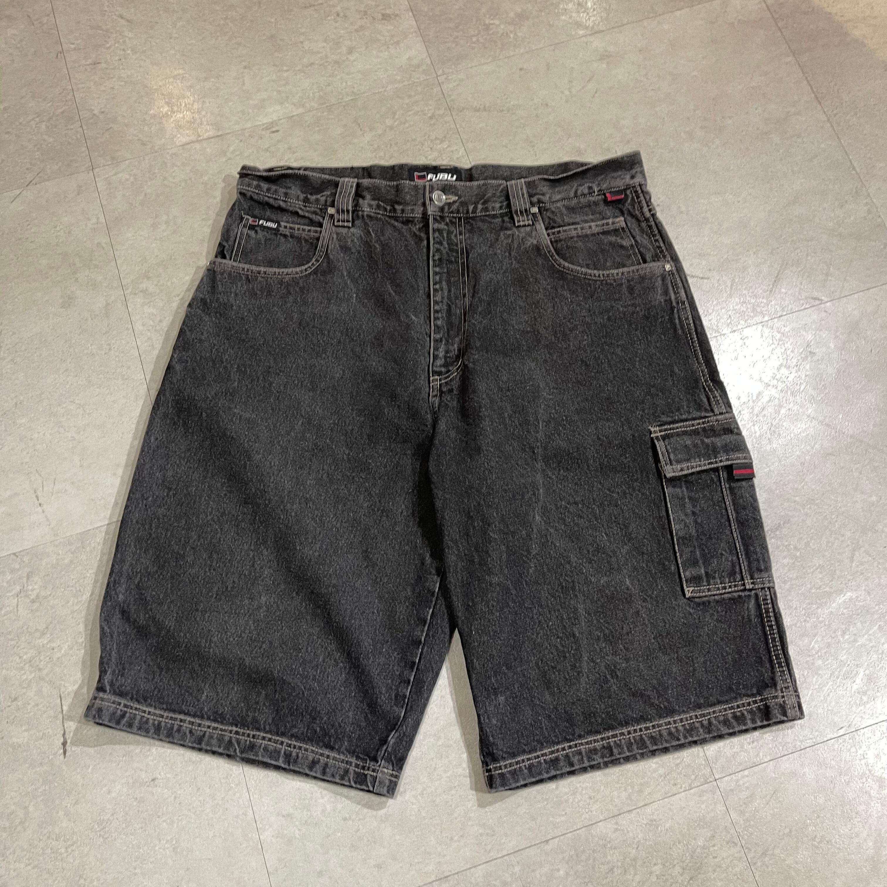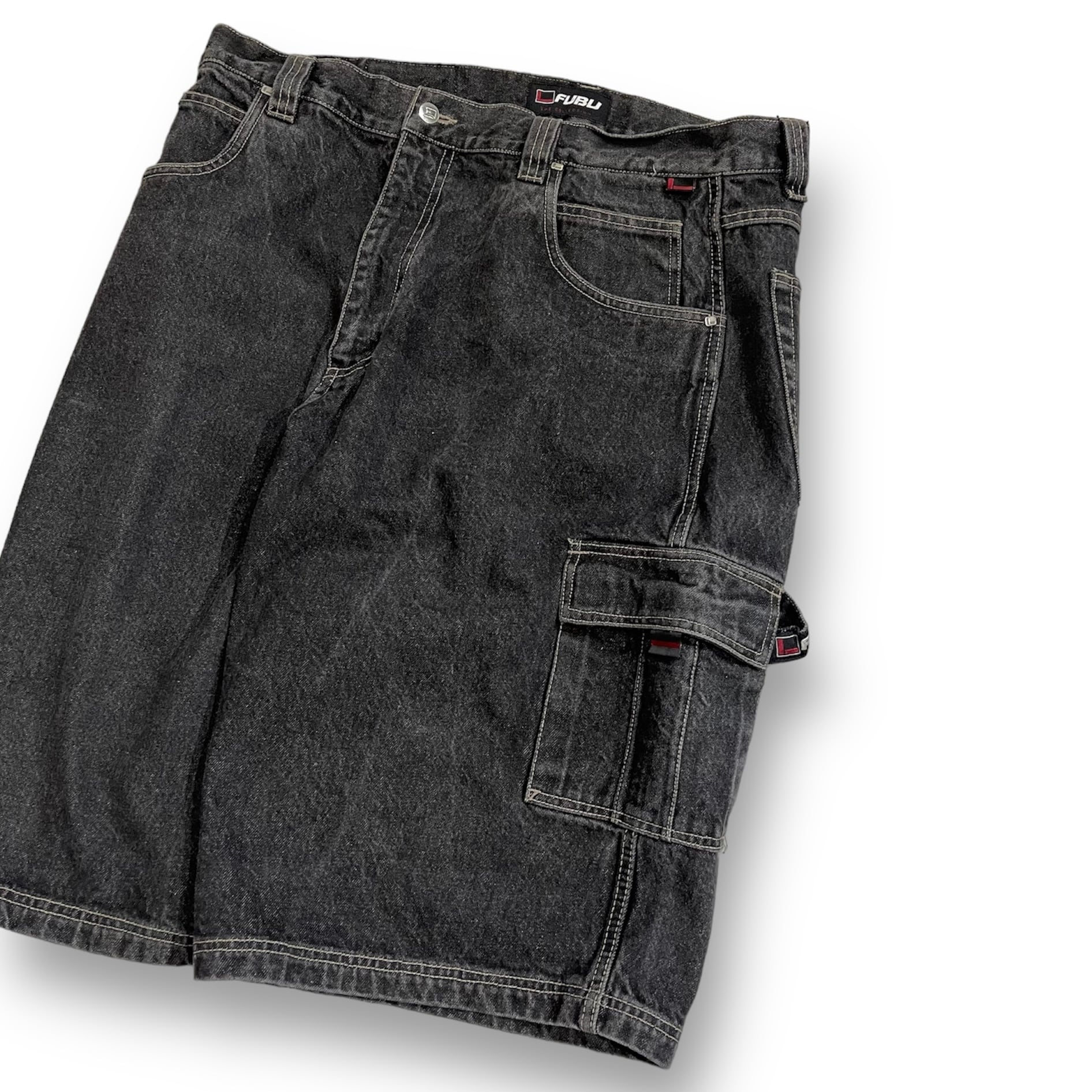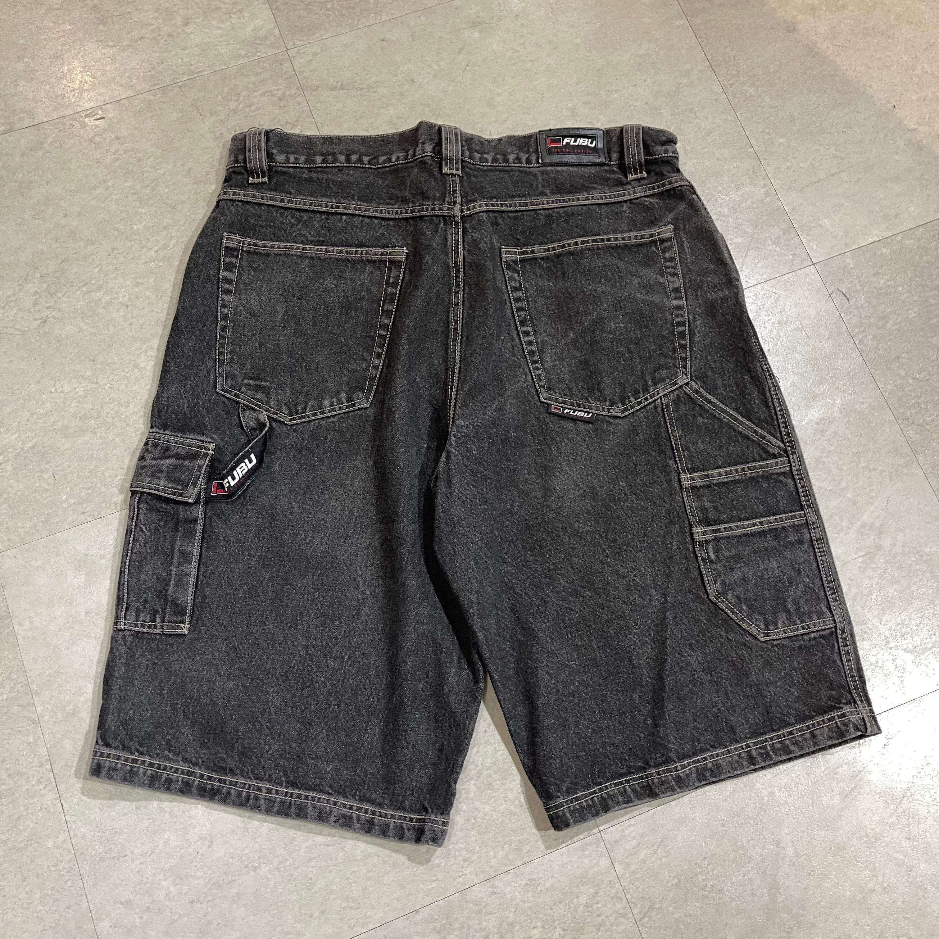 size:W40【 FUBU 】フブ カーゴショーツ ハーフパンツ ショーツ カーゴパンツ 短パン ブラックデニム デニムパンツ ブラック 黒 古着 古着屋 高円寺 ビンテージ a13712