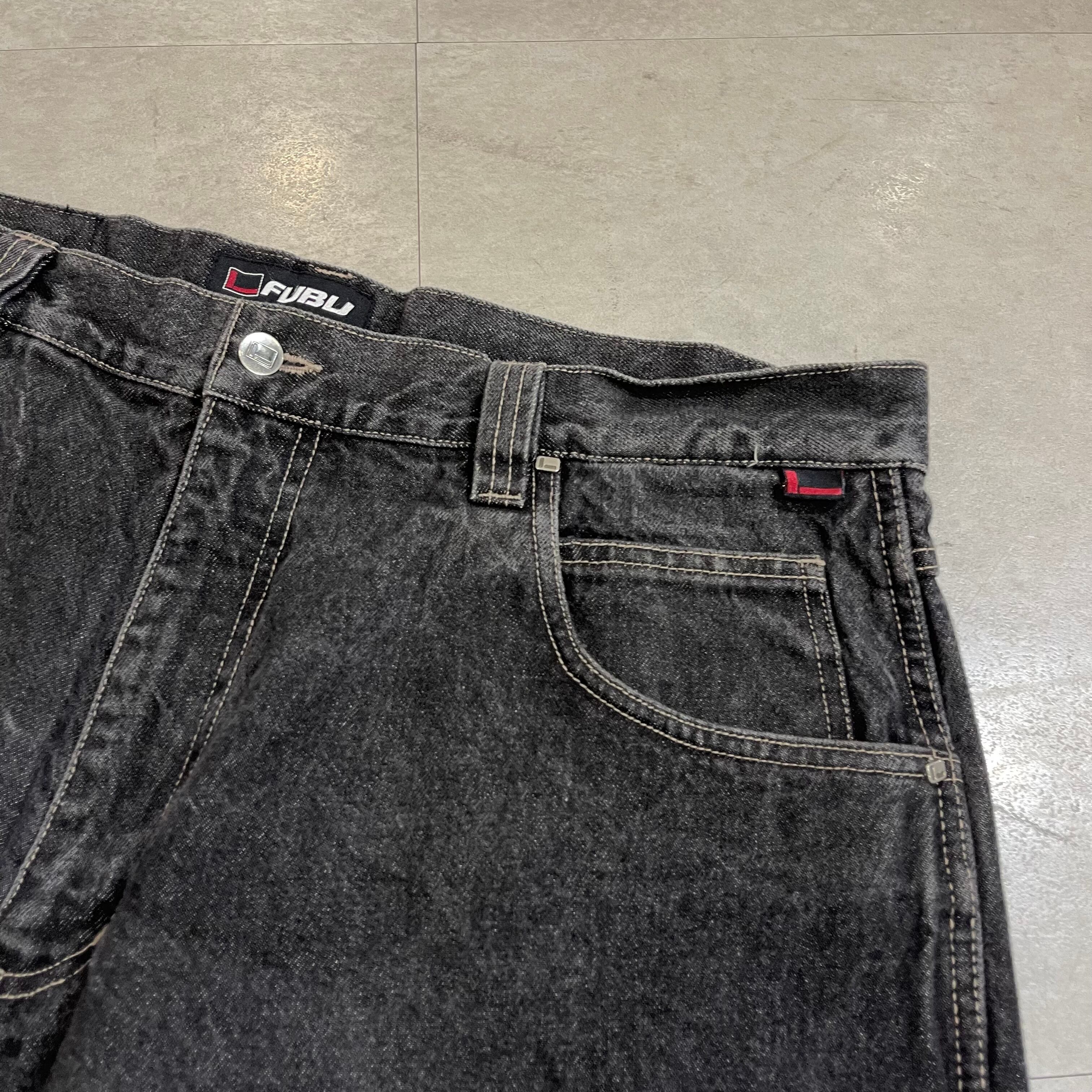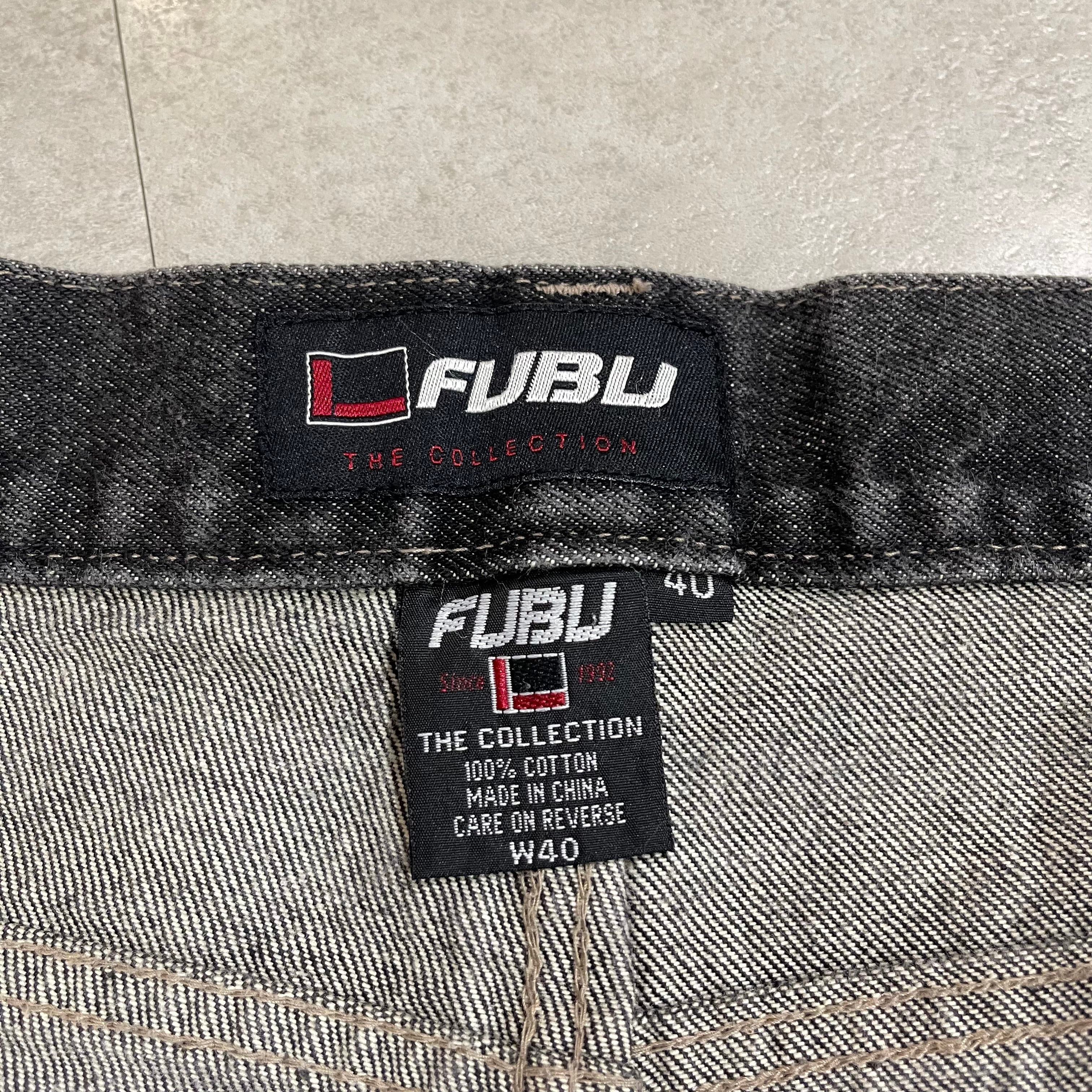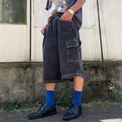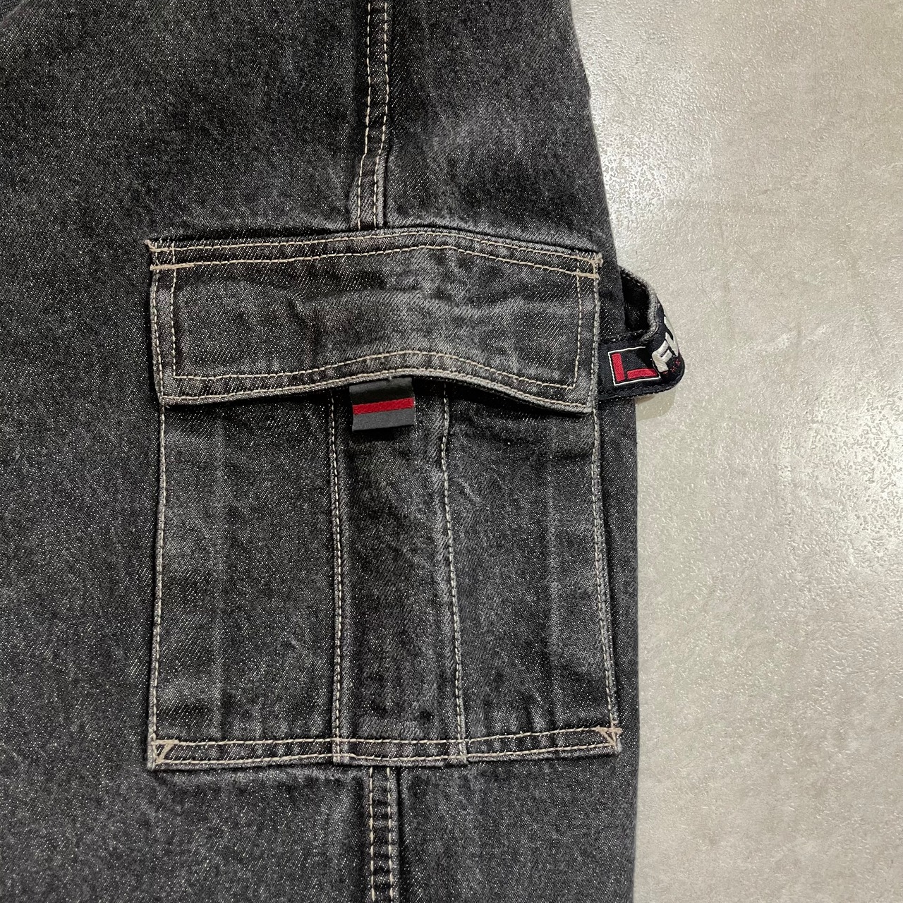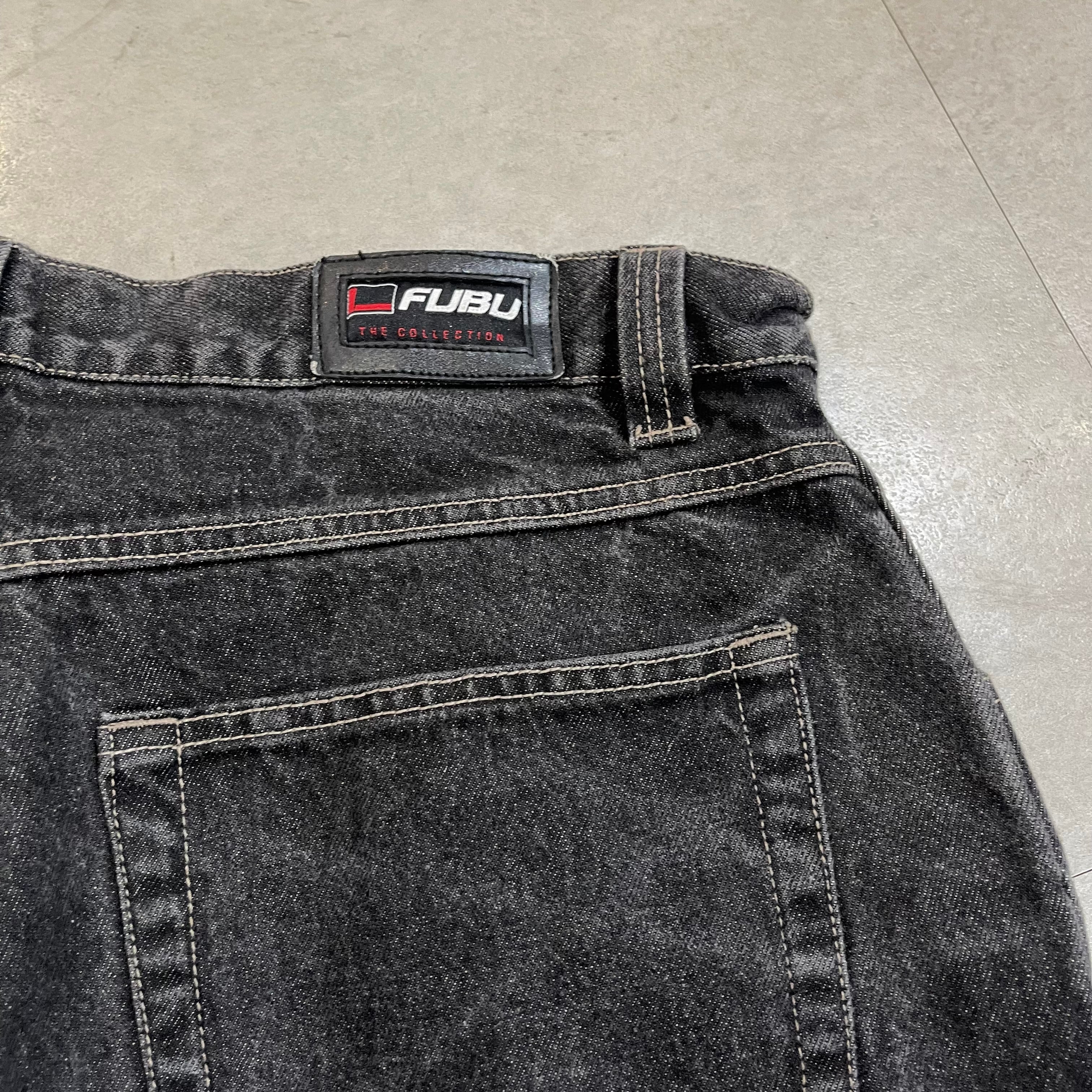 size:W40【 FUBU 】フブ カーゴショーツ ハーフパンツ ショーツ カーゴパンツ 短パン ブラックデニム デニムパンツ ブラック 黒 古着 古着屋 高円寺 ビンテージ a13712