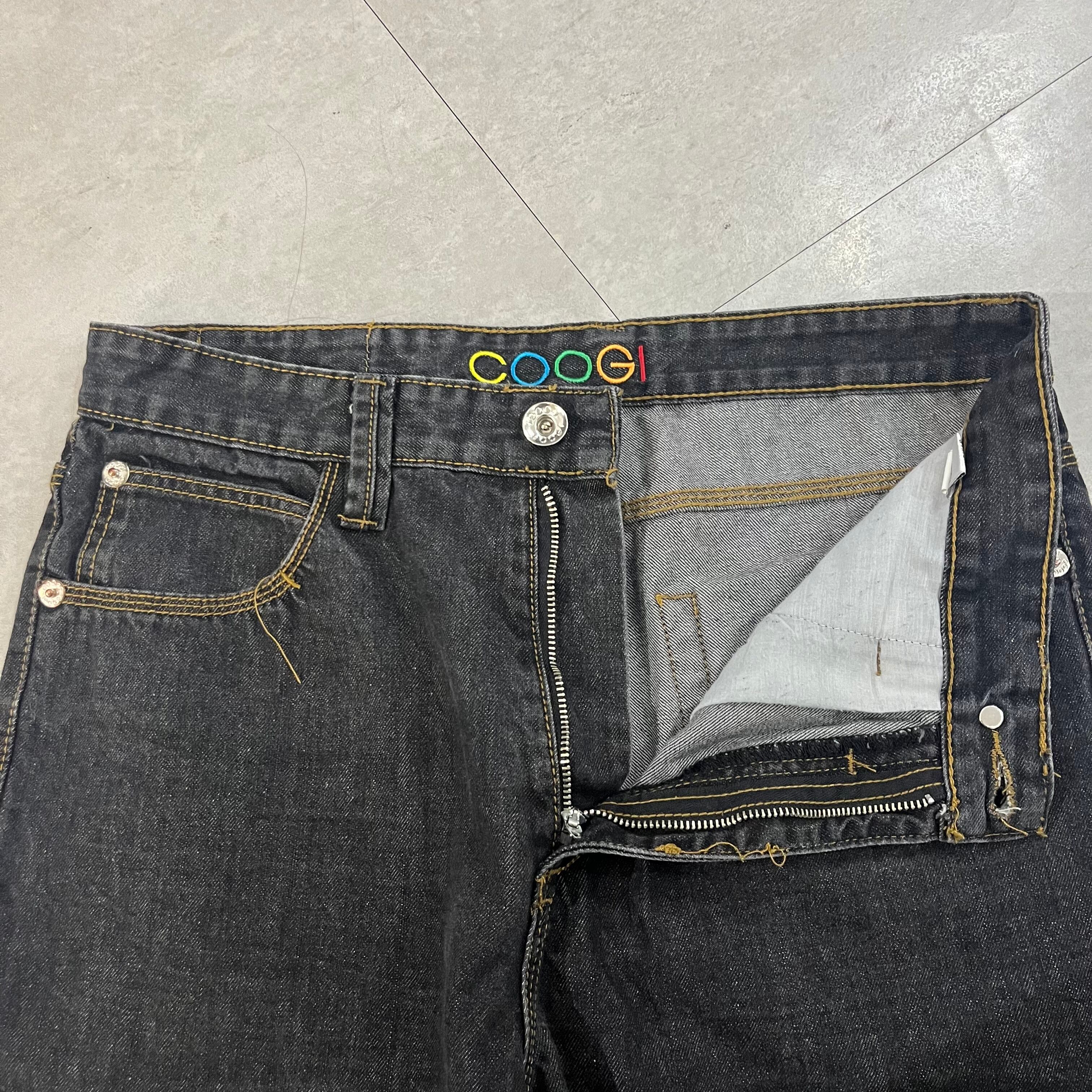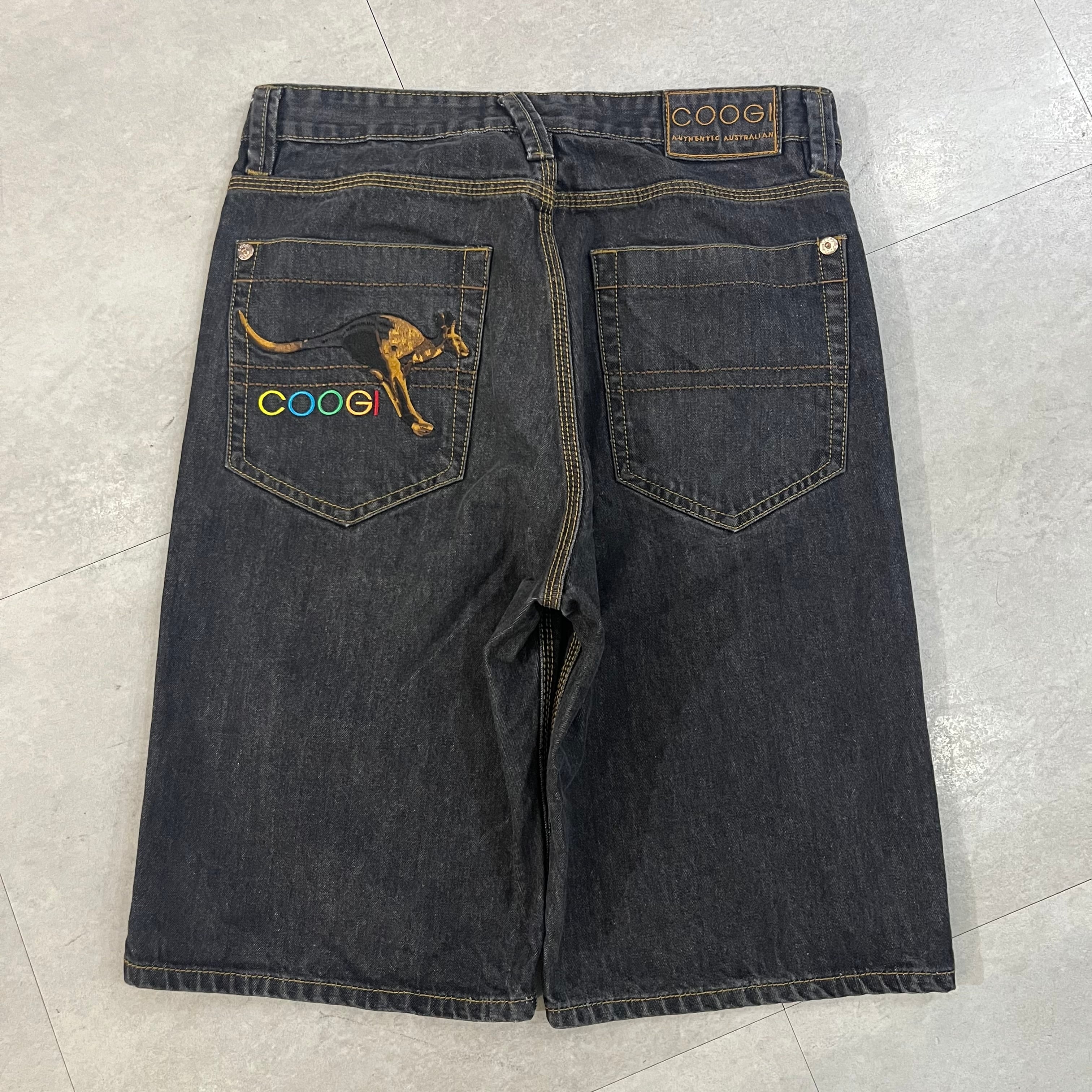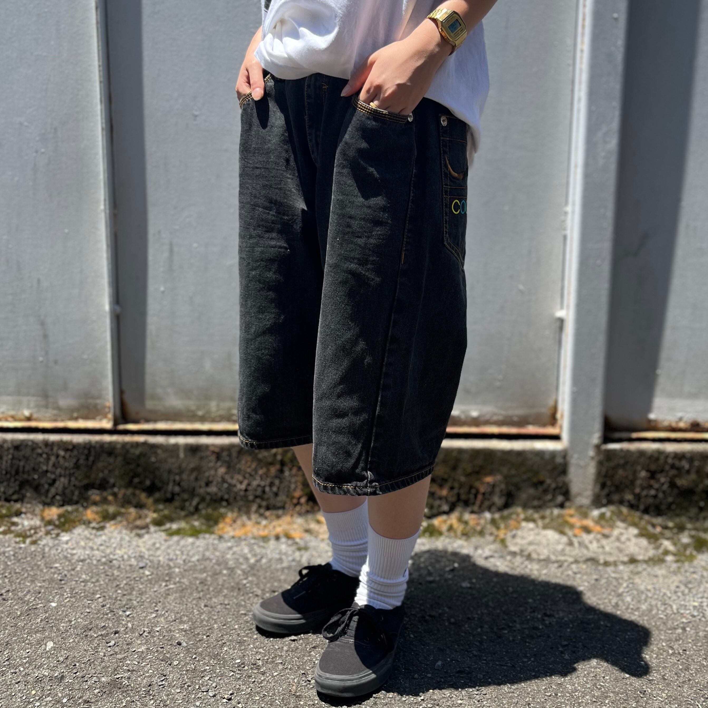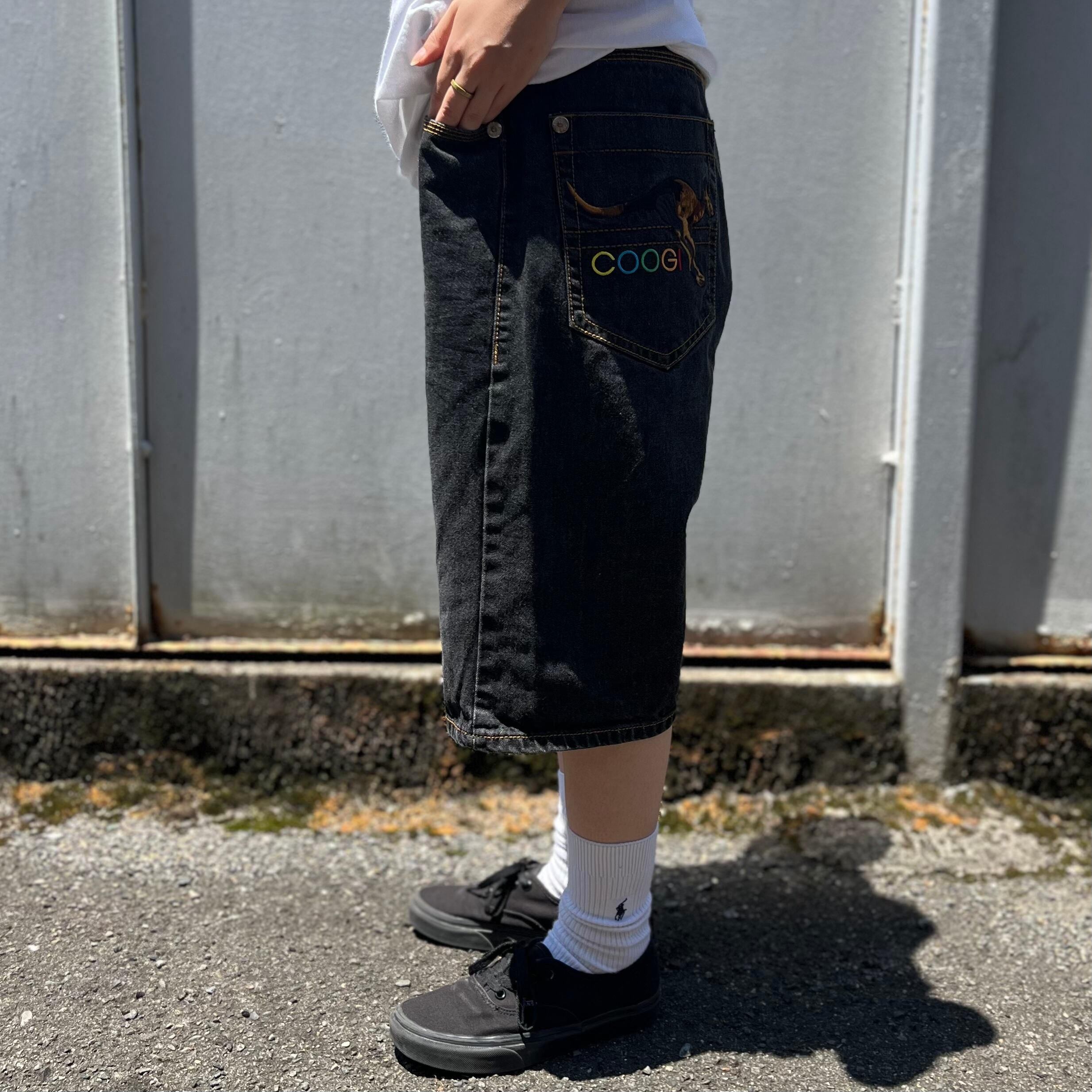 size : W34【 COOGI 】クージー デニム ハーフパンツ ショーツ ヒップホップ カンガルー 黒 オレンジ 古着 古着屋 高円寺 ビンテージ a13712