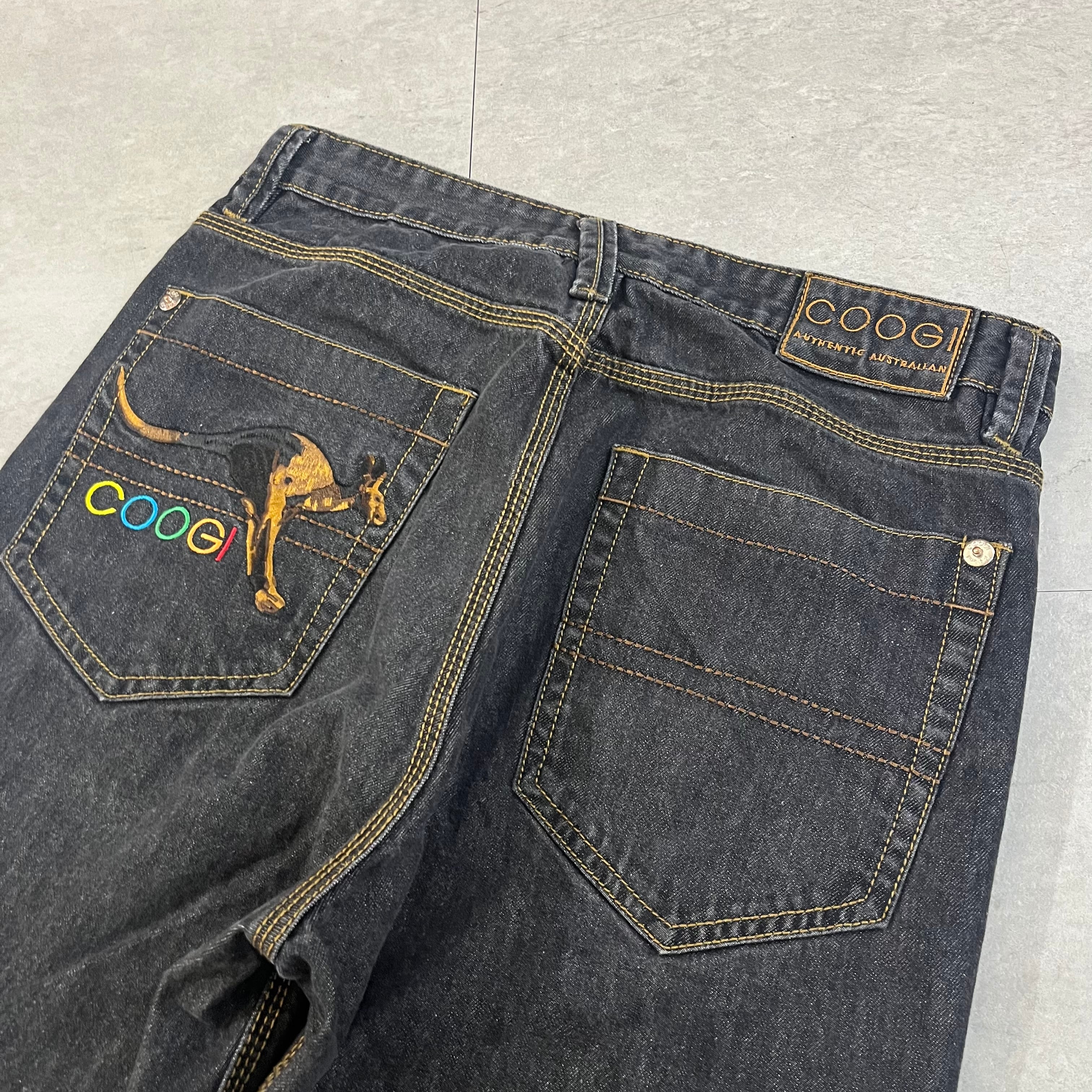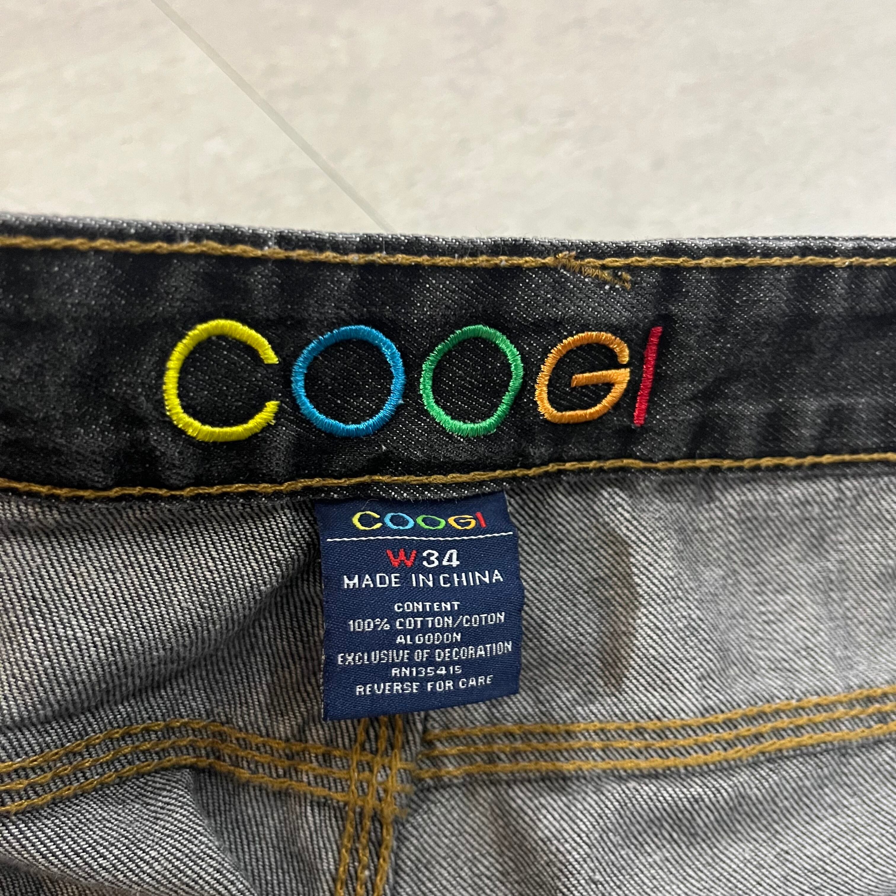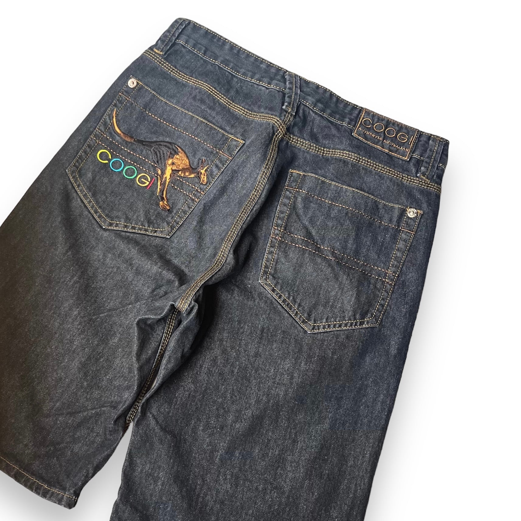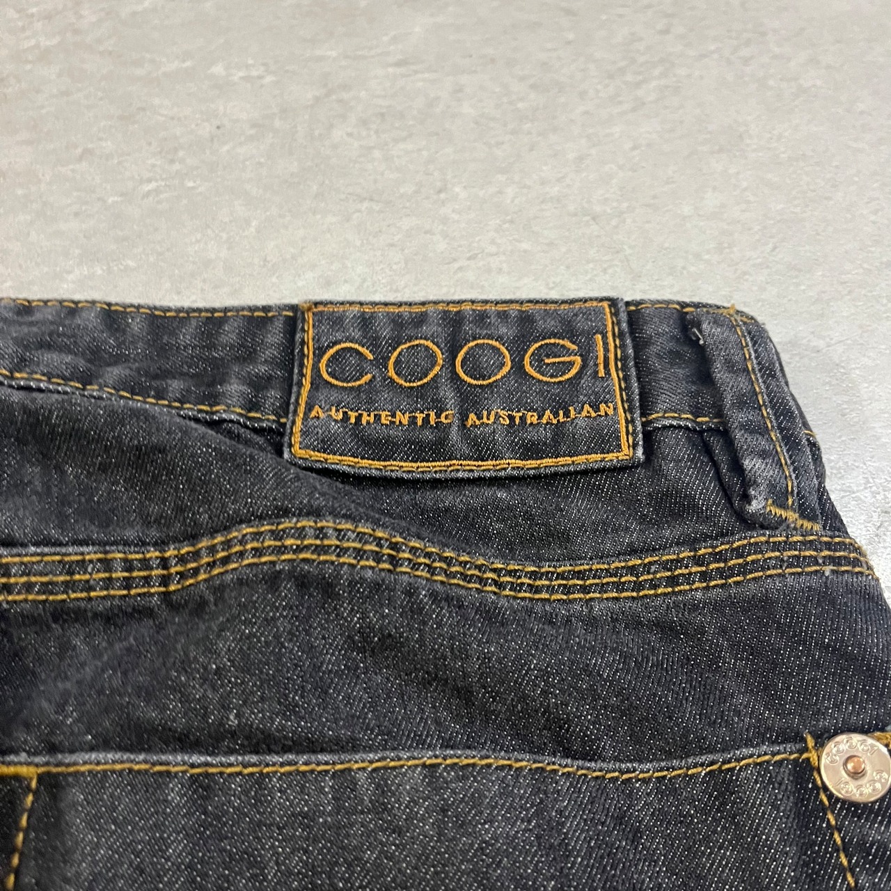 size : W34【 COOGI 】クージー デニム ハーフパンツ ショーツ ヒップホップ カンガルー 黒 オレンジ 古着 古着屋 高円寺 ビンテージ a13712