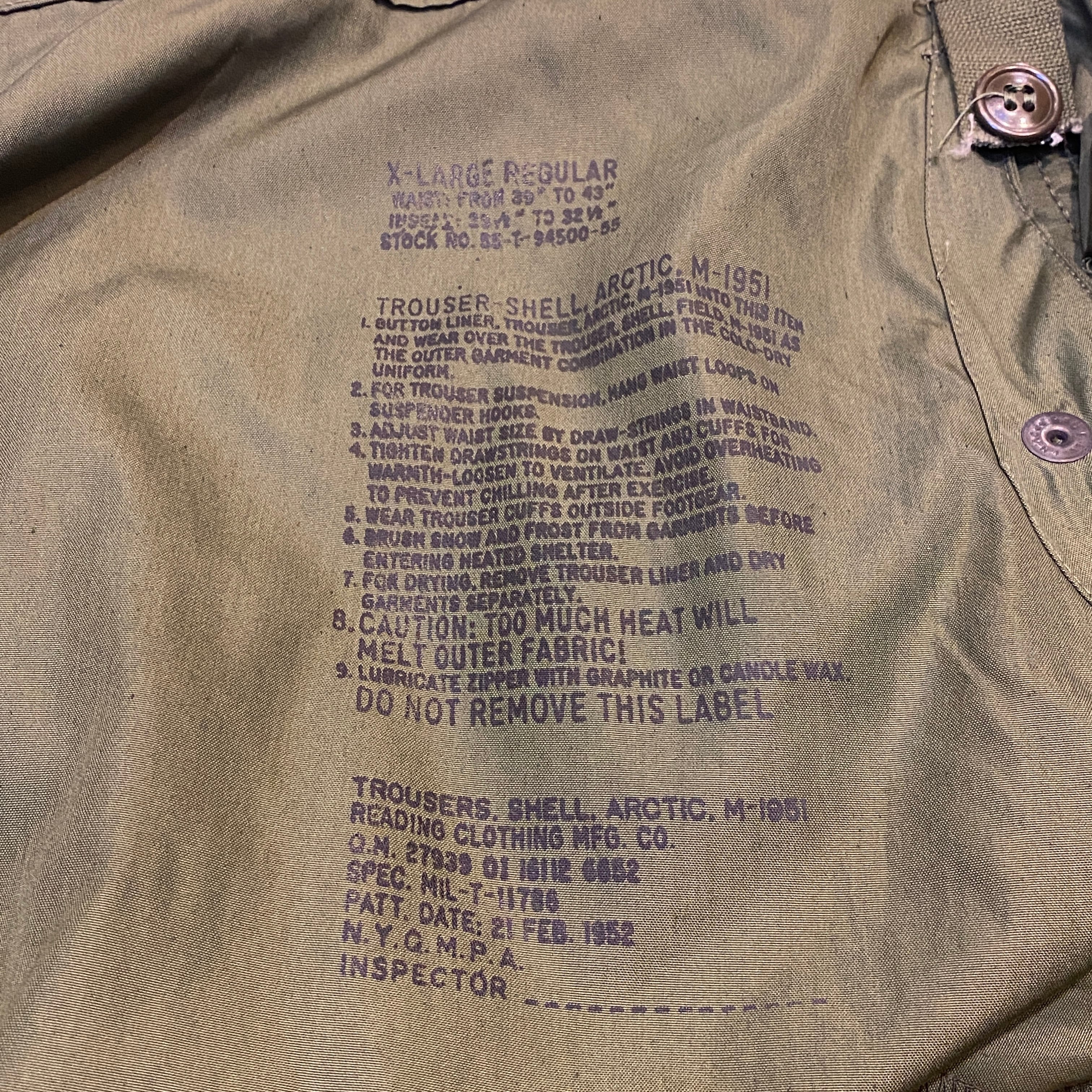 50年代 "XL-R" U.S.ARMY M-51 SHELL ARCTIC シェルアークティック オーバーパンツ オリーブ ミリタリー 古着 古着屋 高円寺 ビンテージ