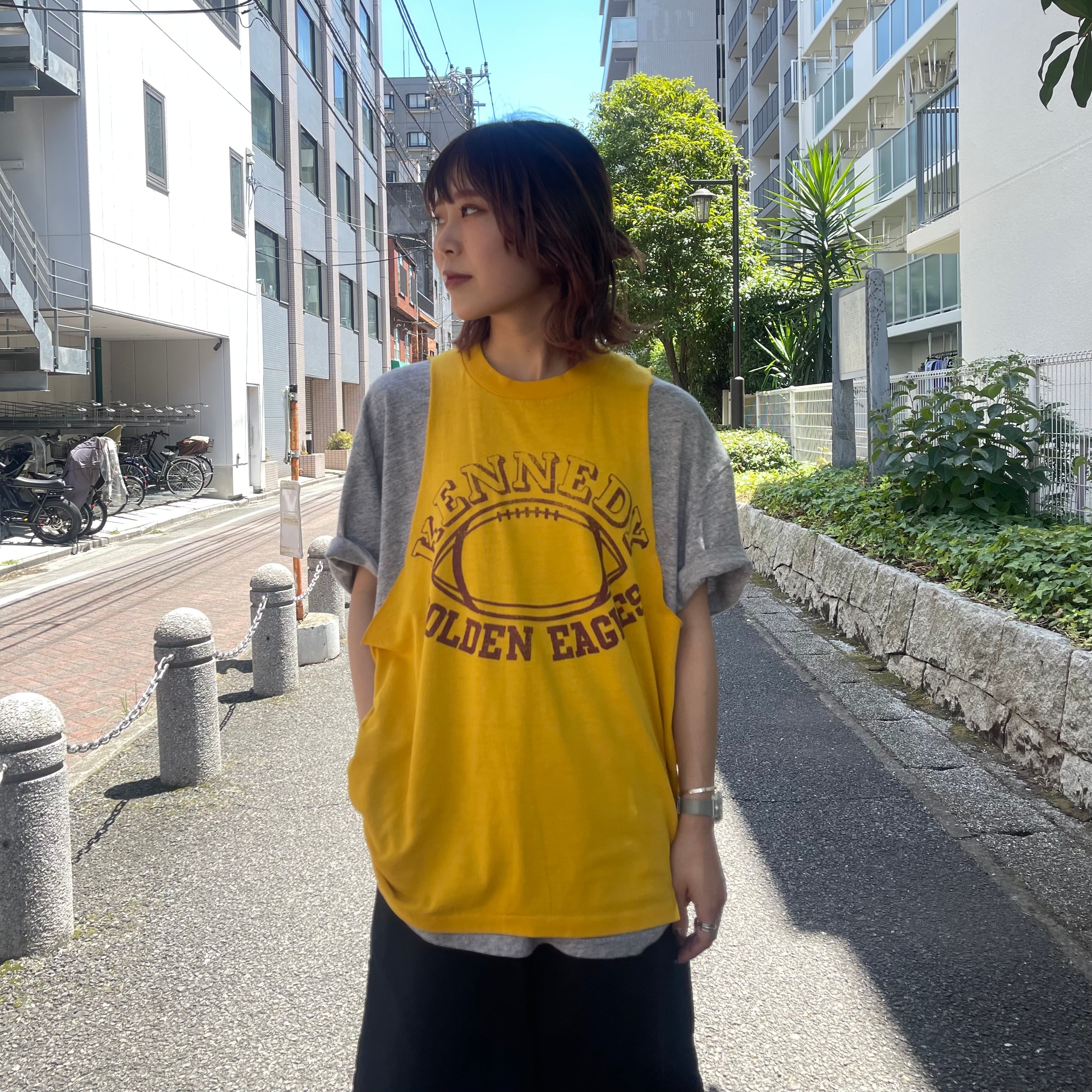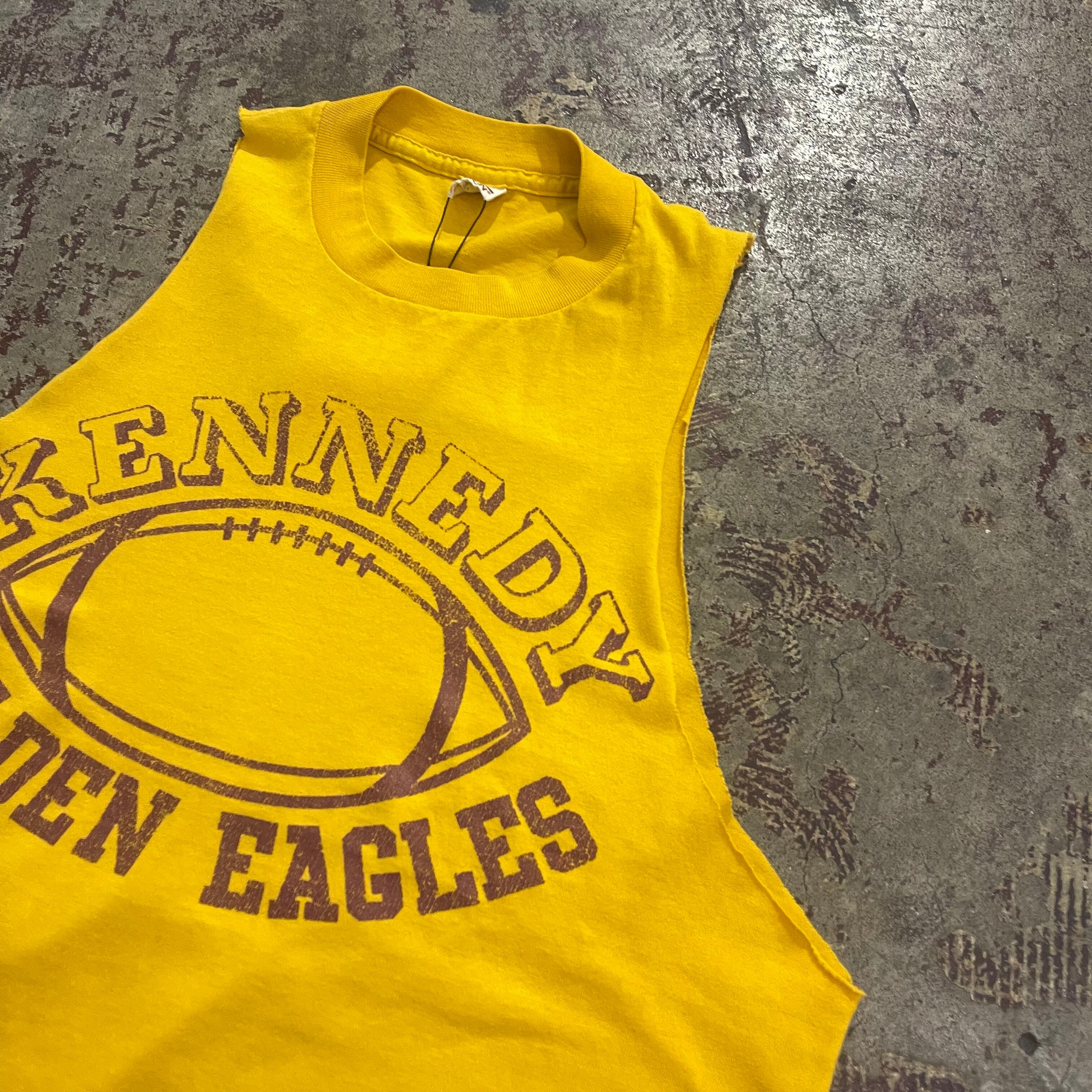 USA製 80年代 『L』Kennedy golden eagles カットオフTシャツ チームTシャツ 雰囲気系 シングルステッチ 黄 古着 古着屋 高円寺 ビンテージ