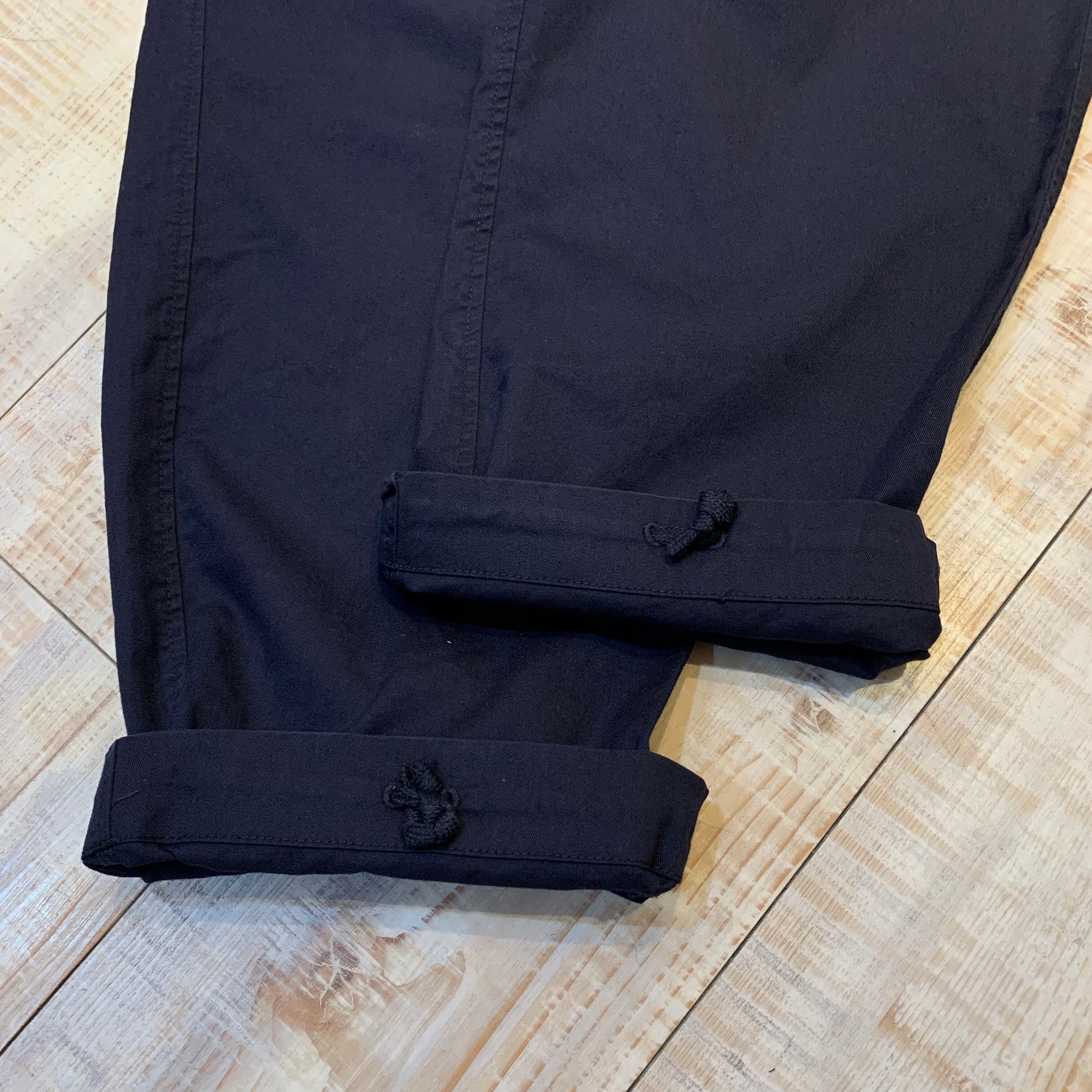 イギリス軍ロイヤルネイビーのコンバットパンツになります。6ポケットのサイドポケットがつく所謂"カーゴパンツ"ですが、ポケットが斜めについている点や、ウエストのタック、ボタンなど米軍物とは一線を画すデザインになっています。バックポケットはフラップ付き、裾はドローコードが着く為ディテールの変化も楽しめます。