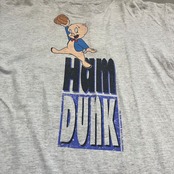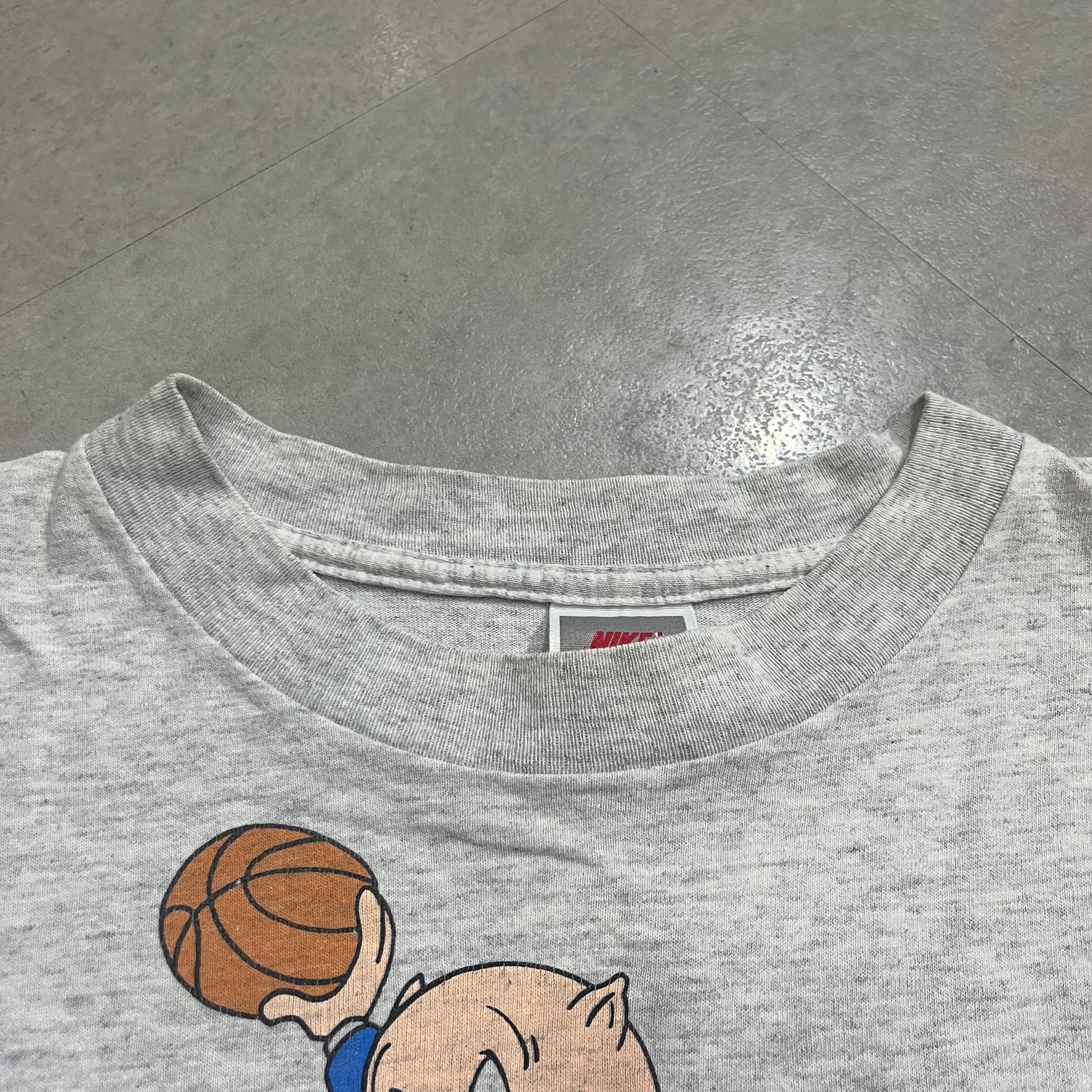 90年代 USA製 size : L【 NIKE 】ナイキ ルーニートゥーンズ ポーキー・ピッグ ハムダンク プリントTシャツ キャラクターTシャツ キャラT 両面プリント グレー 灰 古着 古着屋 高円寺 ビンテージ n3809