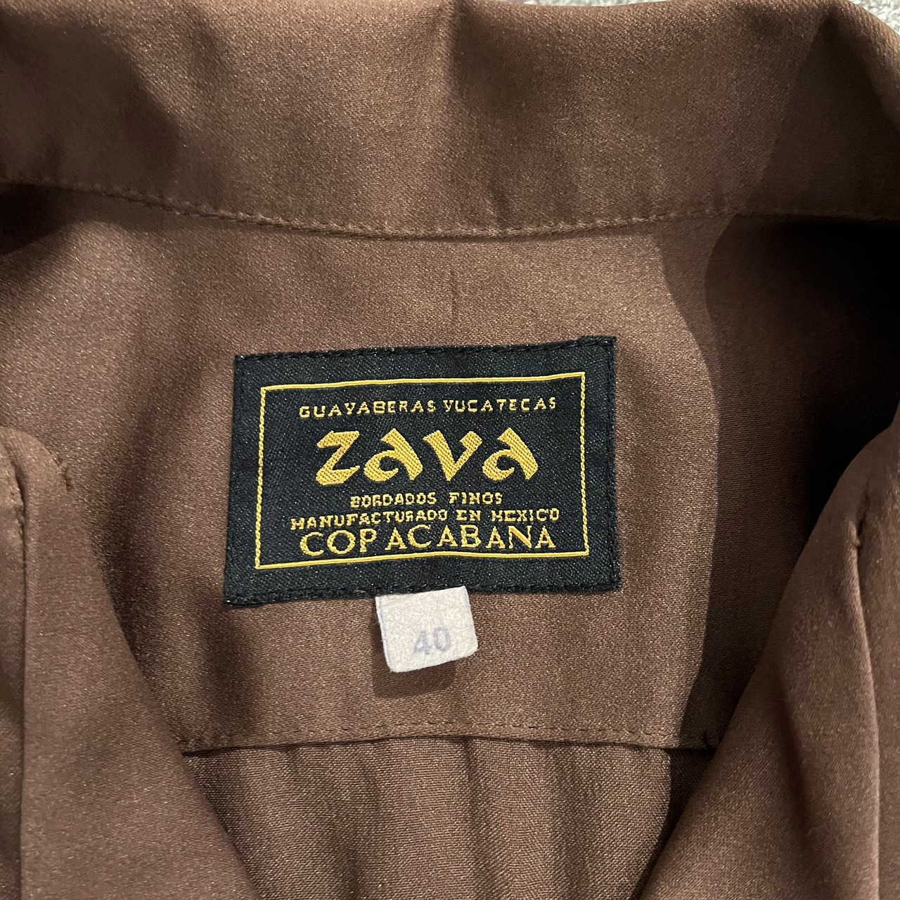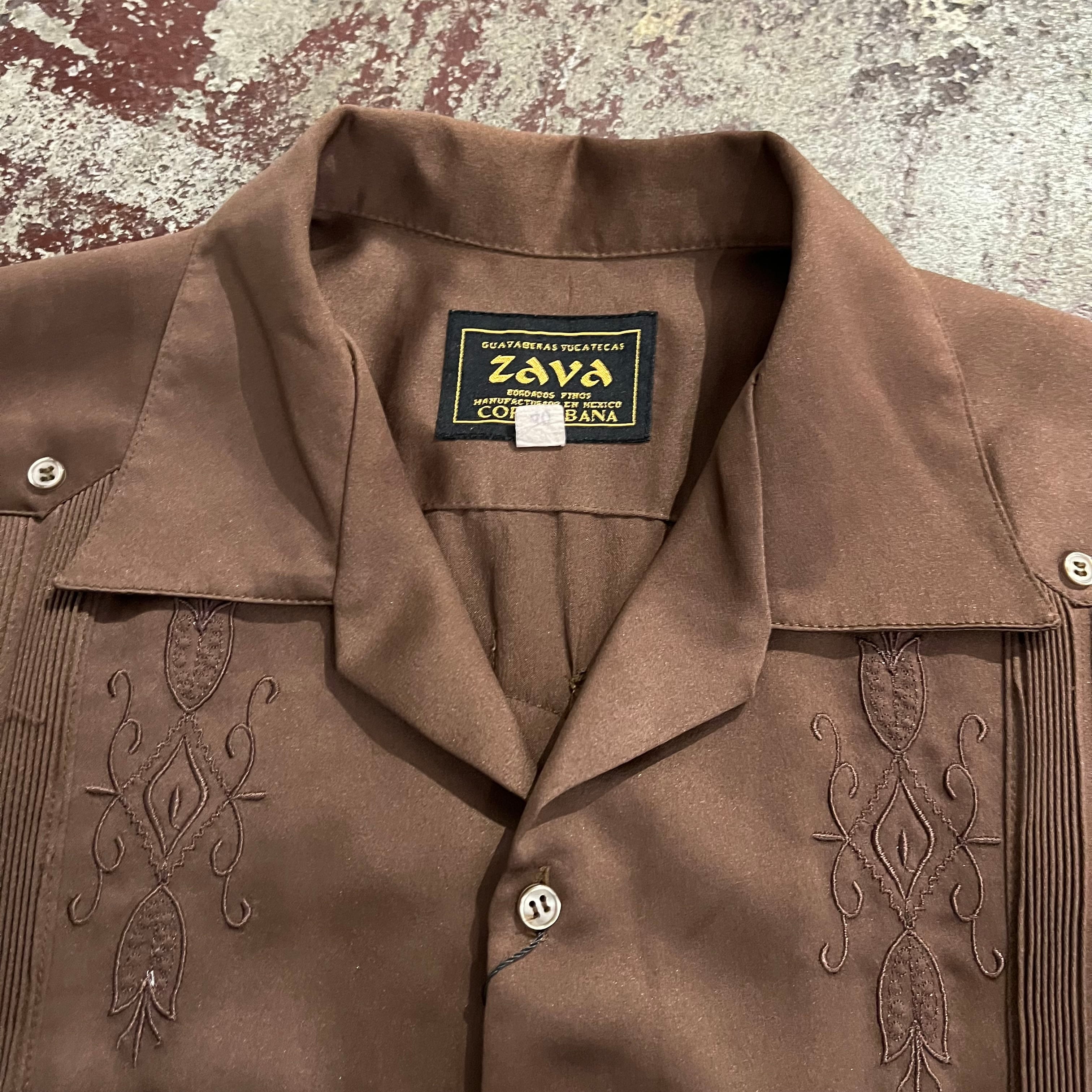 『40』zava キューバシャツ 開襟 刺繍 ブラウン 茶 古着 古着屋 高円寺 ビンテージ n3810