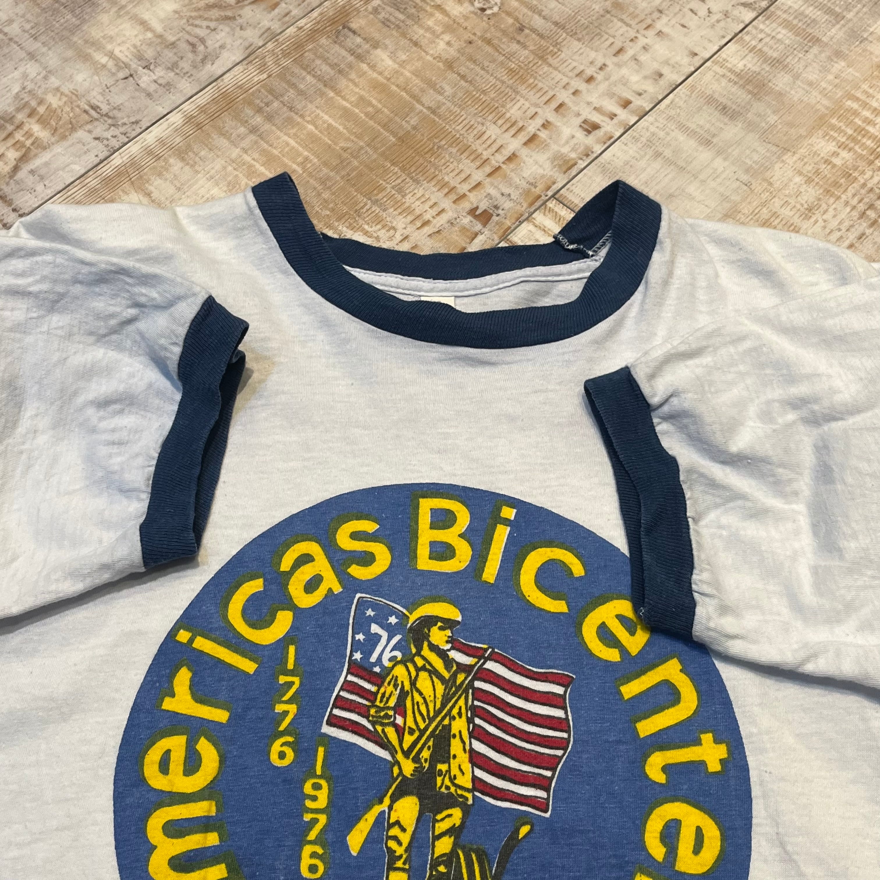 USA製 70年代 “XL” リンガーTシャツ 青×白 ブルー×ホワイト 染み込みプリント 古着 古着屋 高円寺 ビンテージ n3816