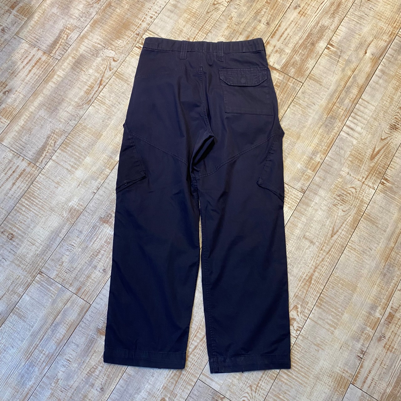 商品説明 : イギリス軍ロイヤルネイビーのコンバットパンツになります。6ポケットのサイドポケットがつく所謂"カーゴパンツ"ですが、ポケットが斜めについている点や、ウエストのタック、ボタンなど米軍物とは一線を画すデザインになっています。バックポケットはフラップ付き、裾はドローコードが着く為ディテールの変化も楽しめます。