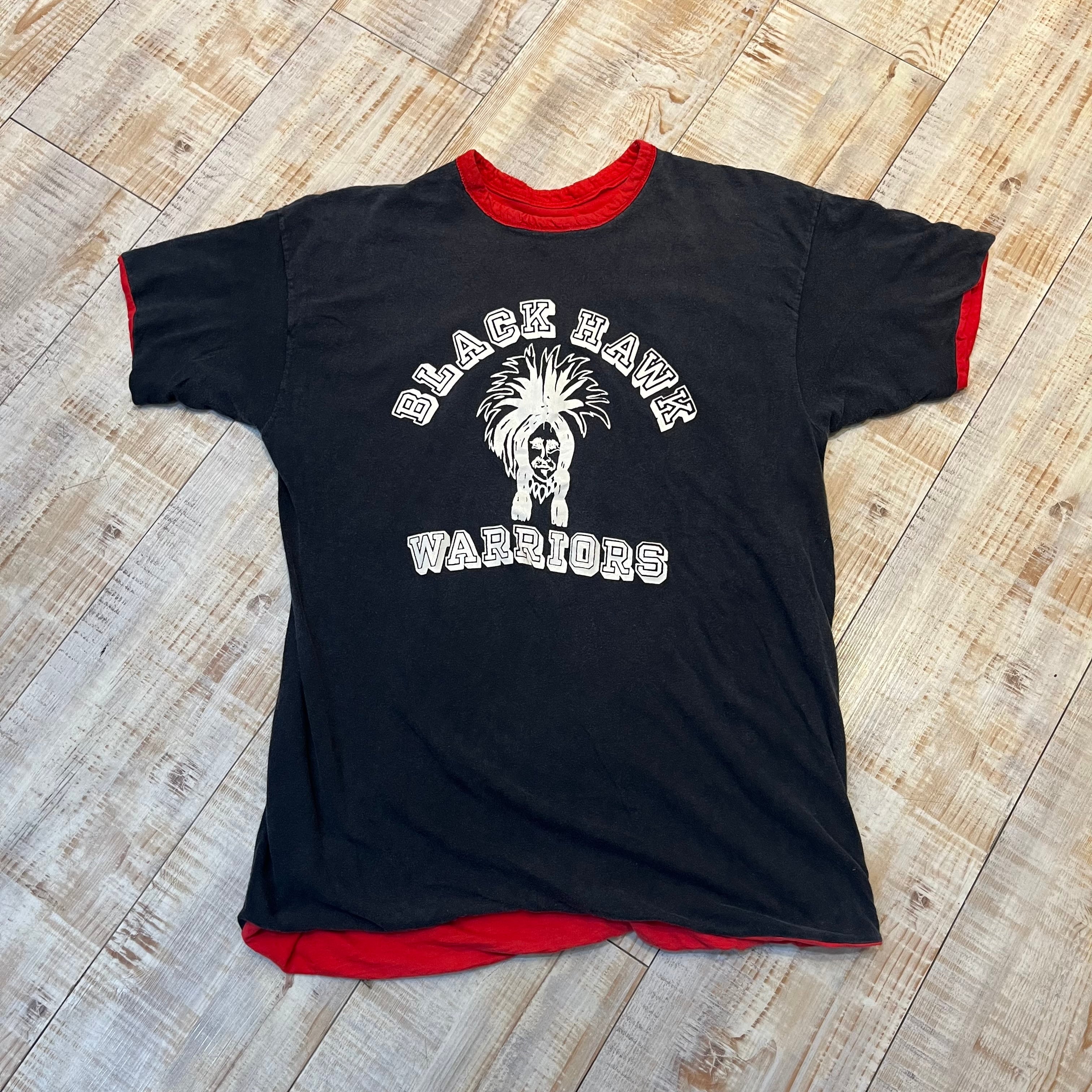 70年代 “L位” ダブルフェイスTシャツ インディアンヘッド 黒×赤 ブラック×レッド ラバープリント 古着 古着屋 高円寺 ビンテージ n3831