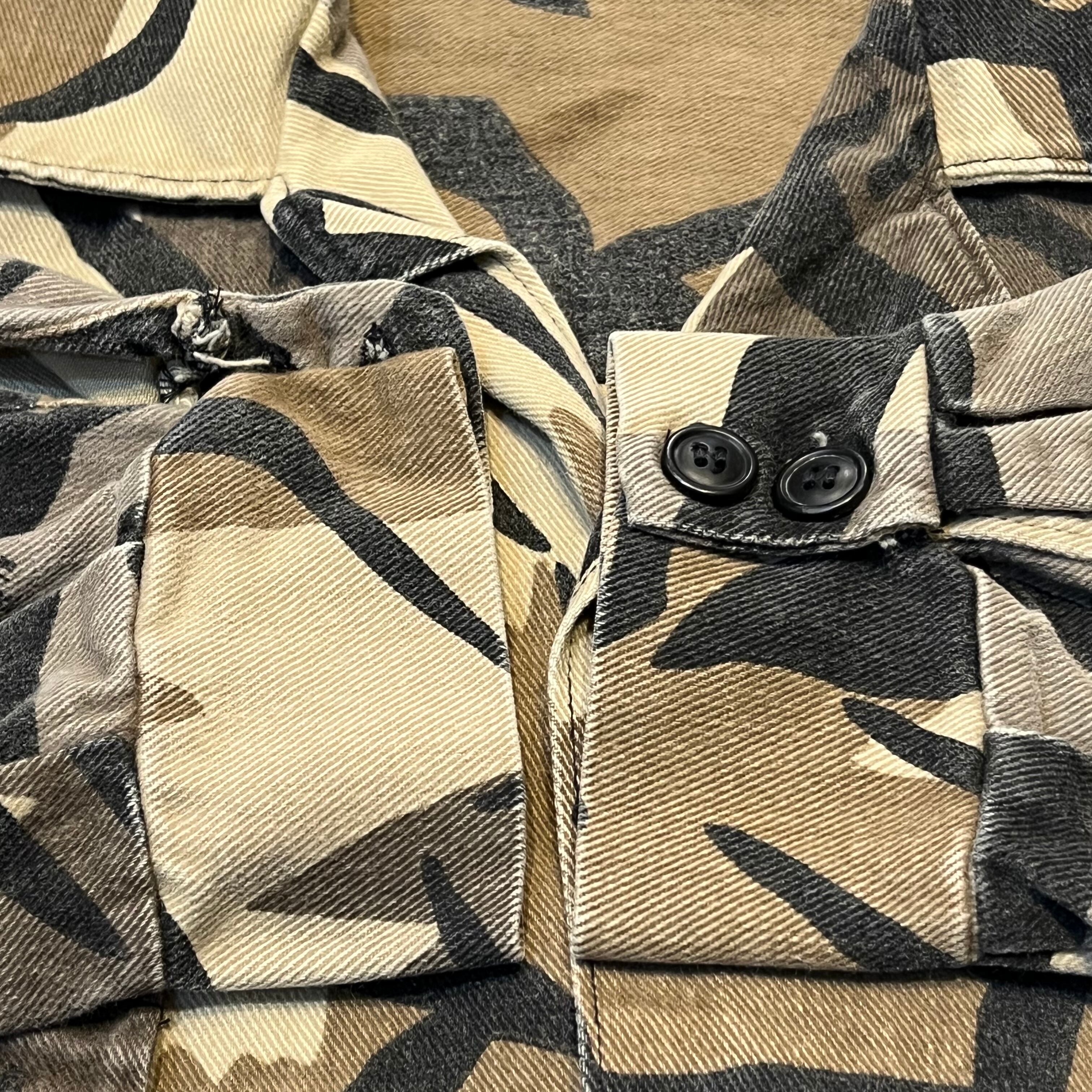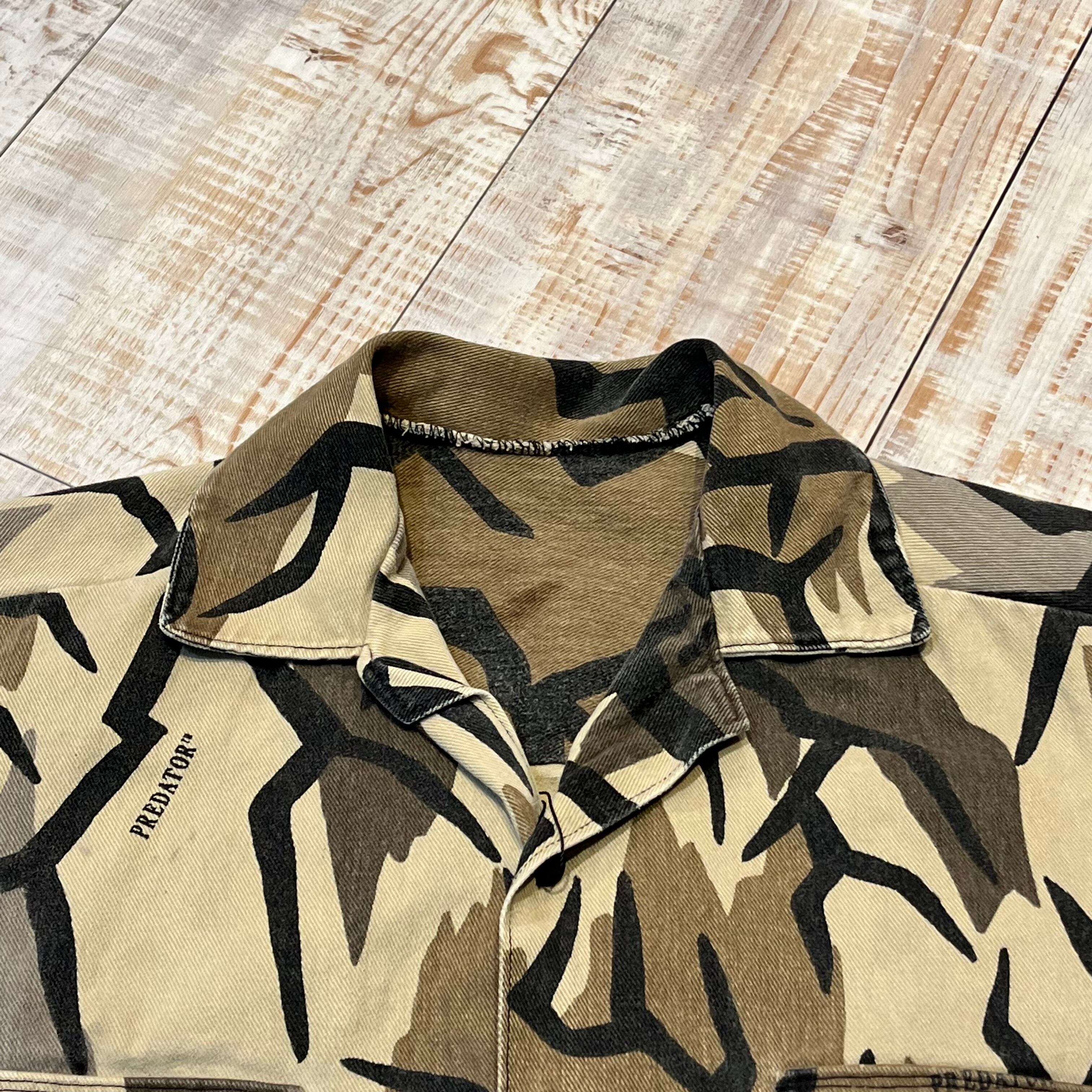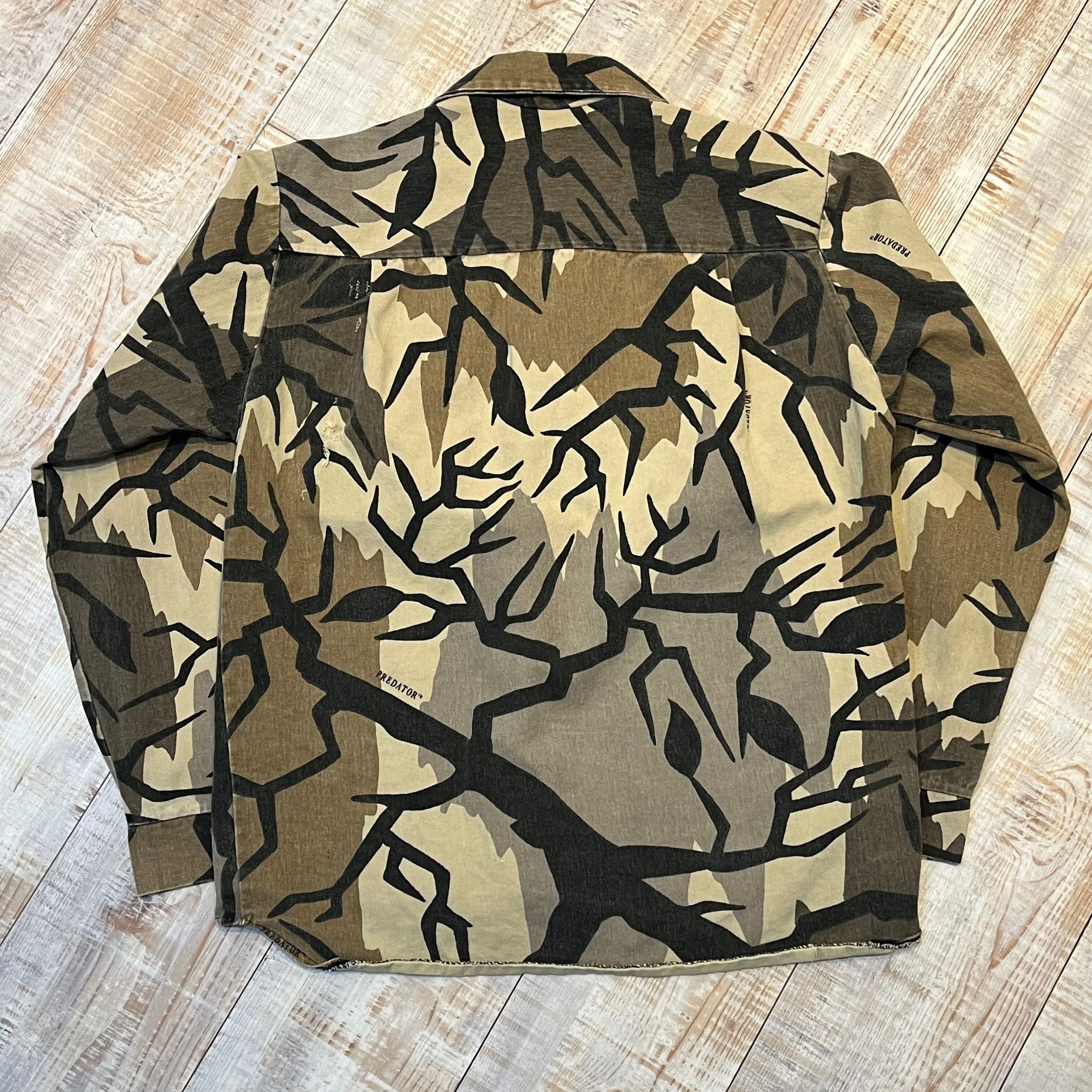 商品説明:プレデターカモの長袖シャツ。トップボタンはなく、開襟となります。肉厚なコットン生地でコンディション考慮の価格となります。