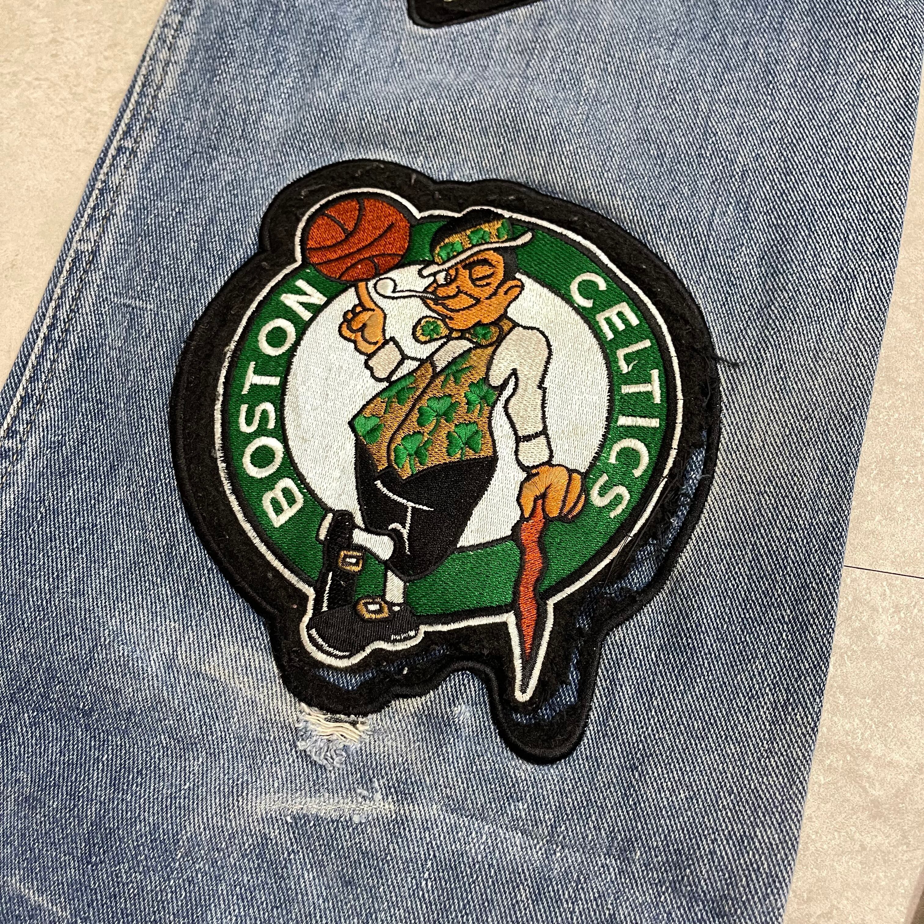 size:36【 NBA All Star 】バギーデニム ワッペンデニム ヒップホップ系 デニムパンツ ダボパン ストリート系 薄青 古着 古着屋 高円寺 ビンテージ n3925