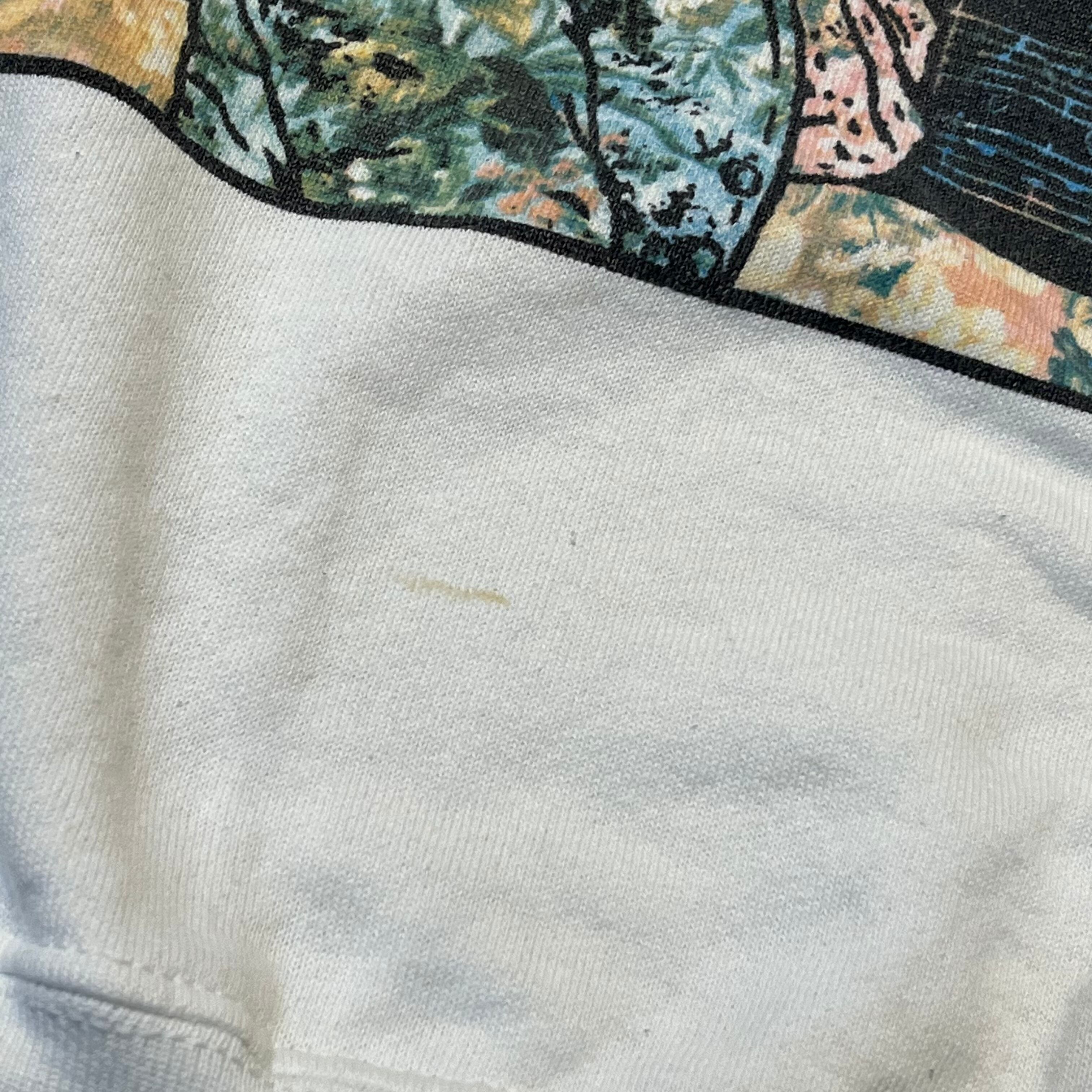商品説明 : 91年コピーライトのつくモーツァルトの染み込みプリントスウェット。緻密な染み込みプリントは年代ならではかと。