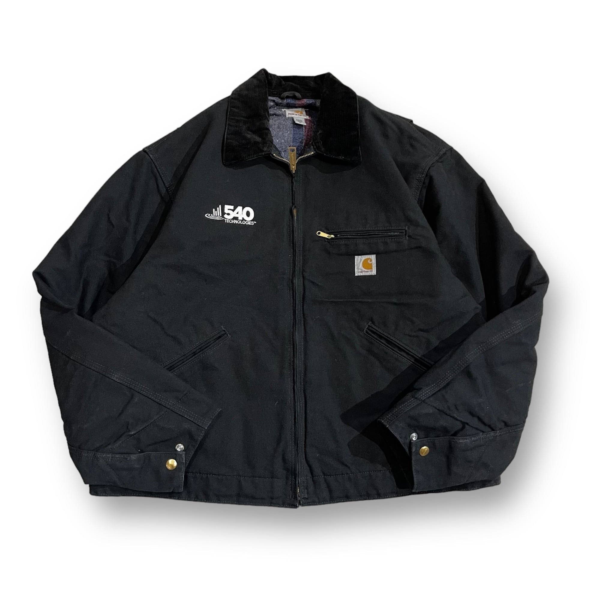 USA製 size:XL【 Carhartt "Detroit Jacket" 】カーハート デトロイトジャケット ダックジャケット ワークジャケット ダック地 ブランケット 企業ロゴ ブラック 黒 古着 古着屋 高円寺 ビンテージ n31031