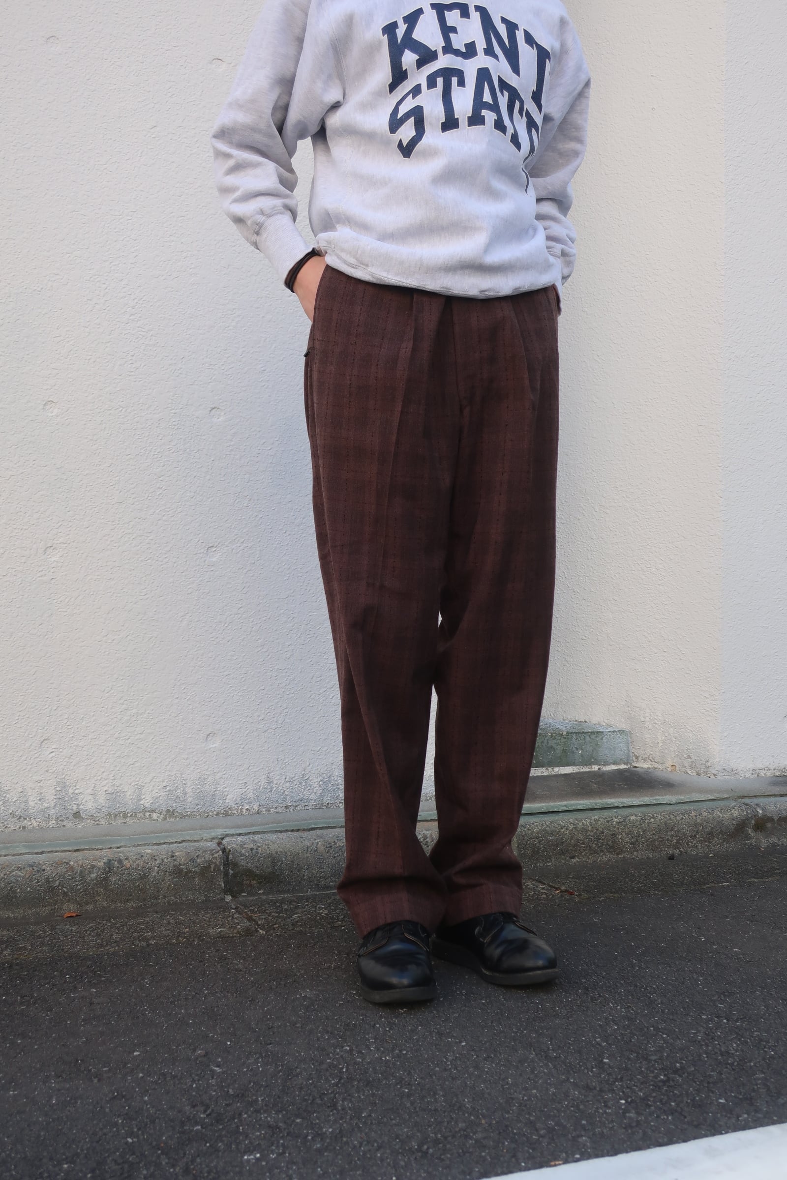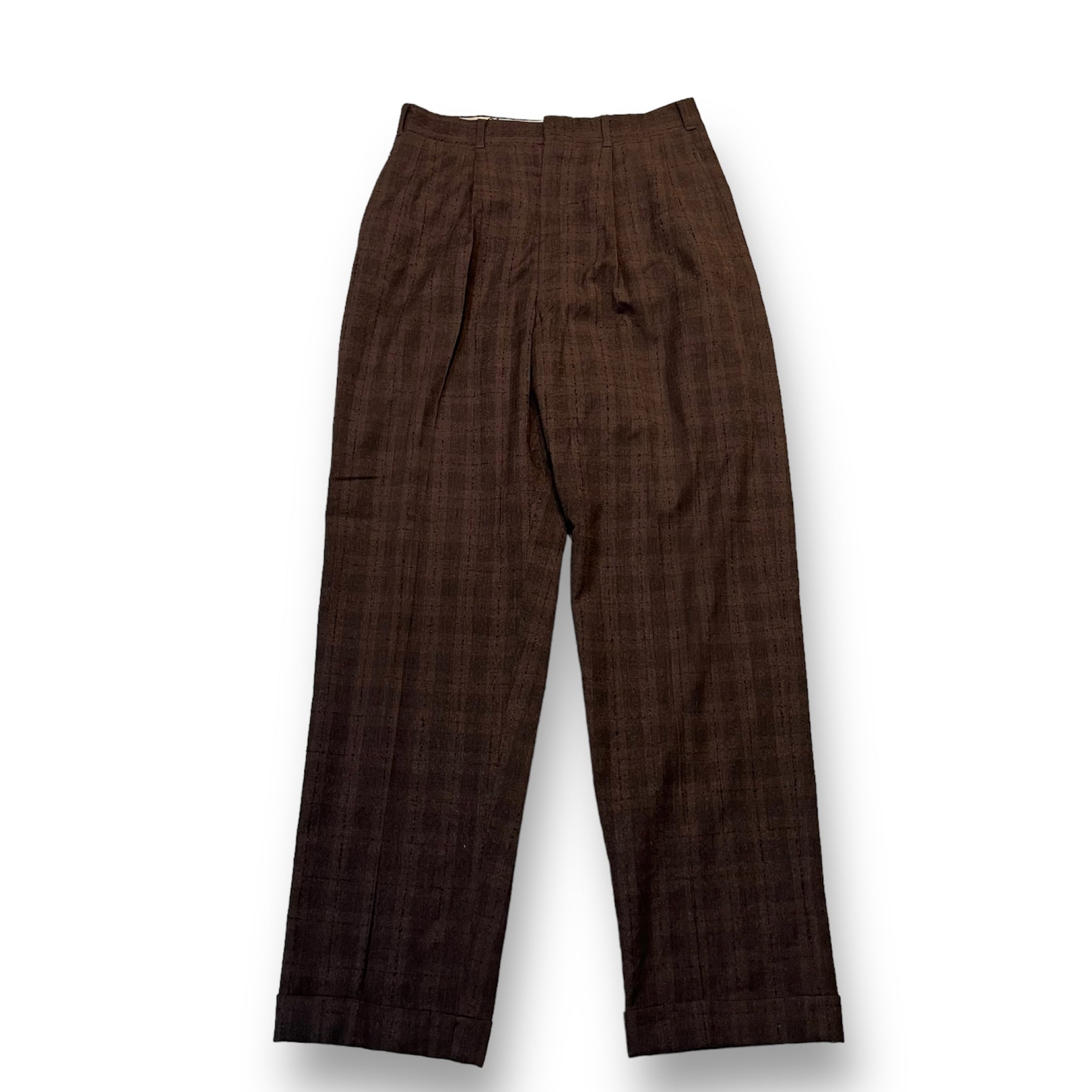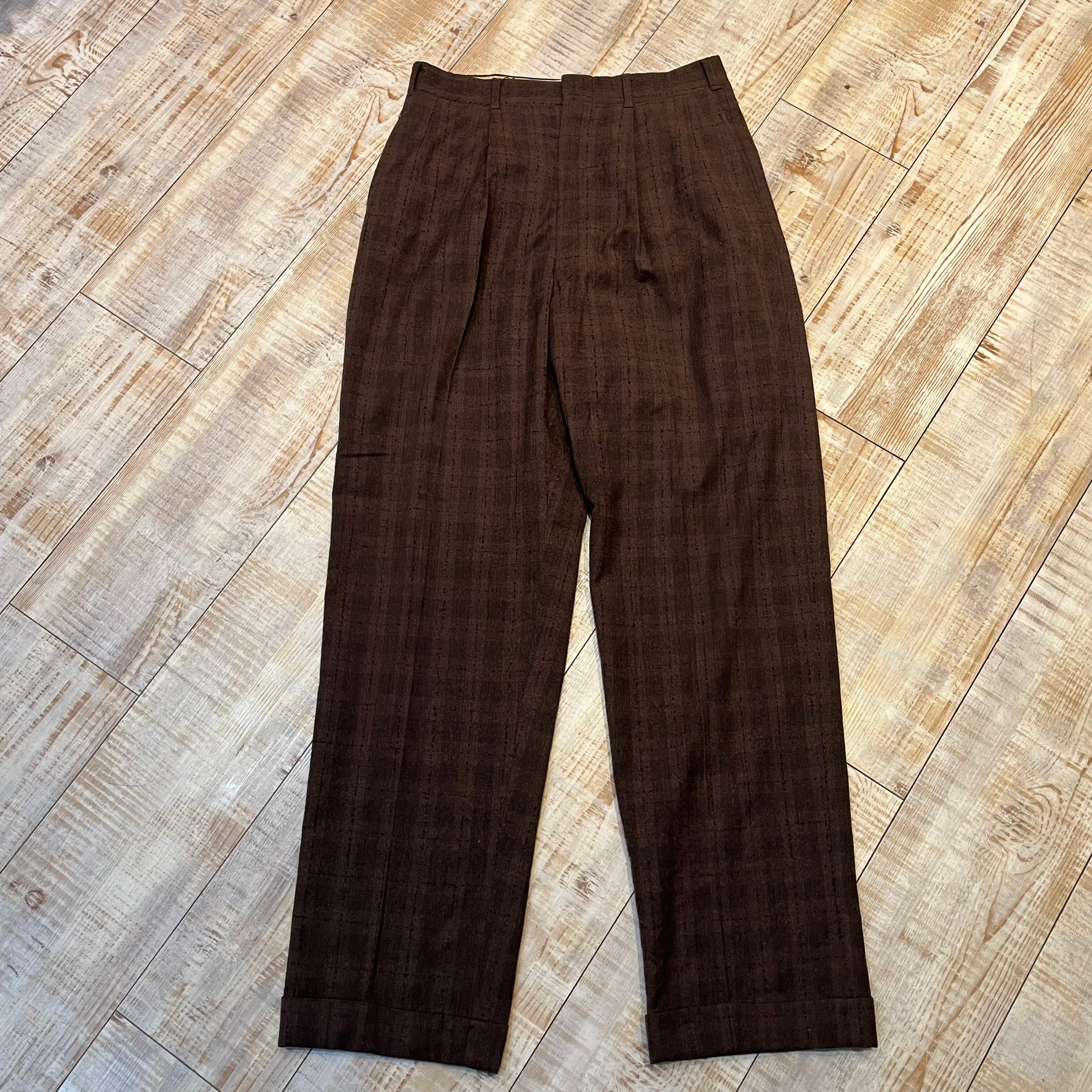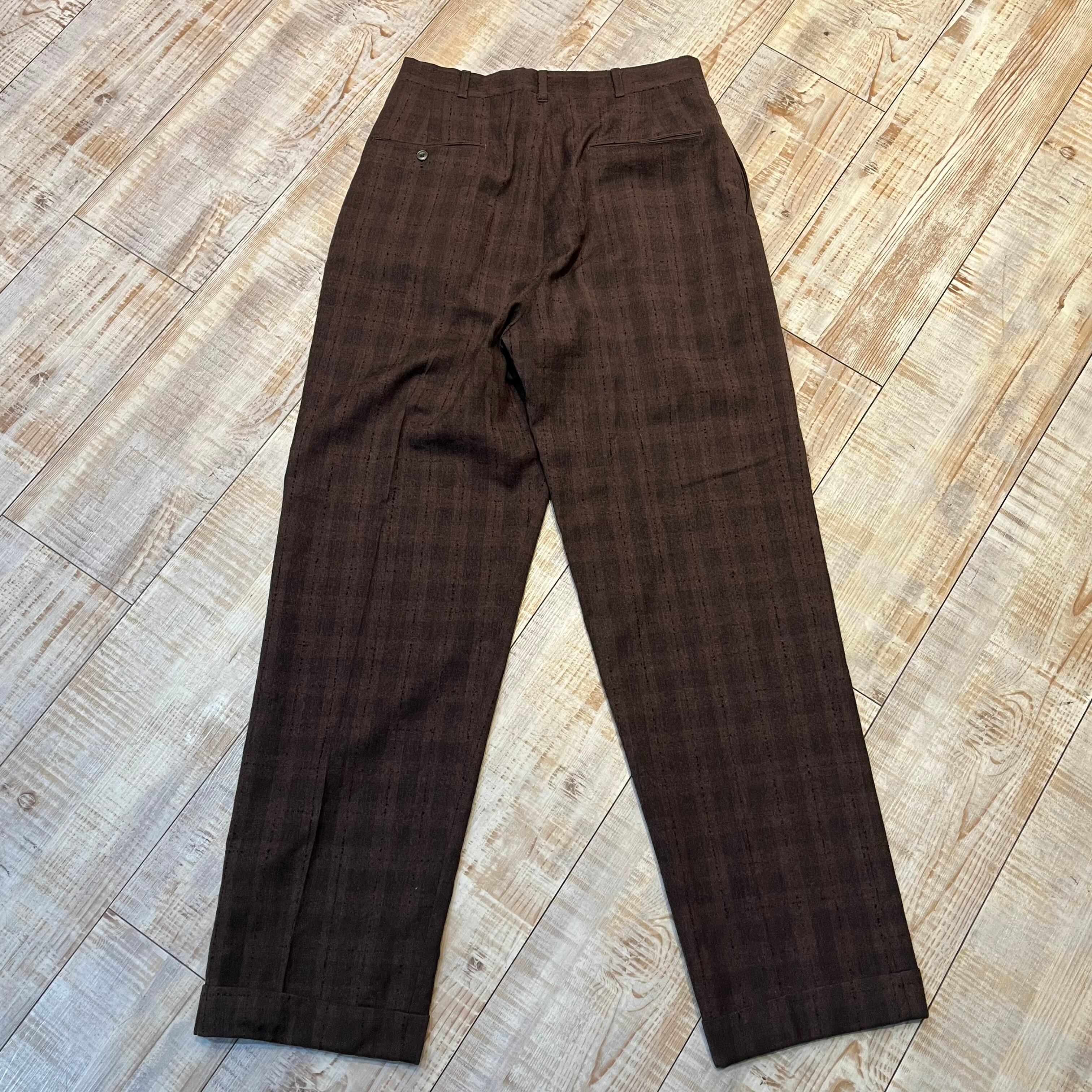 50年代~ “W32位” ウールスラックス 2タック 茶 ブラウン チェック 古着 古着屋 高円寺 ビンテージ n31119