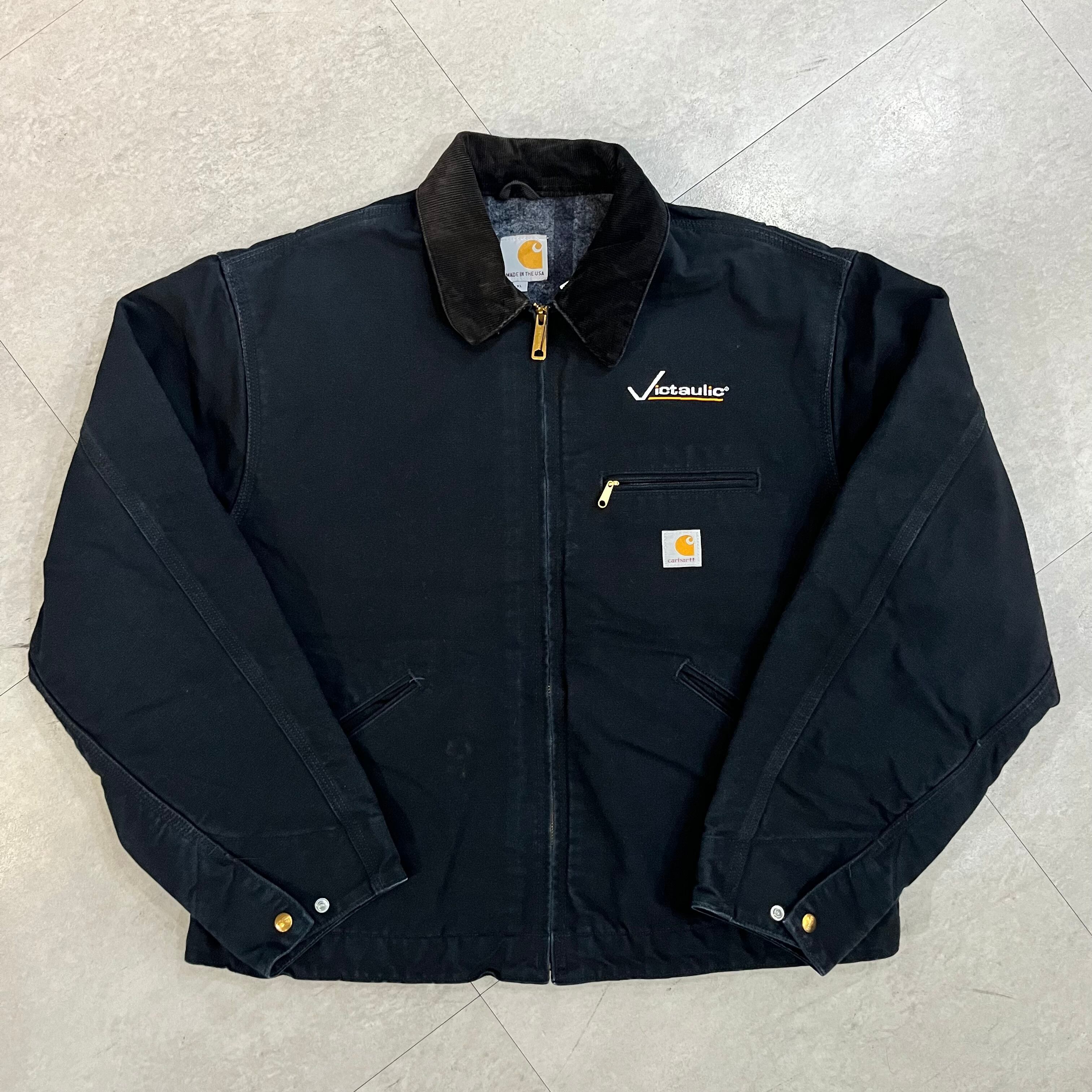 USA製 size:XL 【 Carhartt 】 カーハート デトロイトジャケット ワークジャケット ダックジャケット 企業ロゴ 黒 ブラック 古着 古着屋 高円寺 ビンテージ n31130