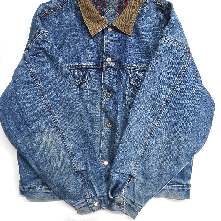 古着 ラングラー Wrangler デニムジャケット 襟コーデュロ 裏地ブランケット 表記:XL gd312286n w31229
