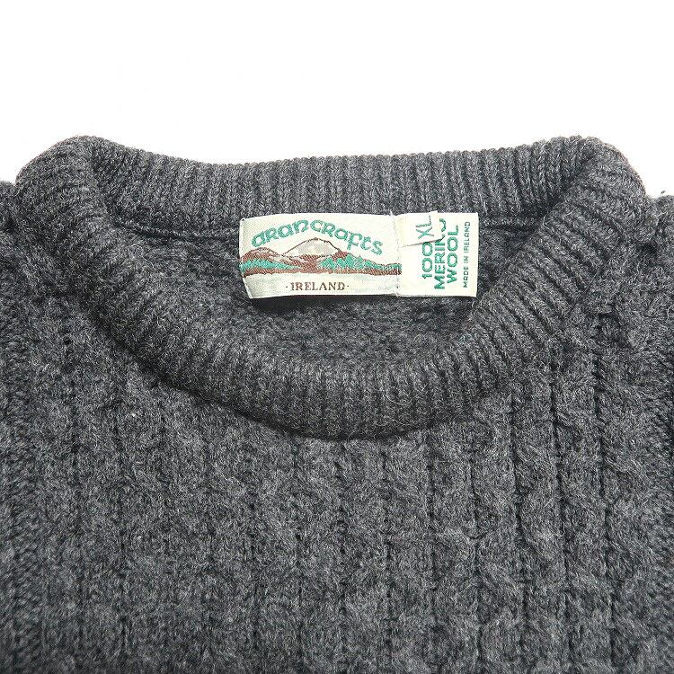 古着 アイルランド製 ウール アランニット グレー 表記:XL gd401304n w40103