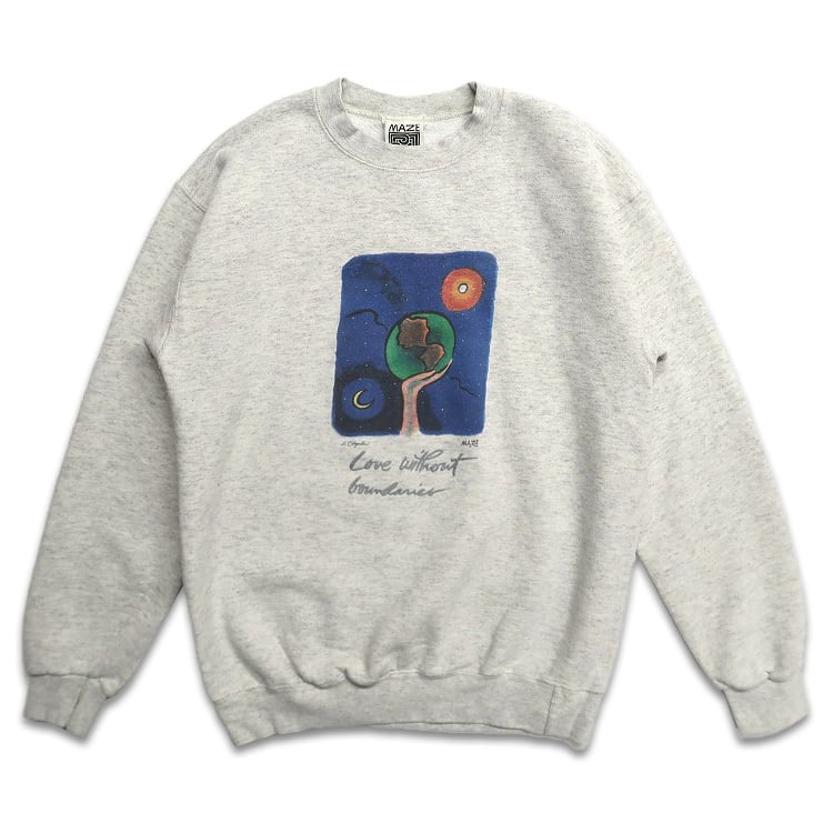 古着 90年代 カナダ製 MAZE プリントスウェット トレーナー 霜降りグレー 表記:M gd401394n w40112