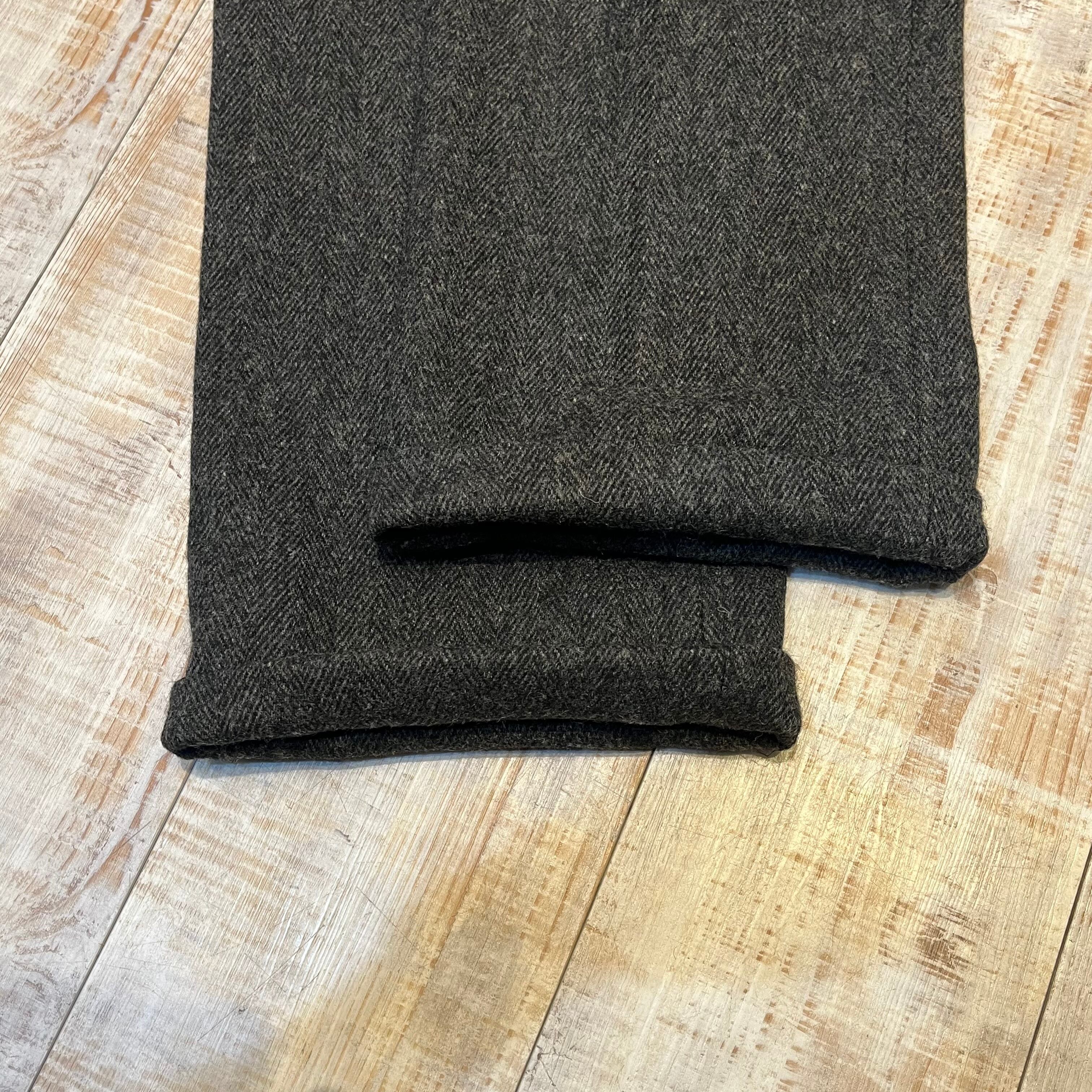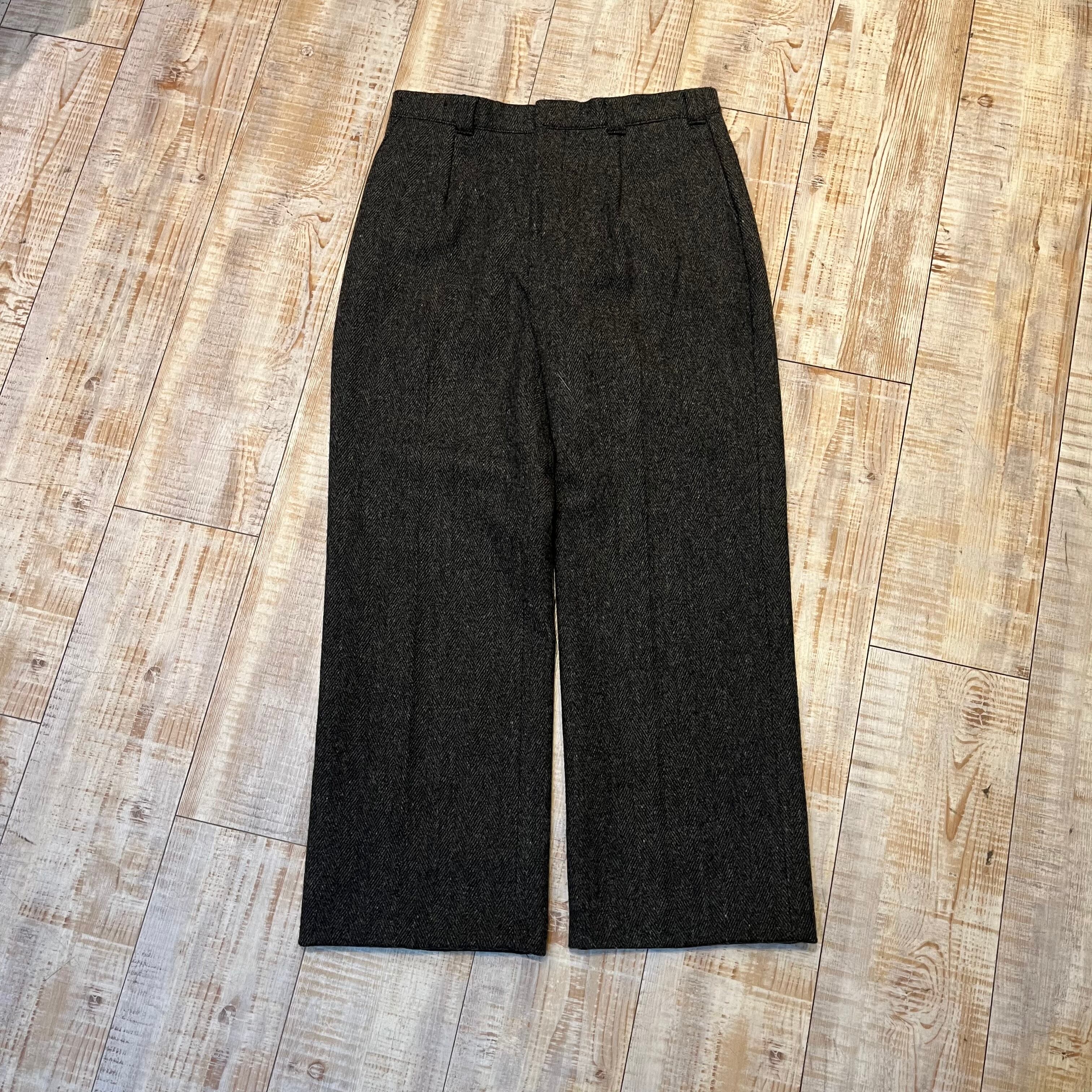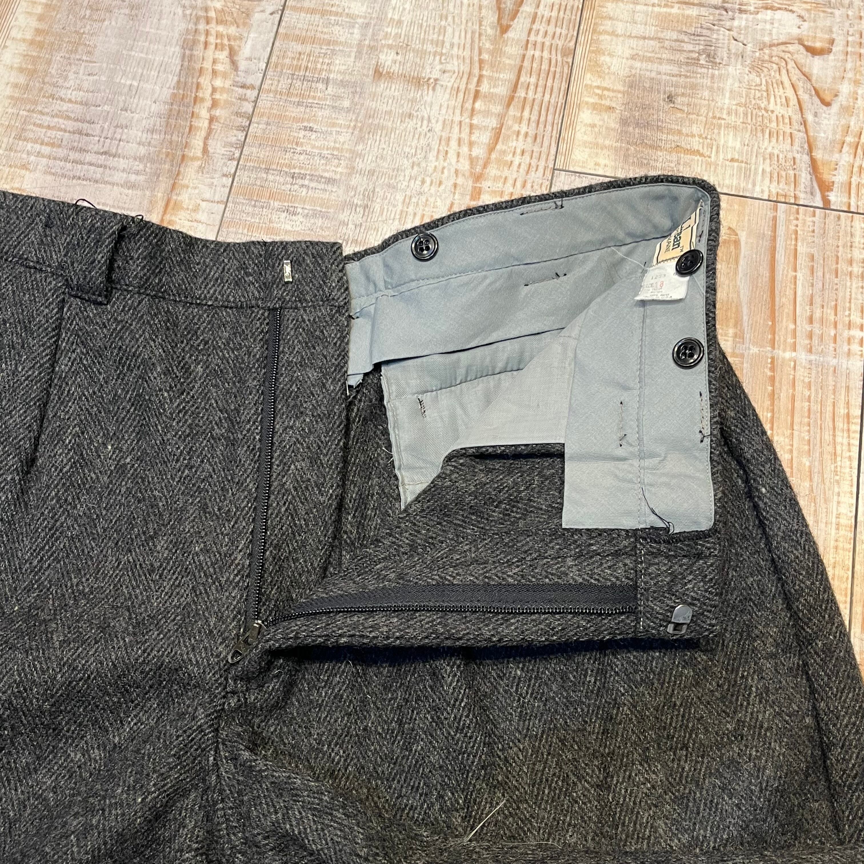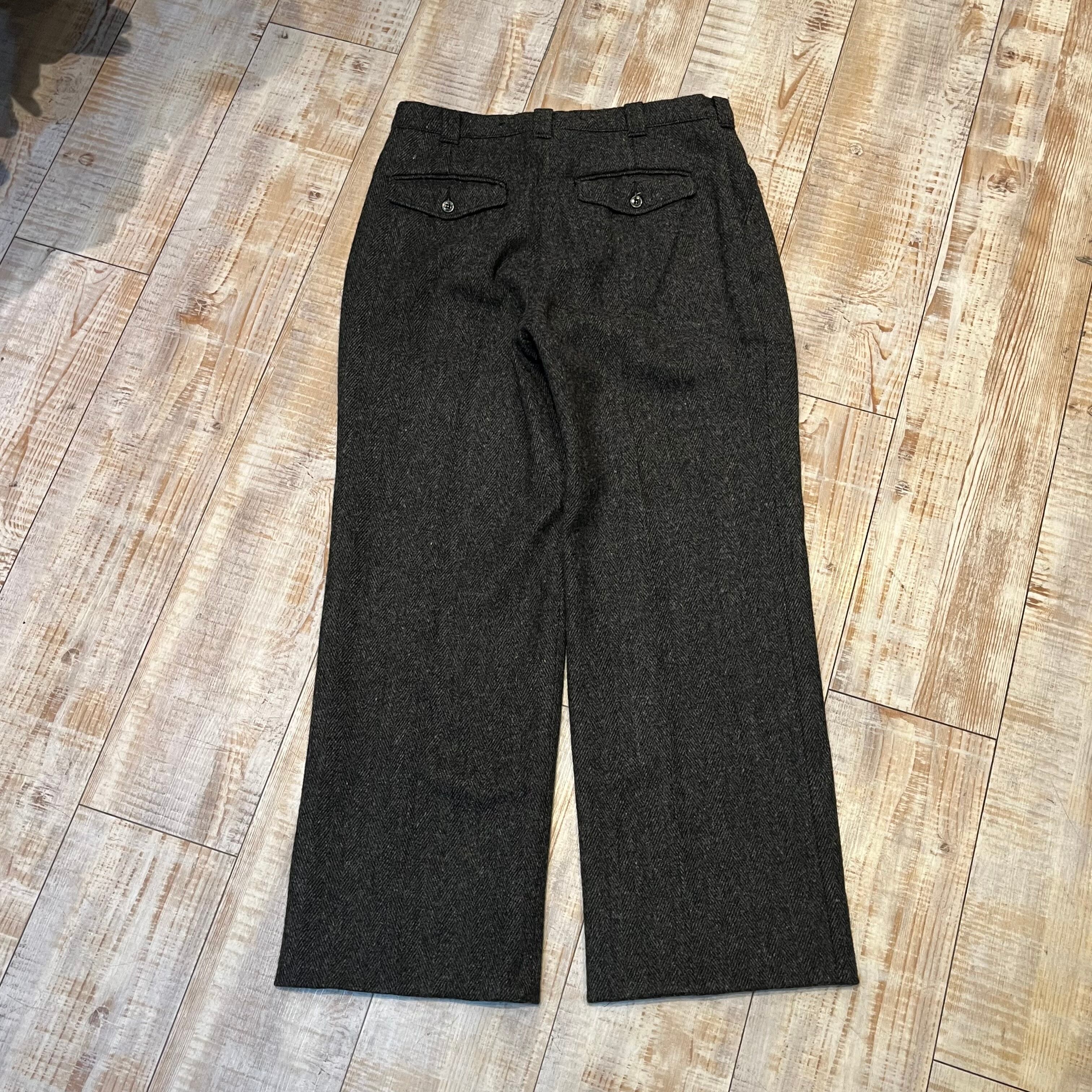 商品説明 :80年代のエルエルビーンのウールスラックスになります。1タックのワイドストレートシルエット、内側にはサスペンダーボタン付き。しっかり目の詰まったヘビーウールが使われているので、寒い季節にぴったりな一着です。