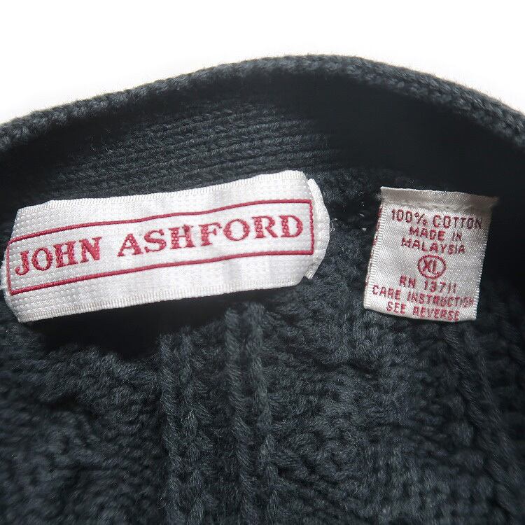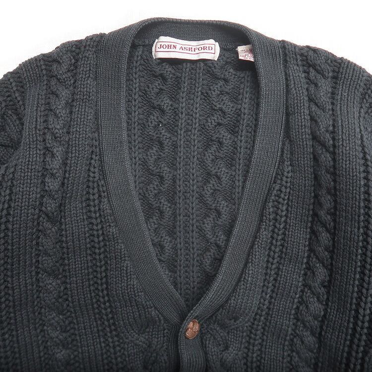 古着 JOHN ASHFORD コットン カーディガン ニット セーター ブラック 表記:XL gd401445n w40117