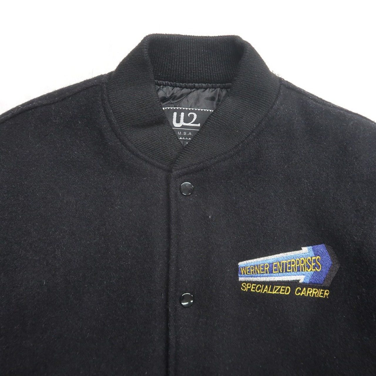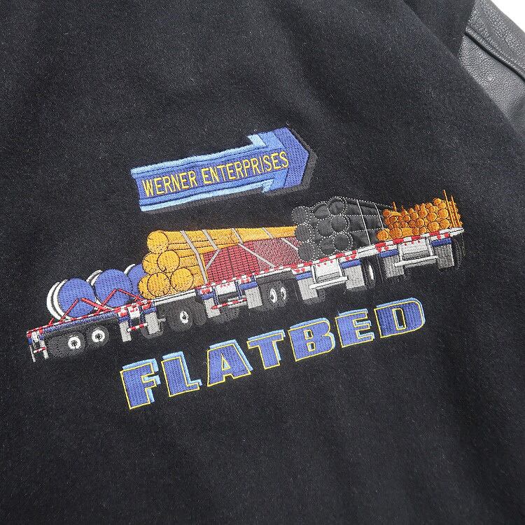 古着 スタジャン 袖レザー 切り返し 刺繍 ブラック 表記:L gd401459n w40118