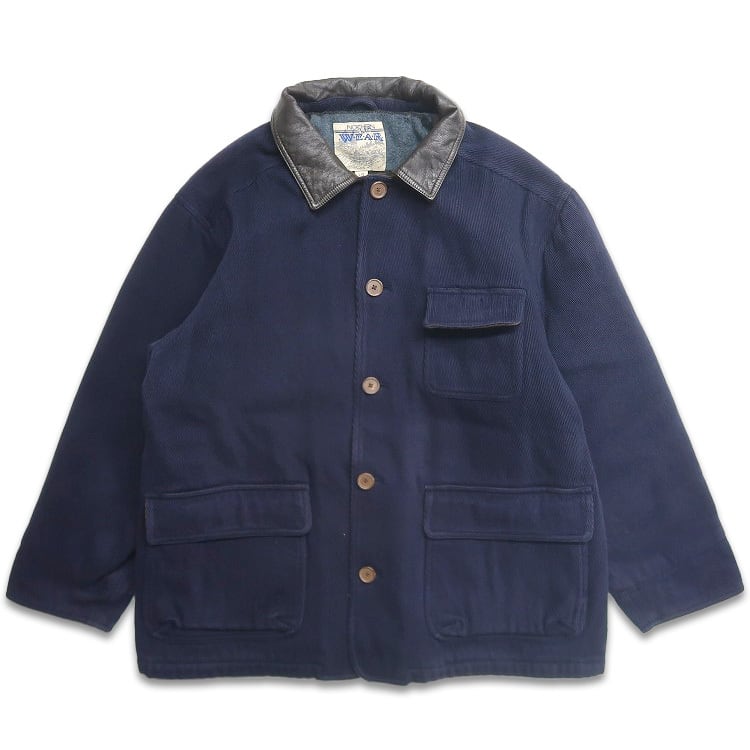 古着 NORTHERN Spirit コーデュロイ ハンティングジャケット 襟レザー 裏地ブランケット ネイビー 表記:L gd401549n w40127