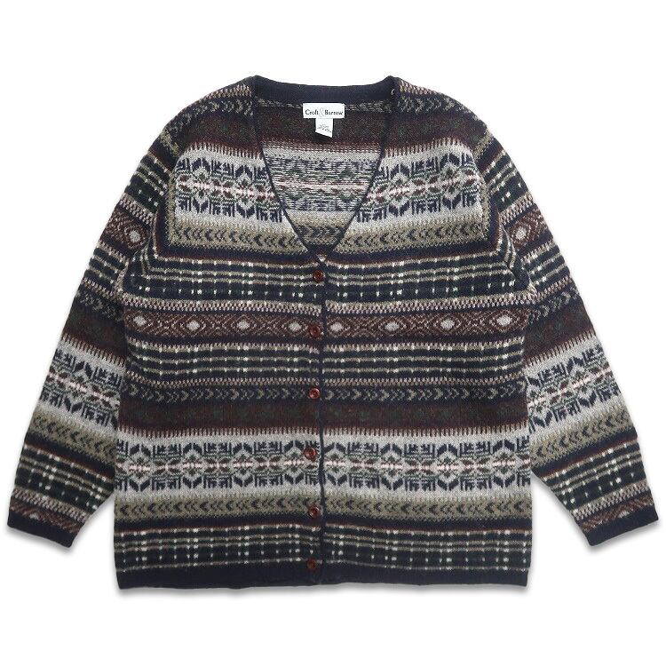 古着 croft&barrow ウールニット カーディガン セーター 総柄 表記:XL gd401556n w40128