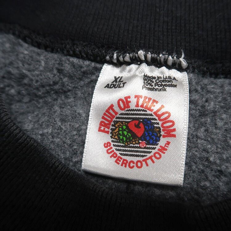 古着 USA製 90年代〜 フルーツオブザルーム プリントスウェット トレーナー ブラック 表記:XL gd401593n w40201